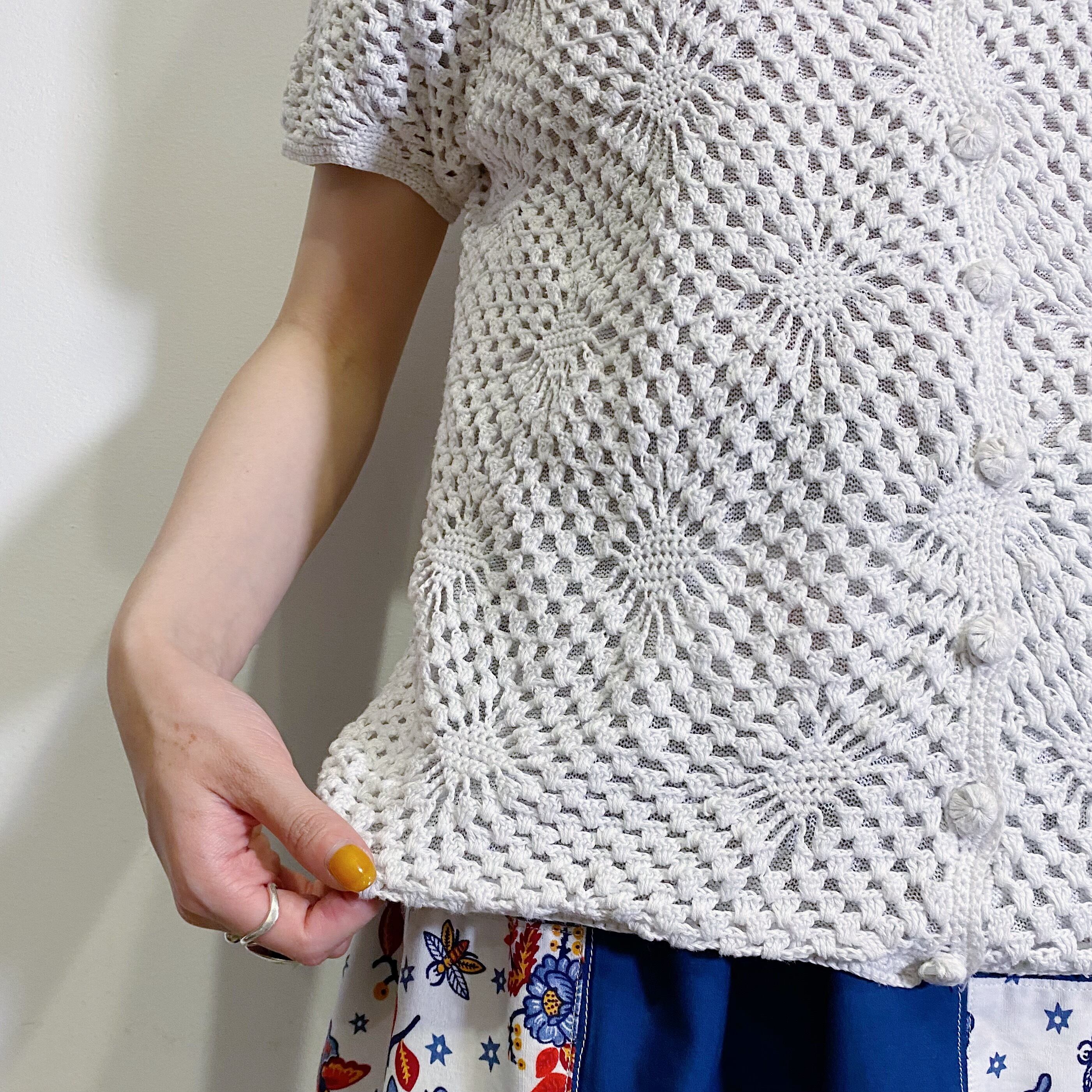 White cotton crochet knit cardigan