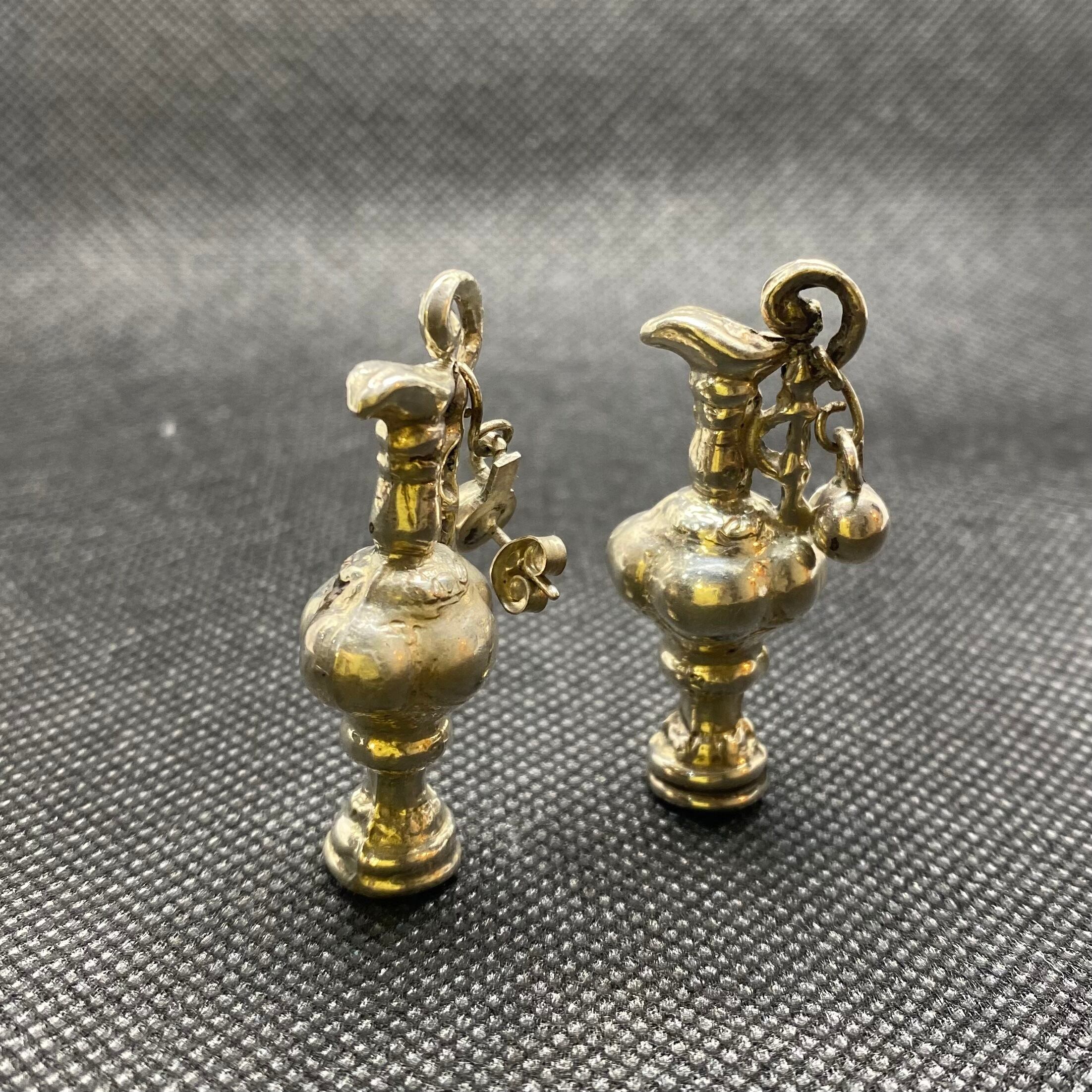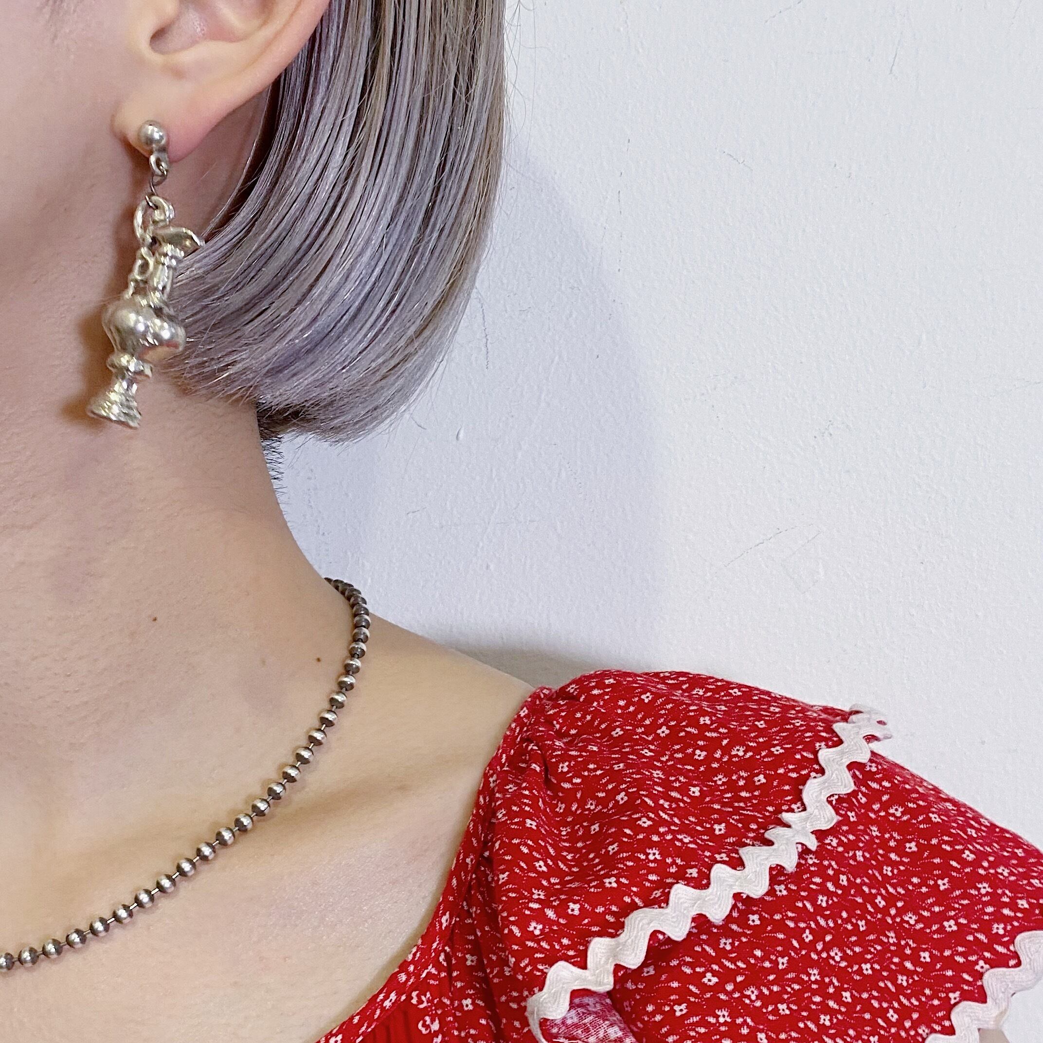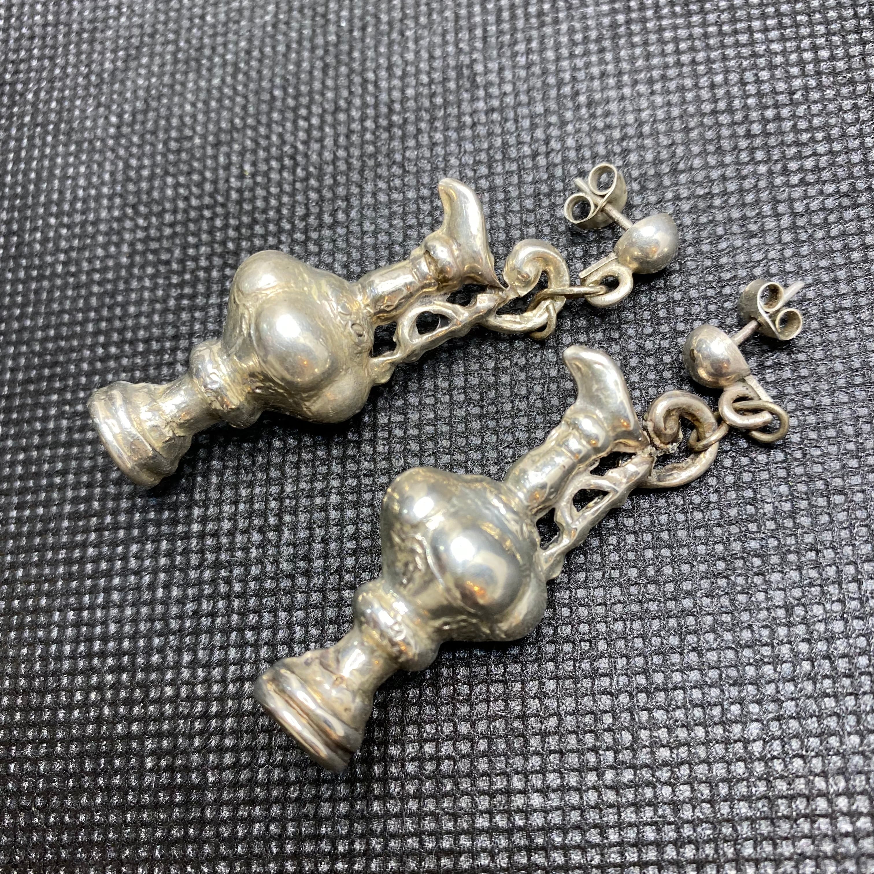 壺のような、水差しのようなモチーフがユニークで可愛い、925シルバーのピアスです。