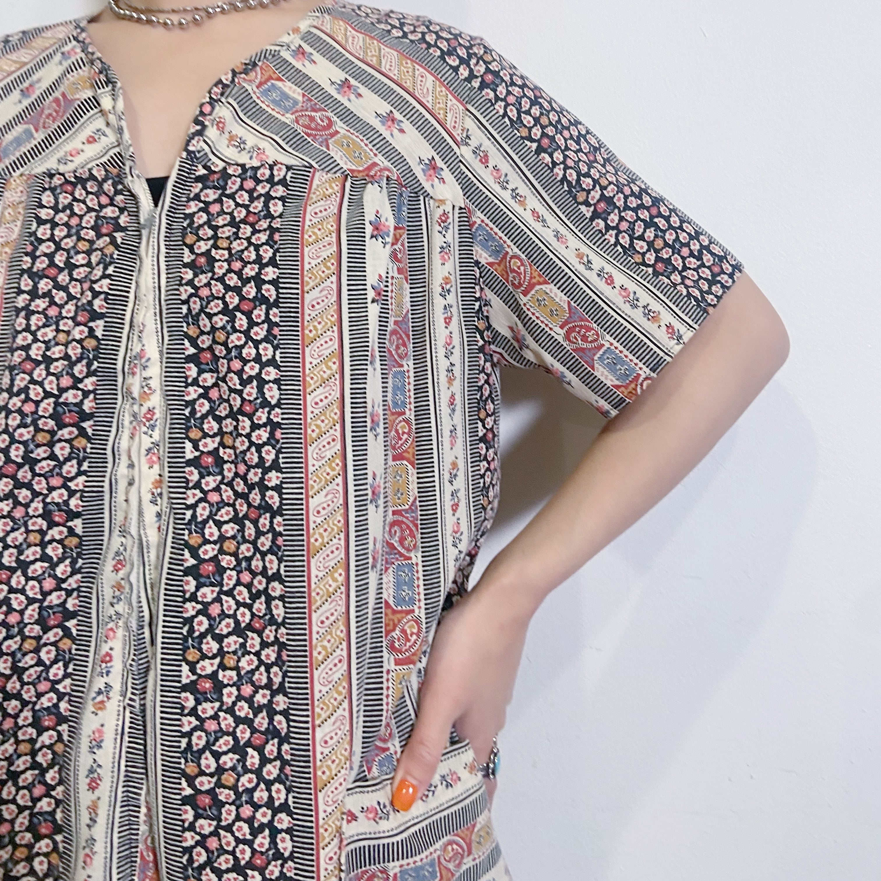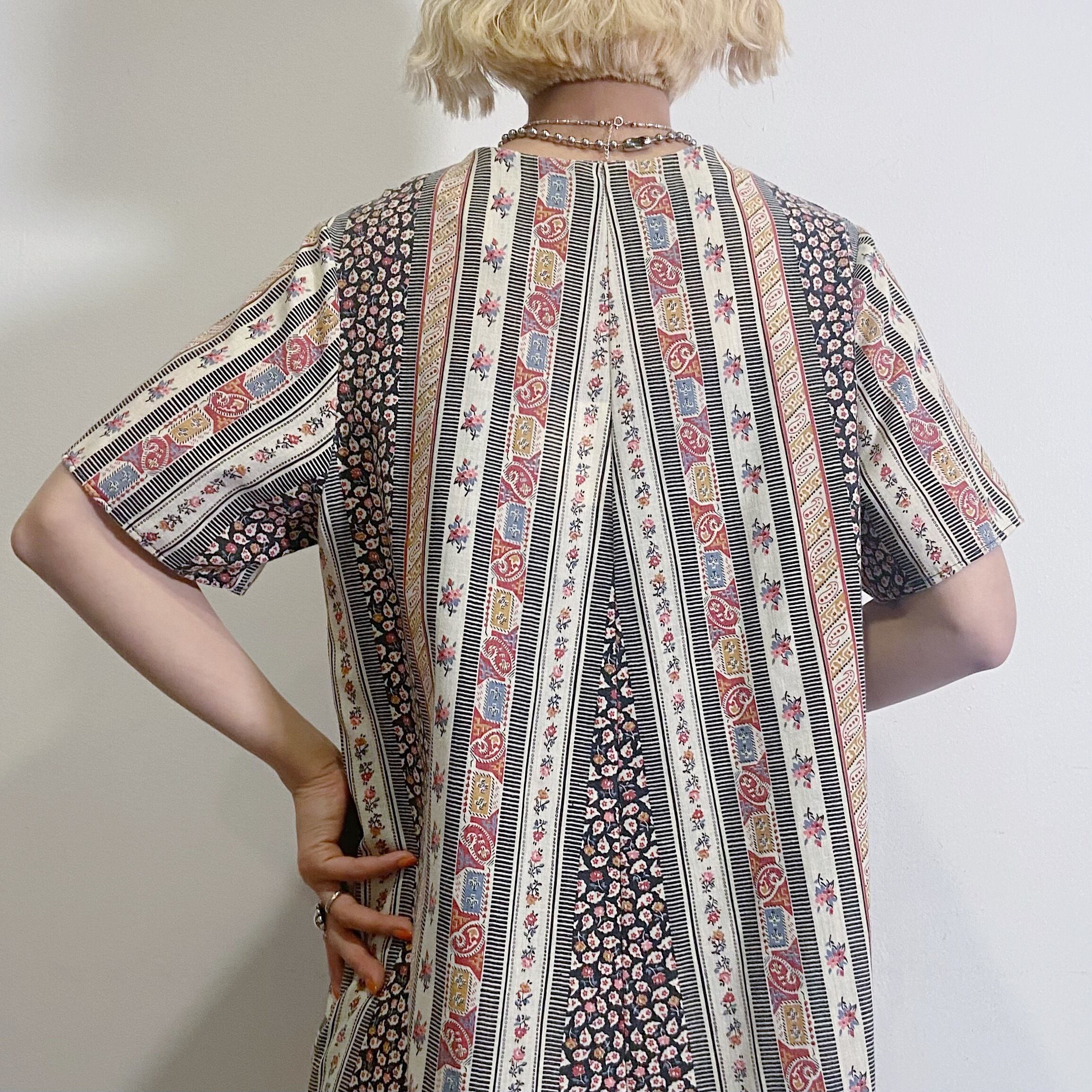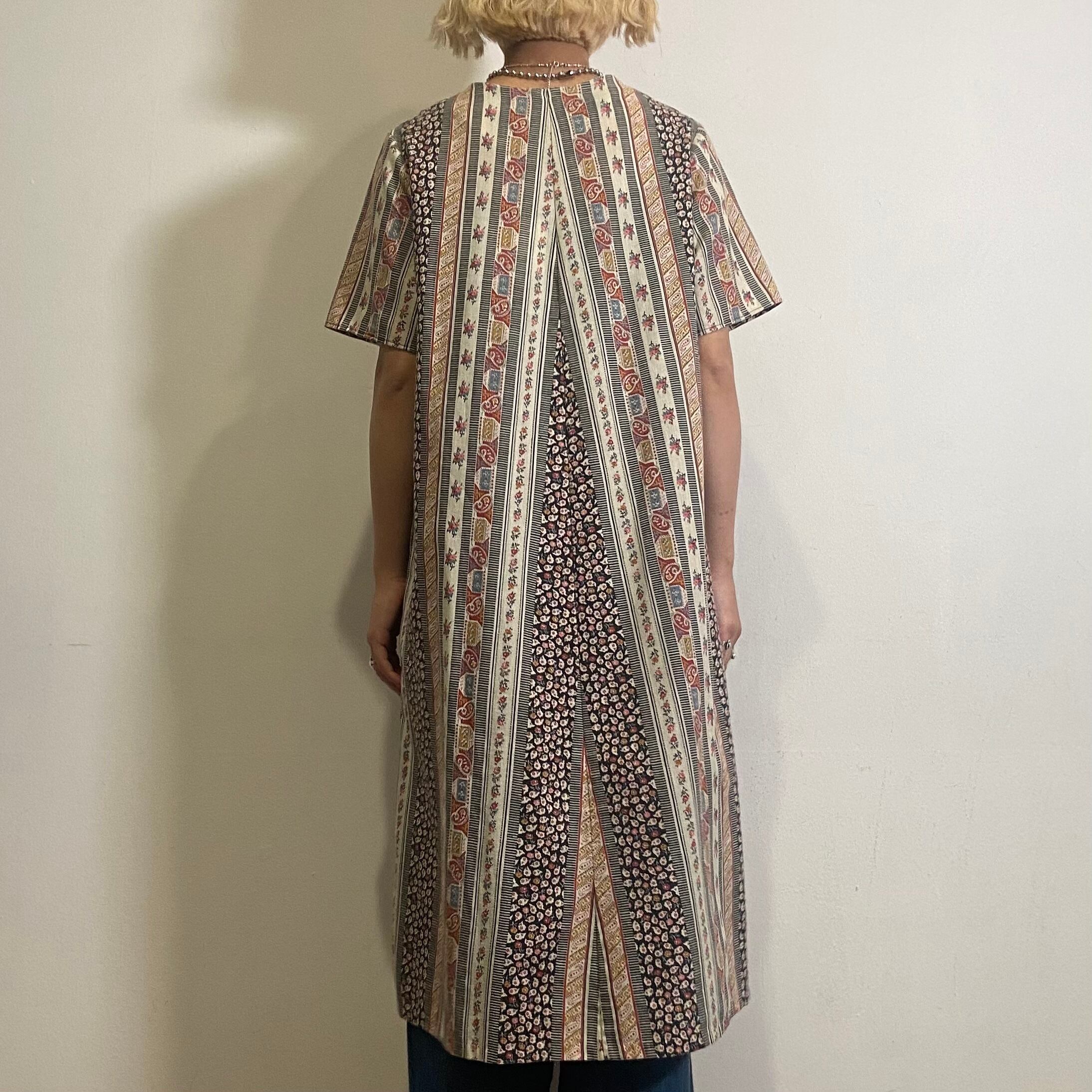 様々なテープが並んだようなプリントが可愛い、60年代のコットンワンピースです。