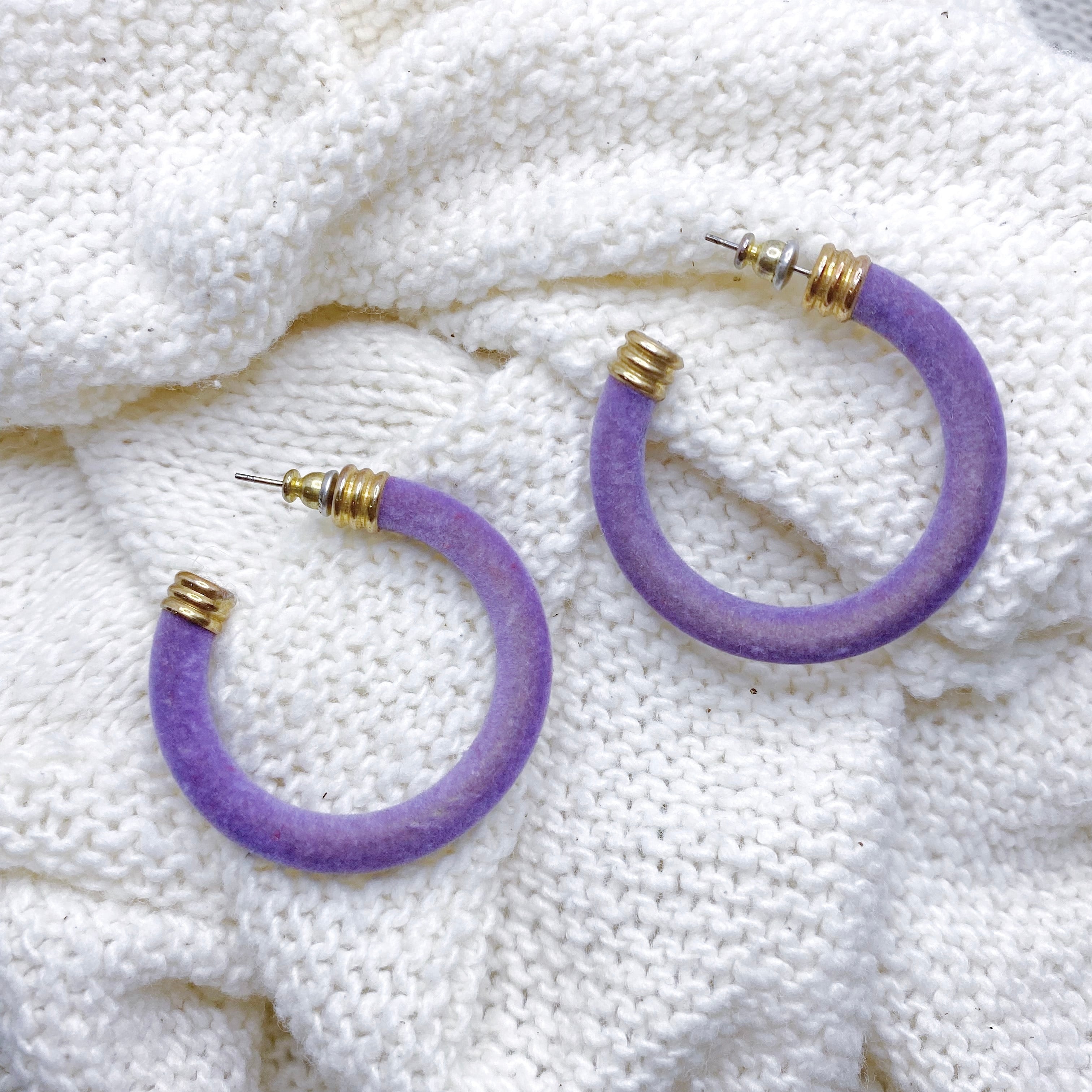 パープルカラーの太めのフープが可愛い、80年代のピアスです。