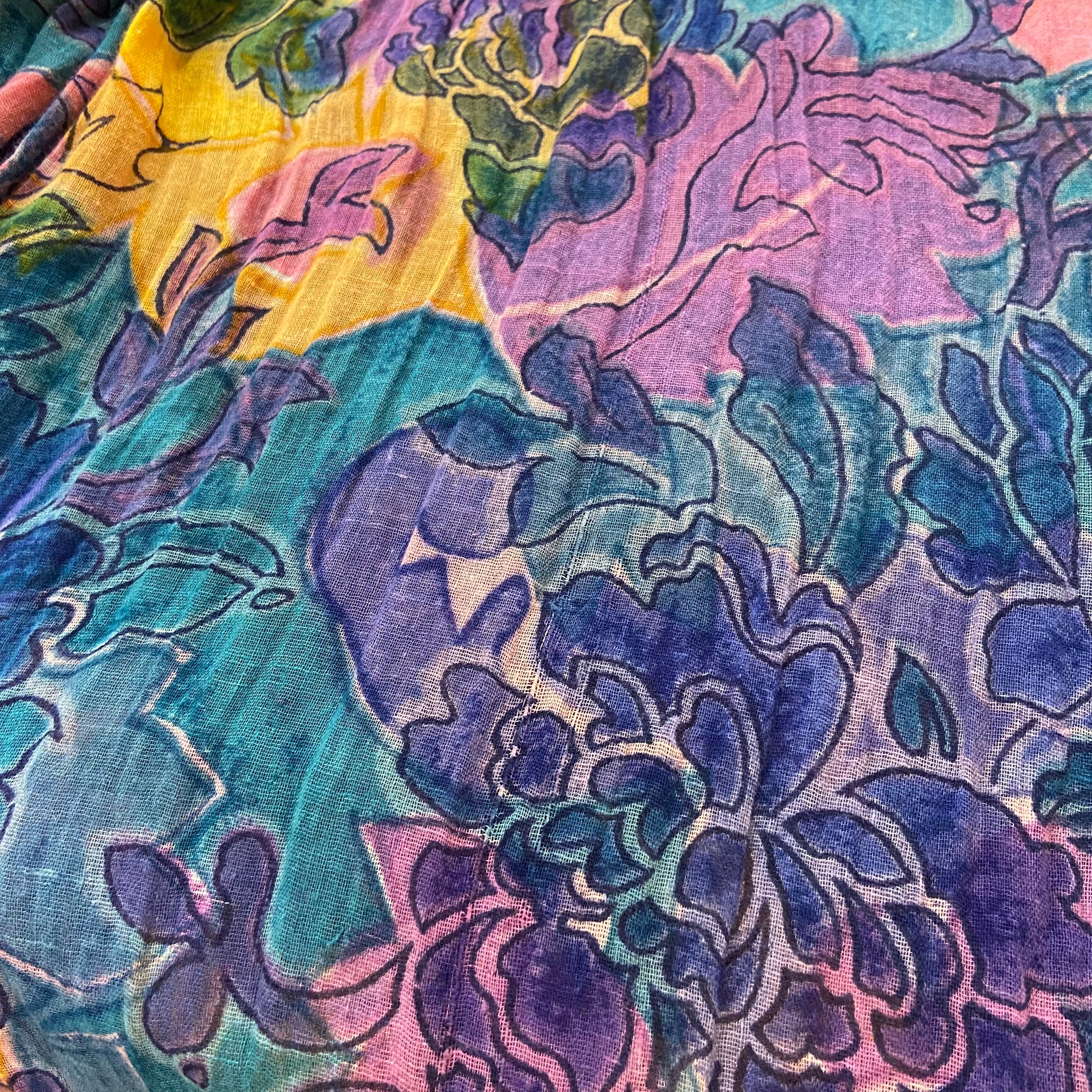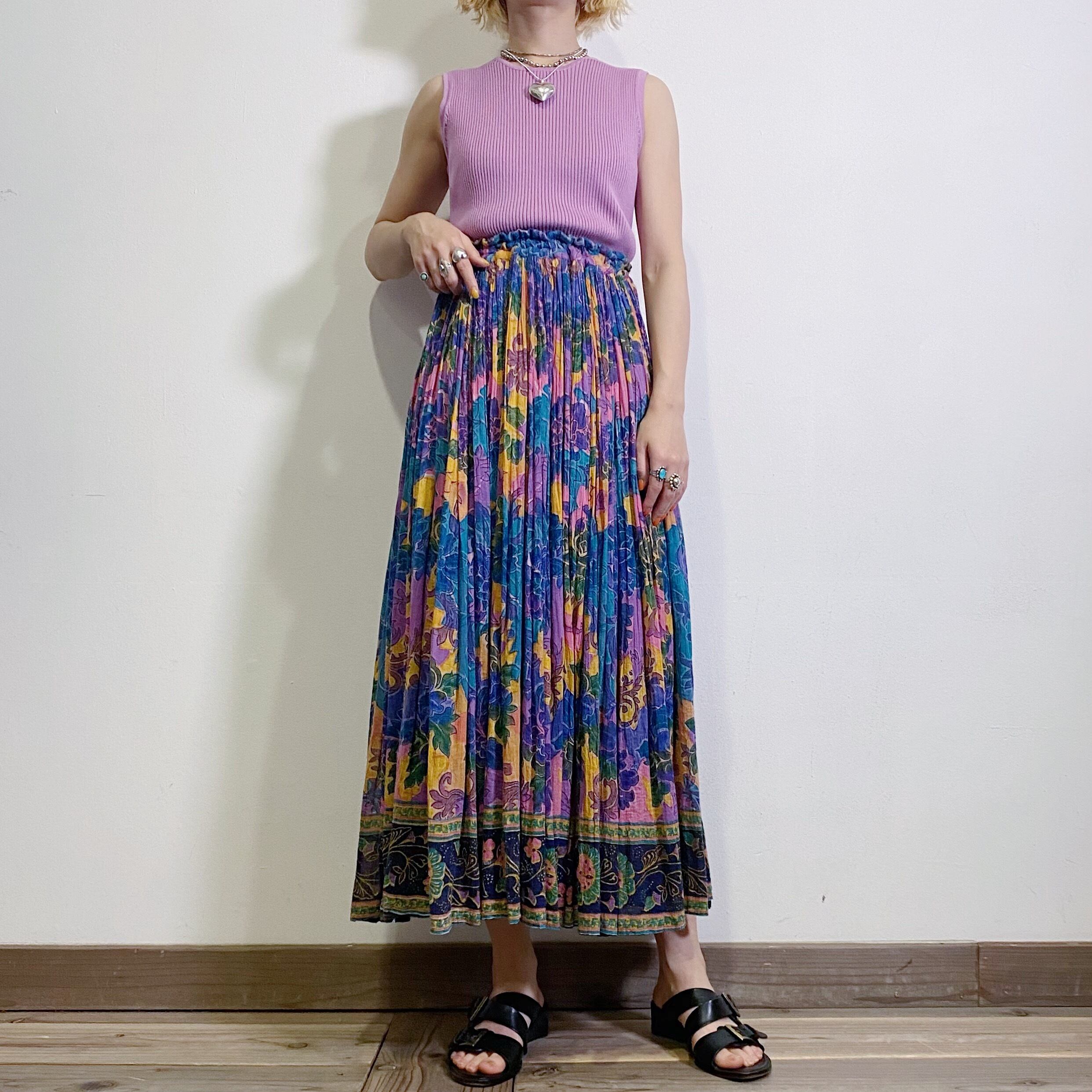 パープルやブルーの色合いが可愛い、花柄スカートです。