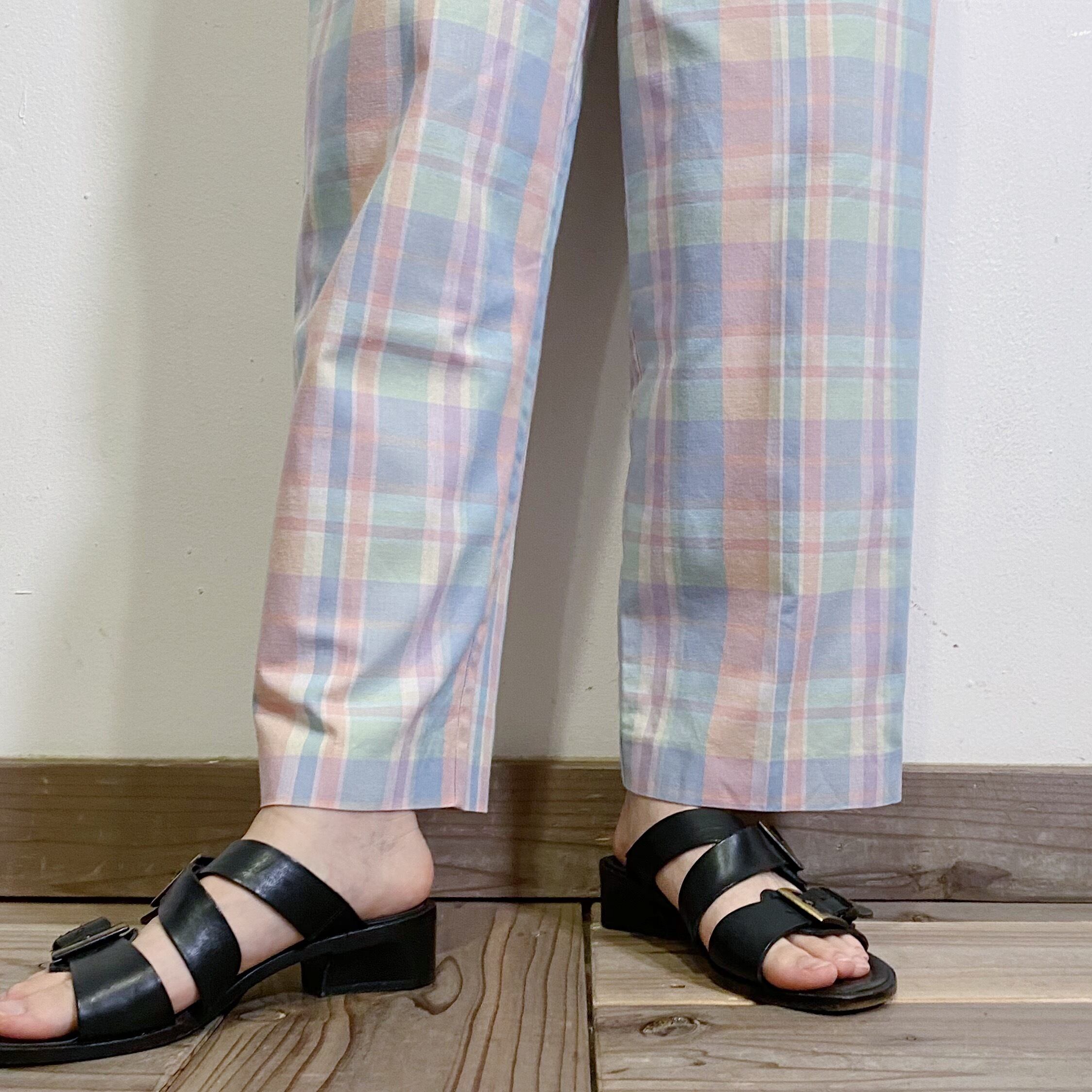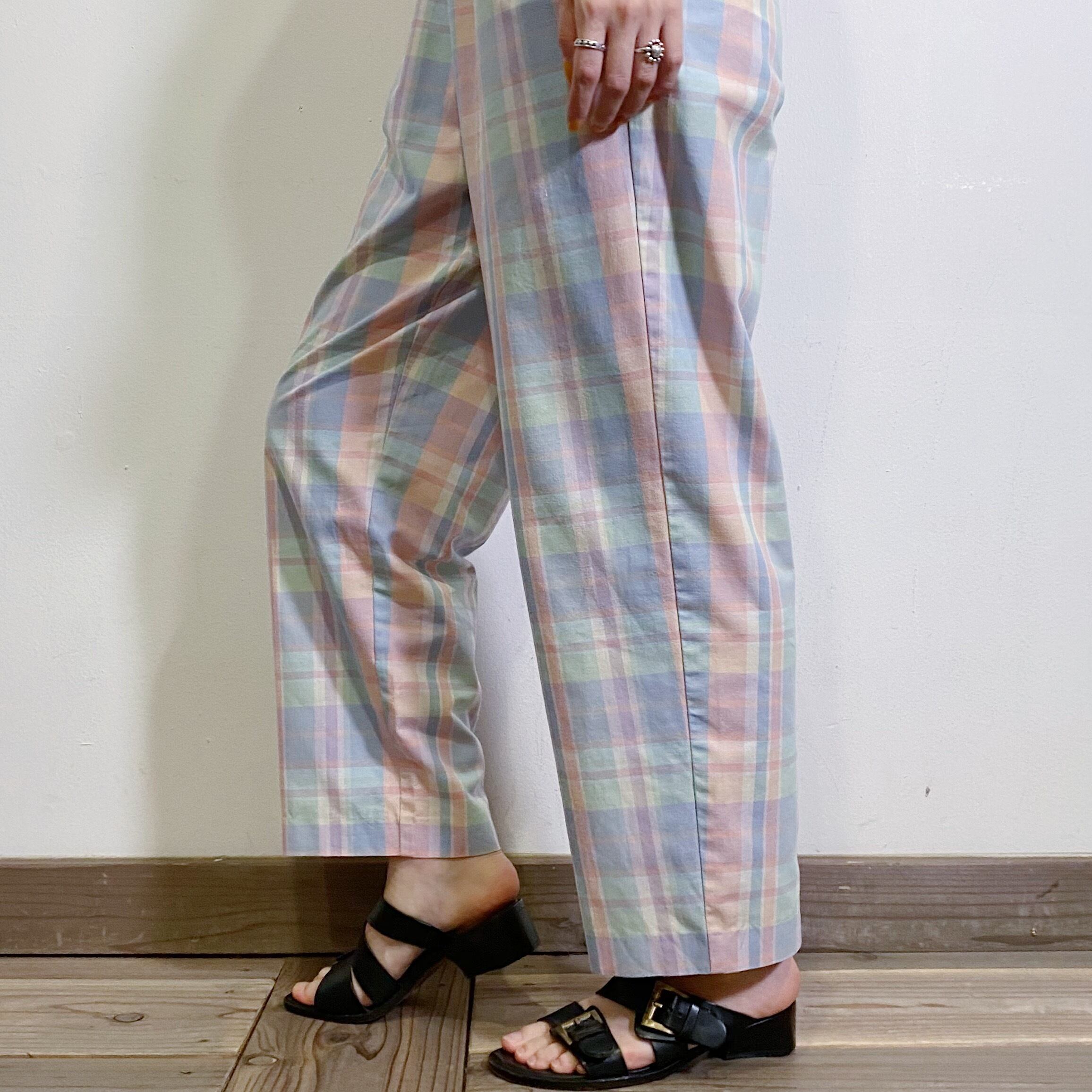 淡いパステルカラーのチェック柄が可愛い、80年代のイージーパンツです。