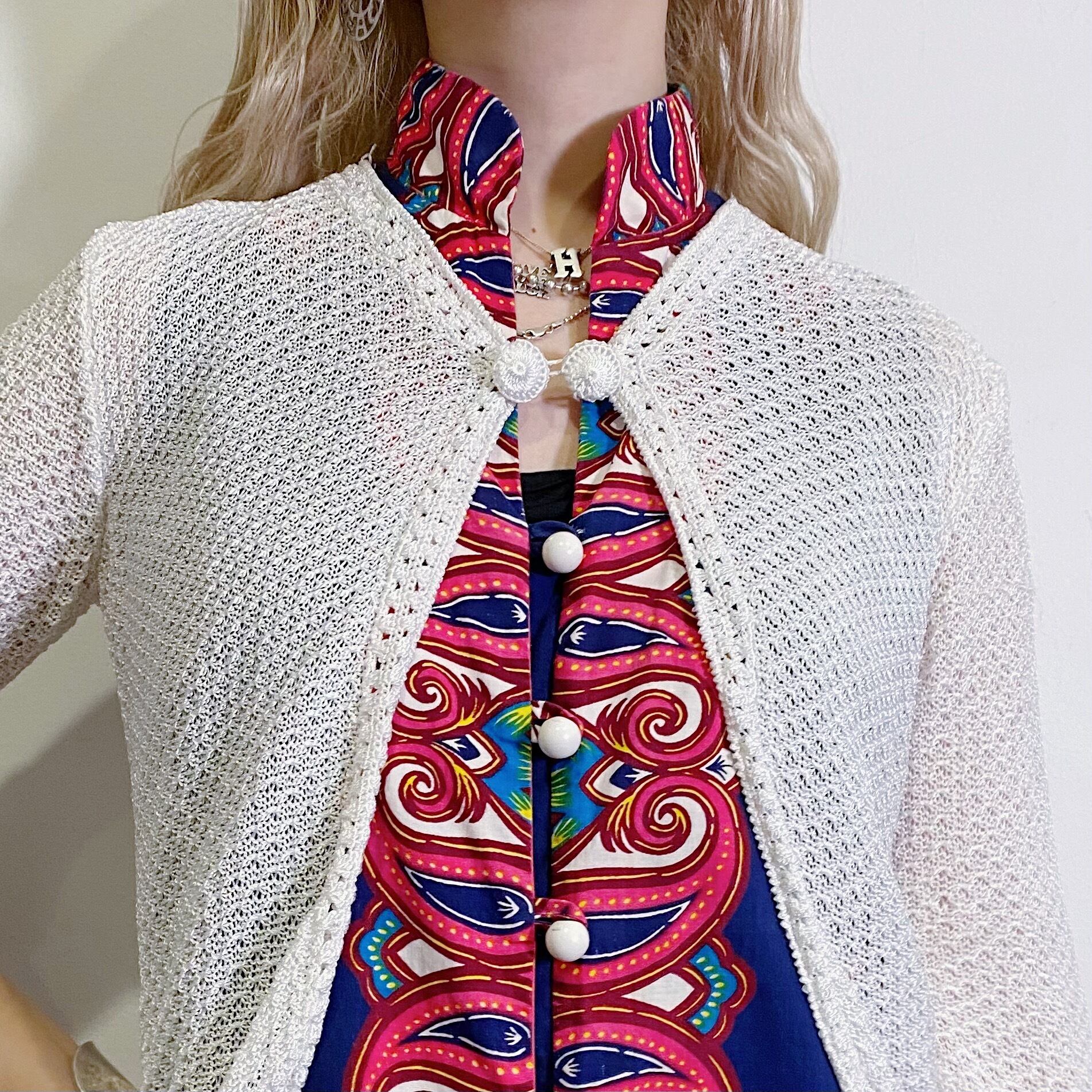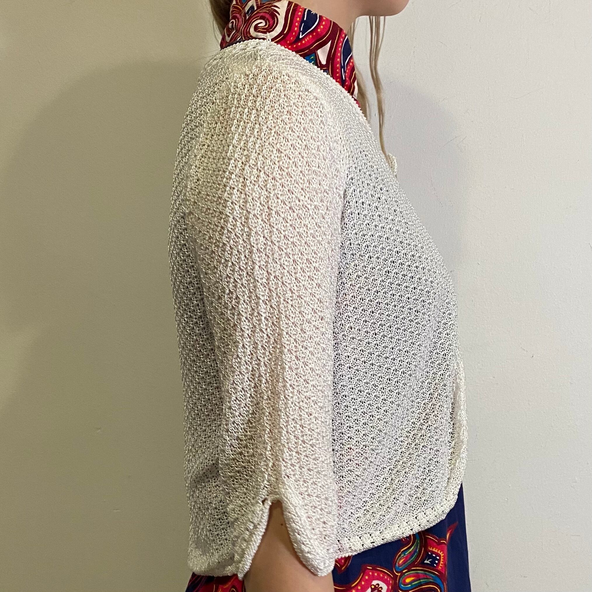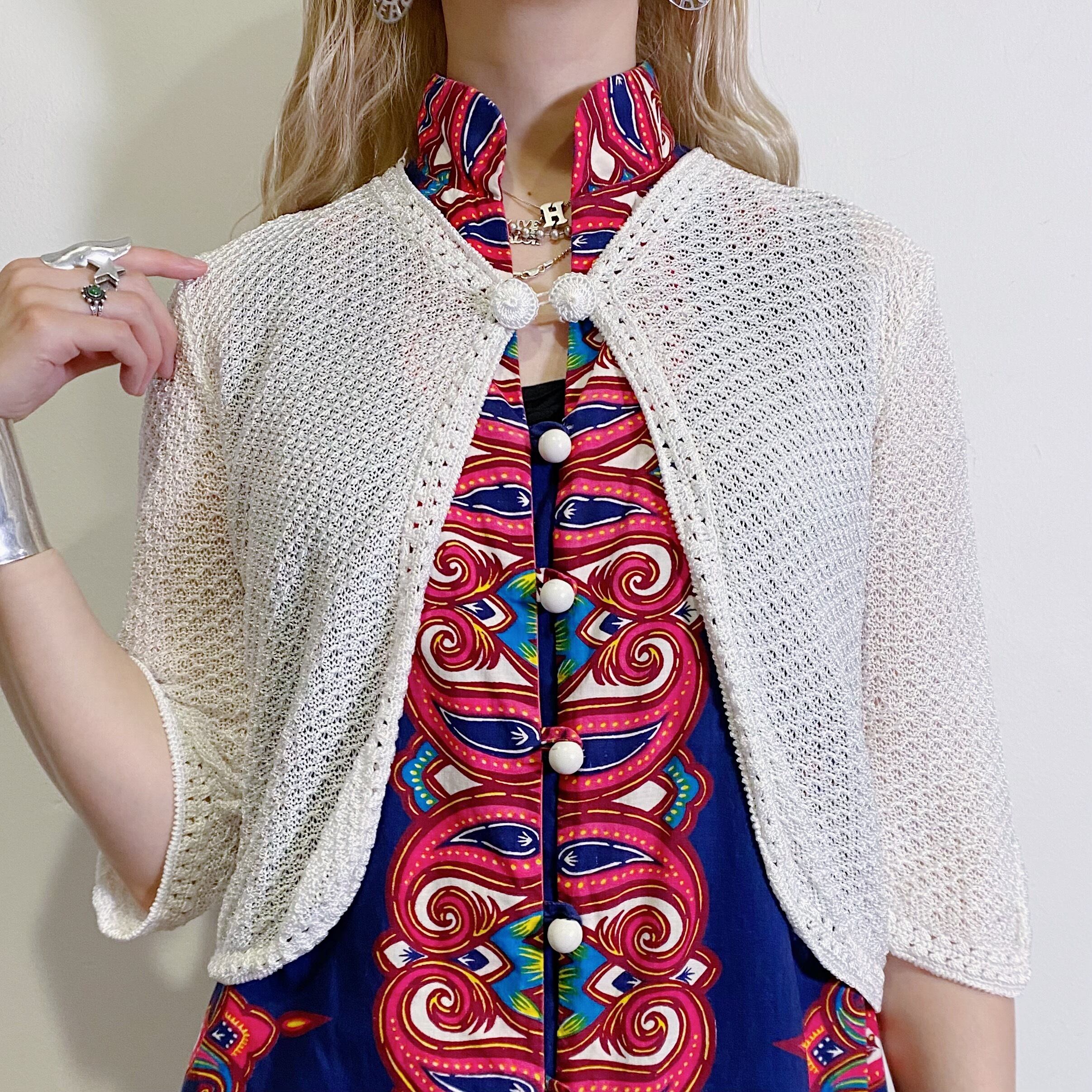 ホワイトベースで使い勝手の良さそうな、60年代頃のクロシェニットカーディガンです。