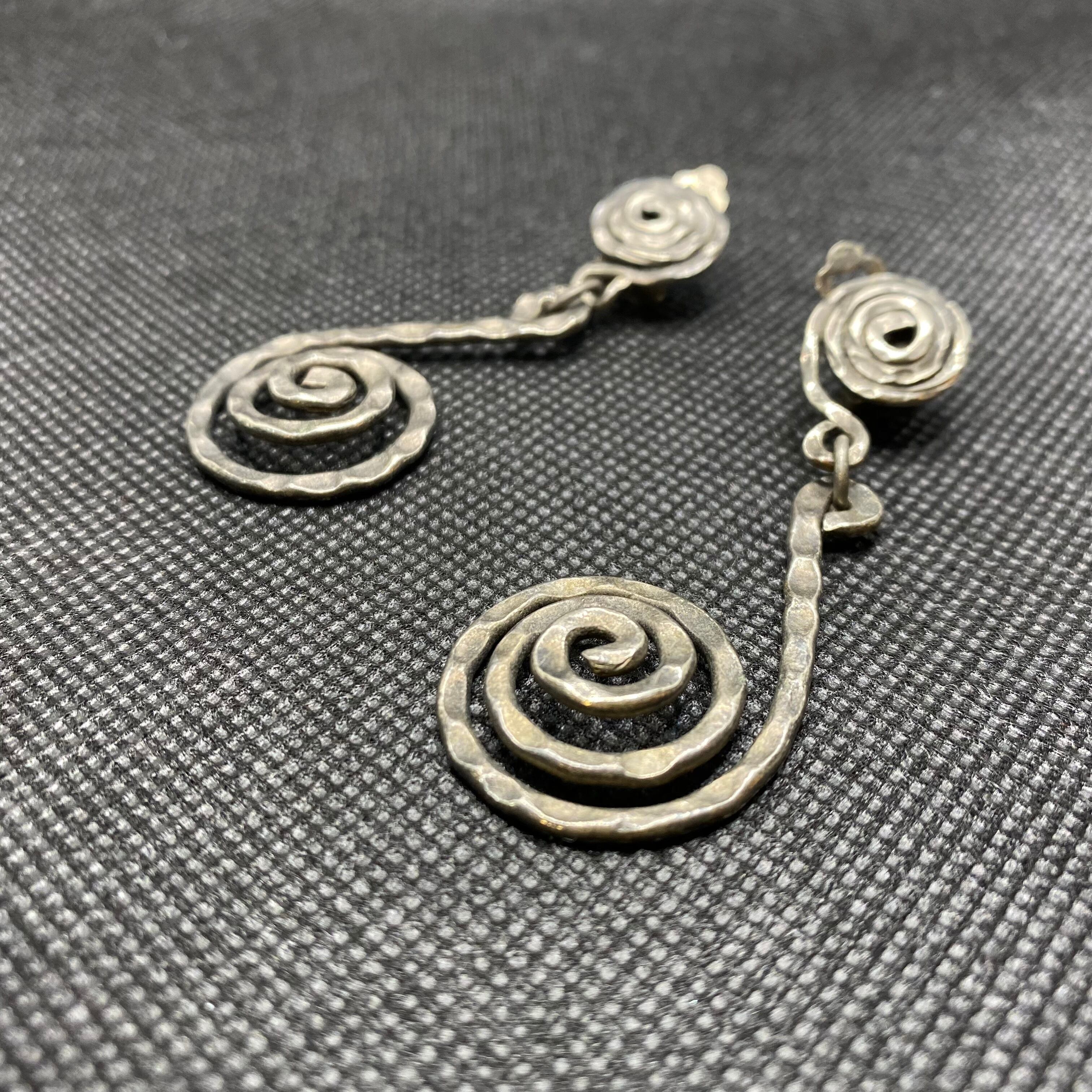ぐるぐるとした渦巻モチーフがモードで可愛いイヤリングです。