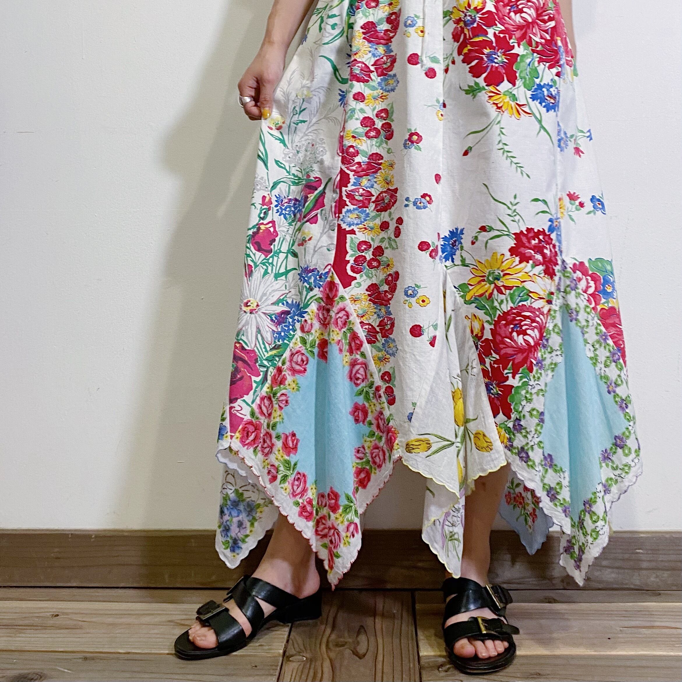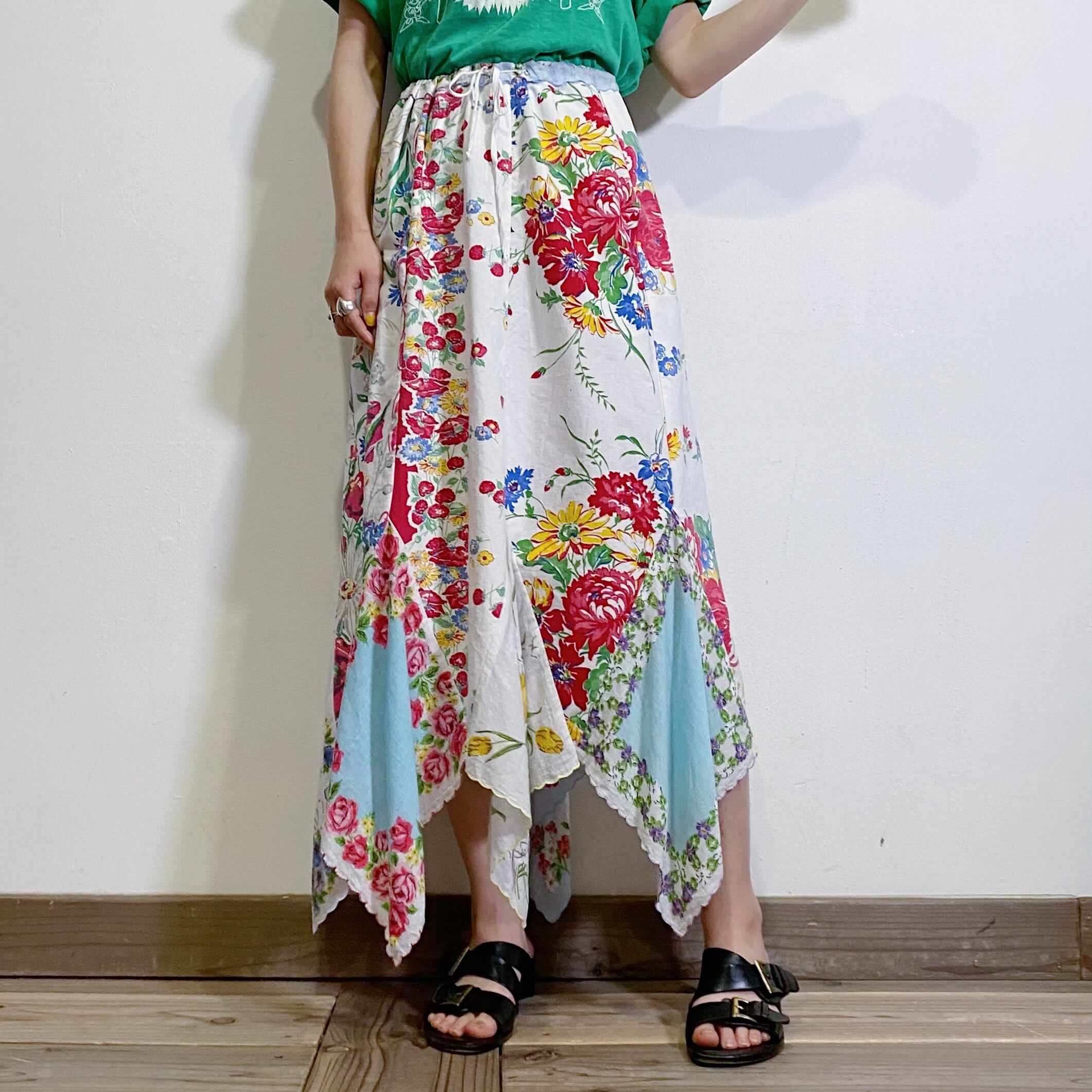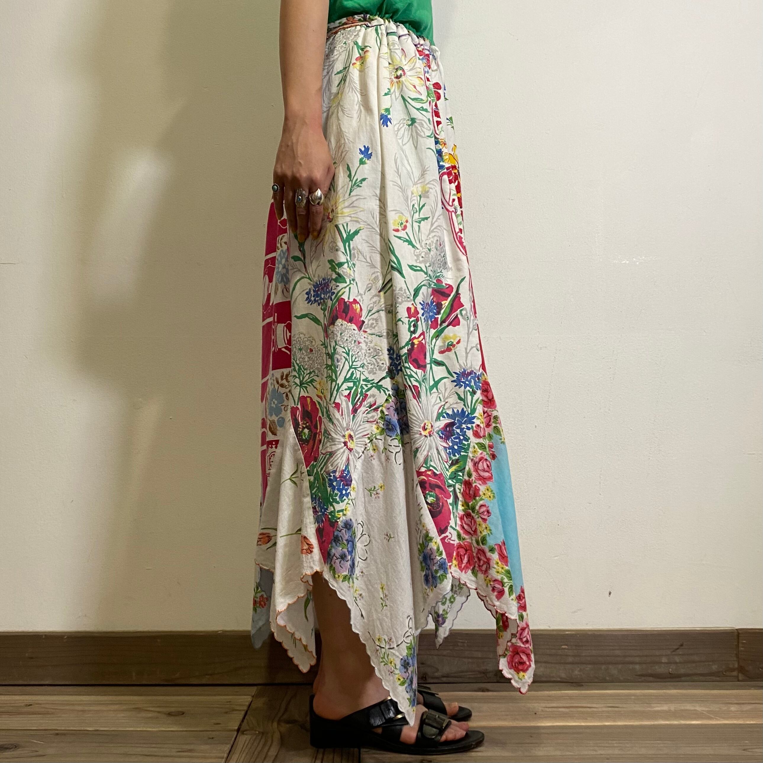 40~50年代のハンカチやテーブルクロスを使って、90年代頃にリメイクされたハンドメイドのロングスカートです。