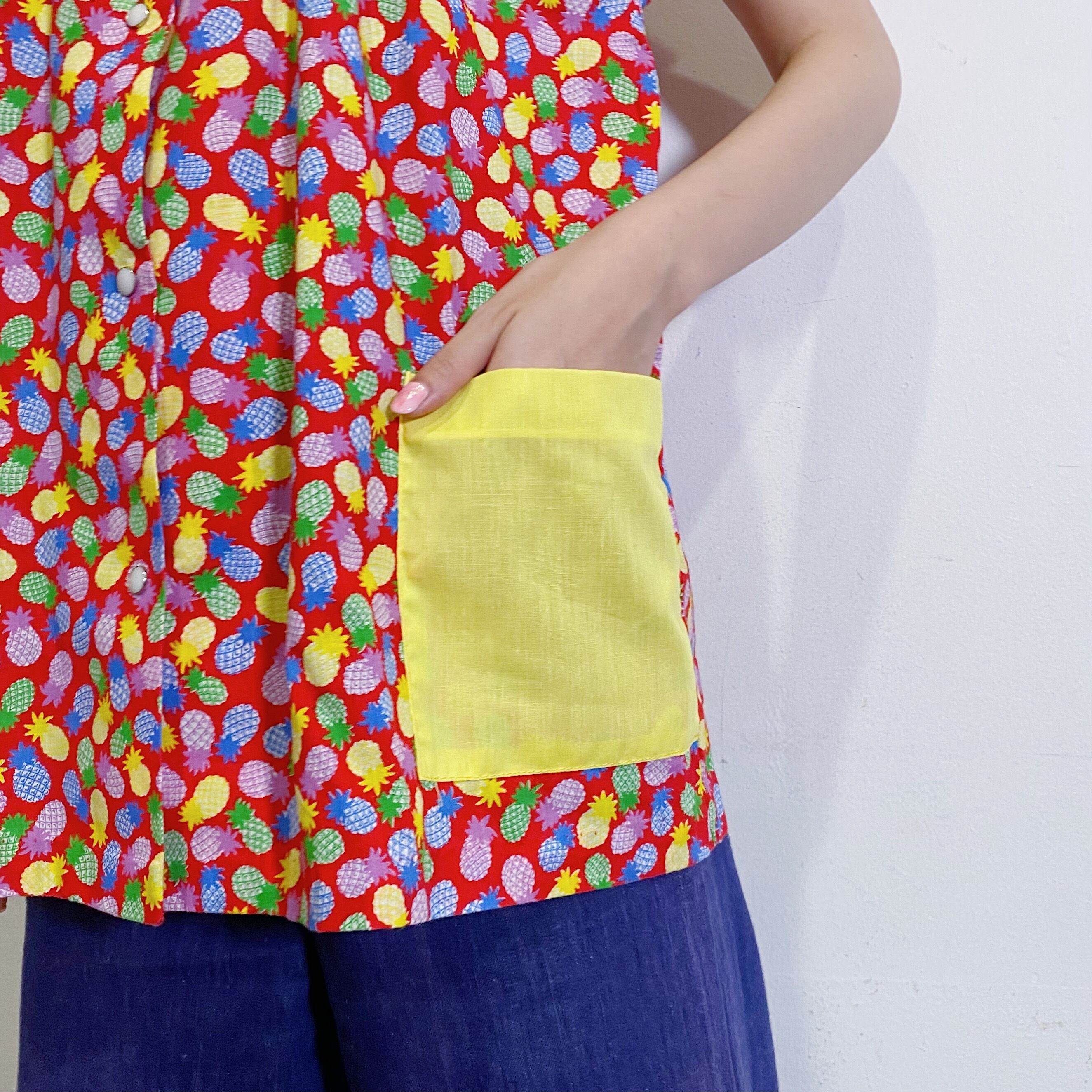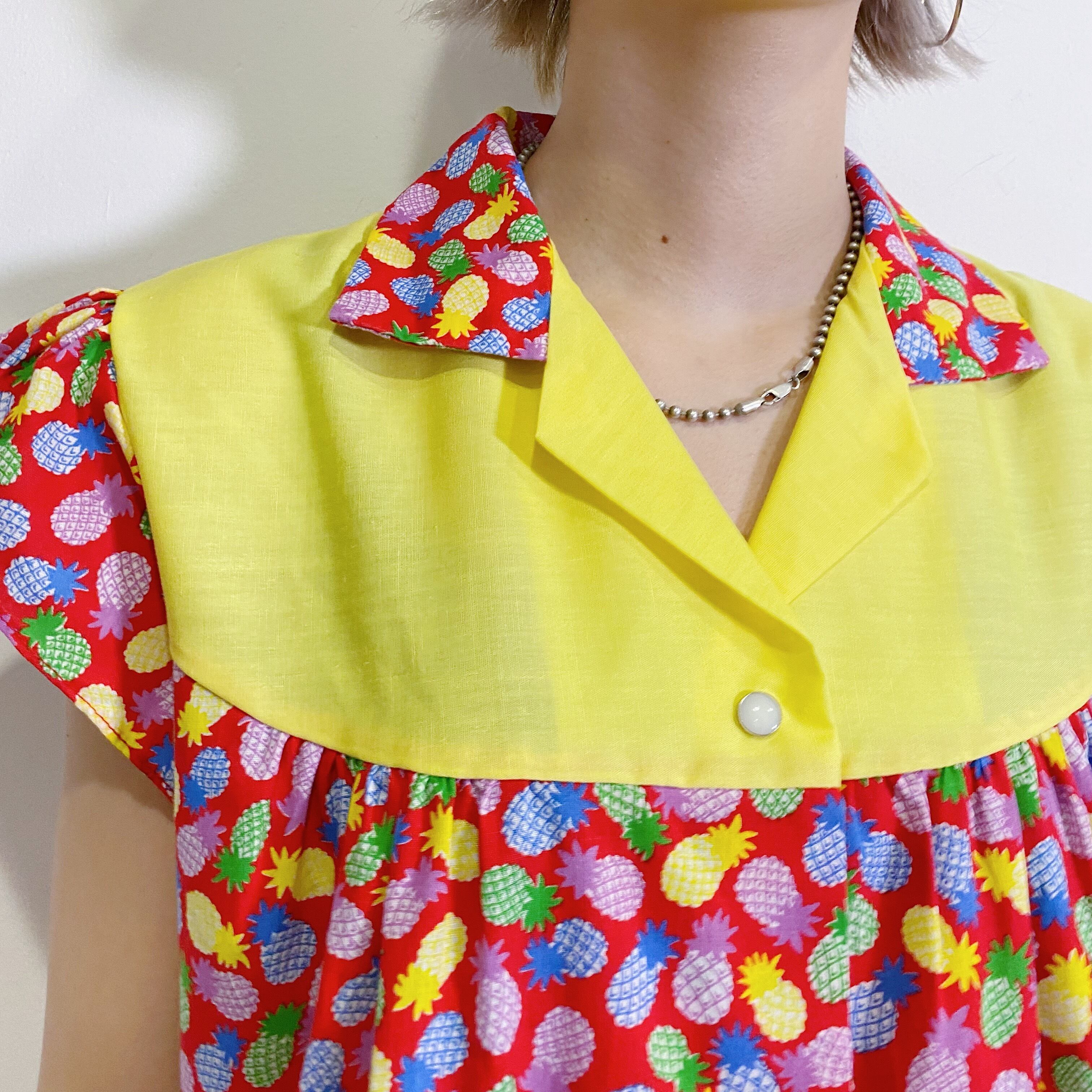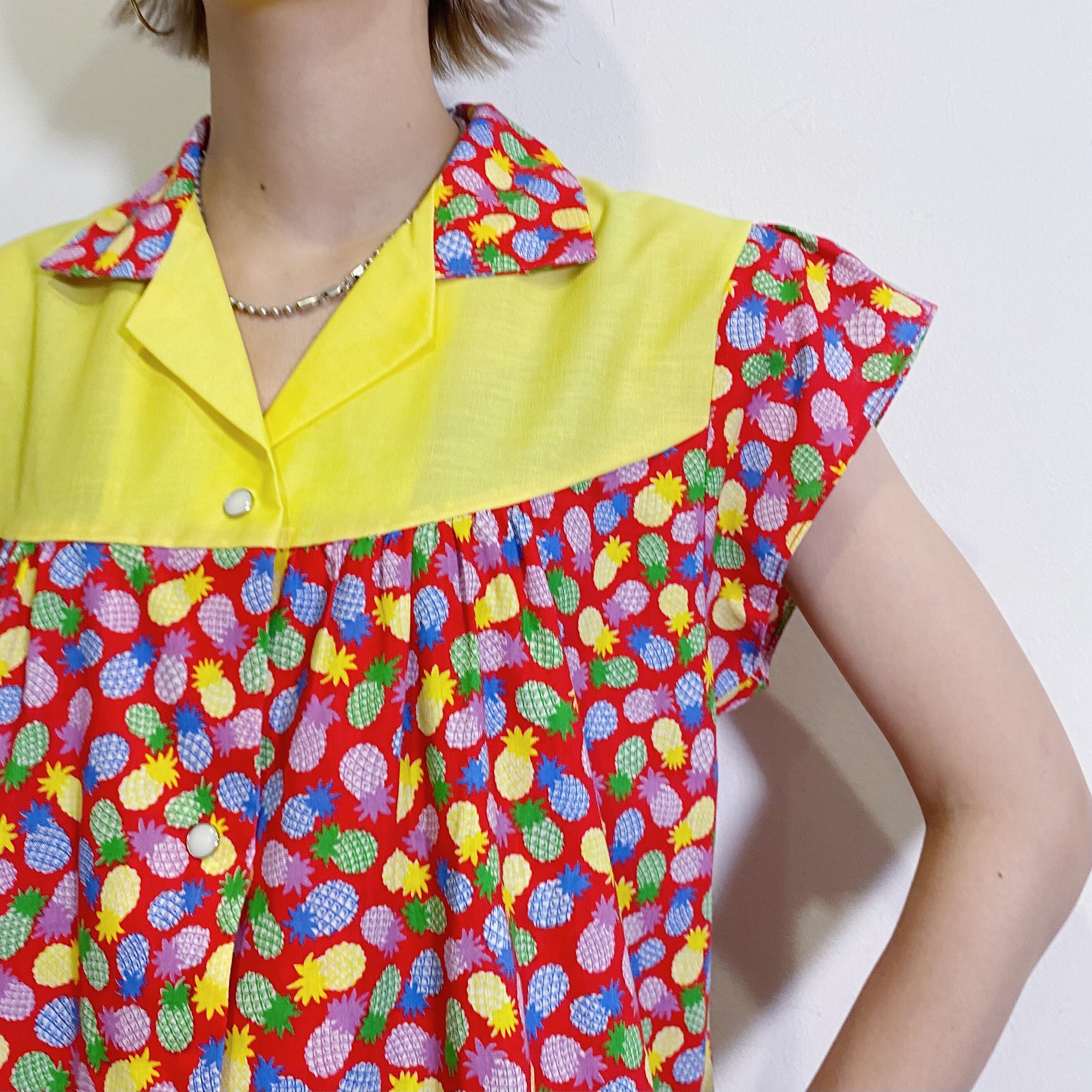 カラフルなパイナップルの柄が可愛い、70年代の開襟シャツです。
