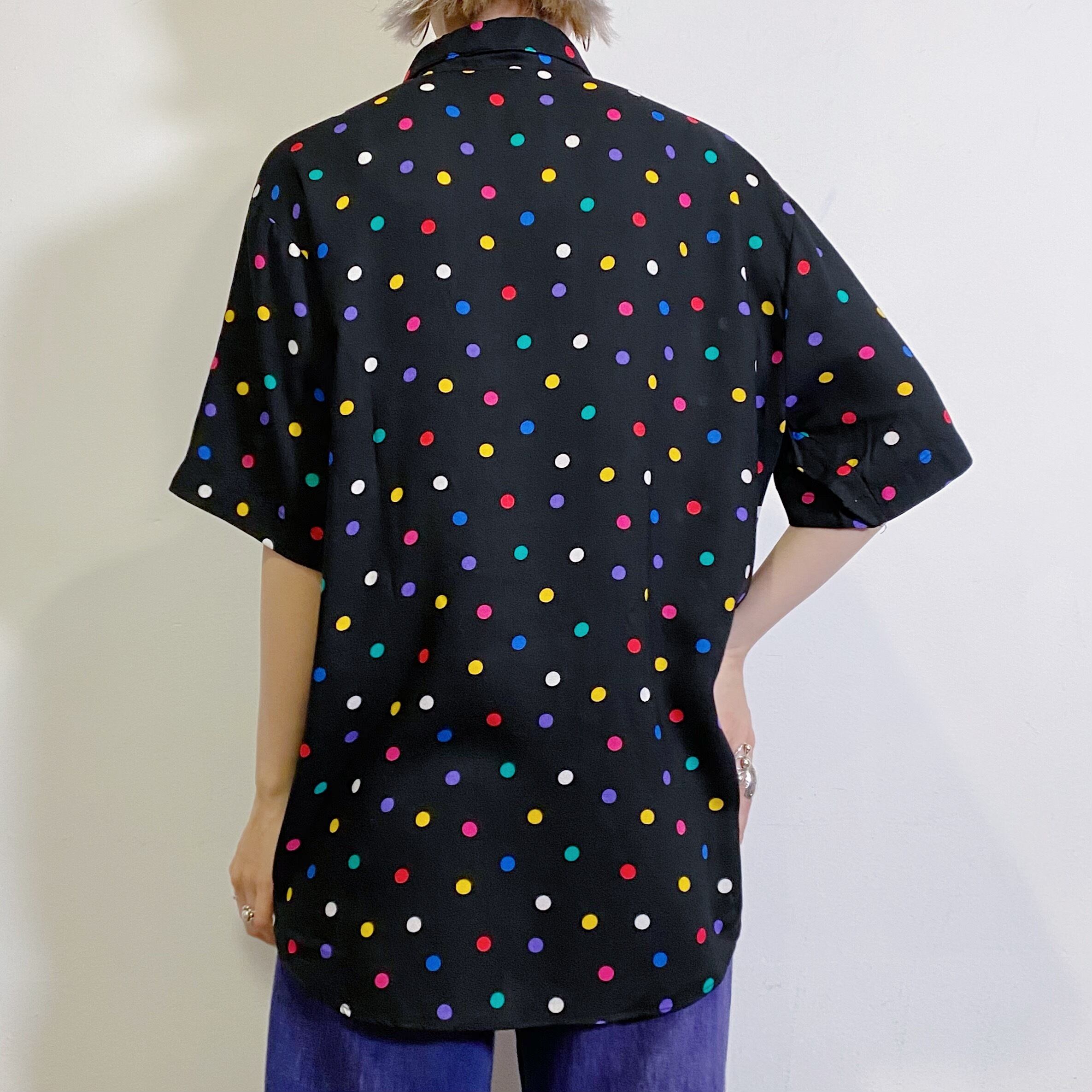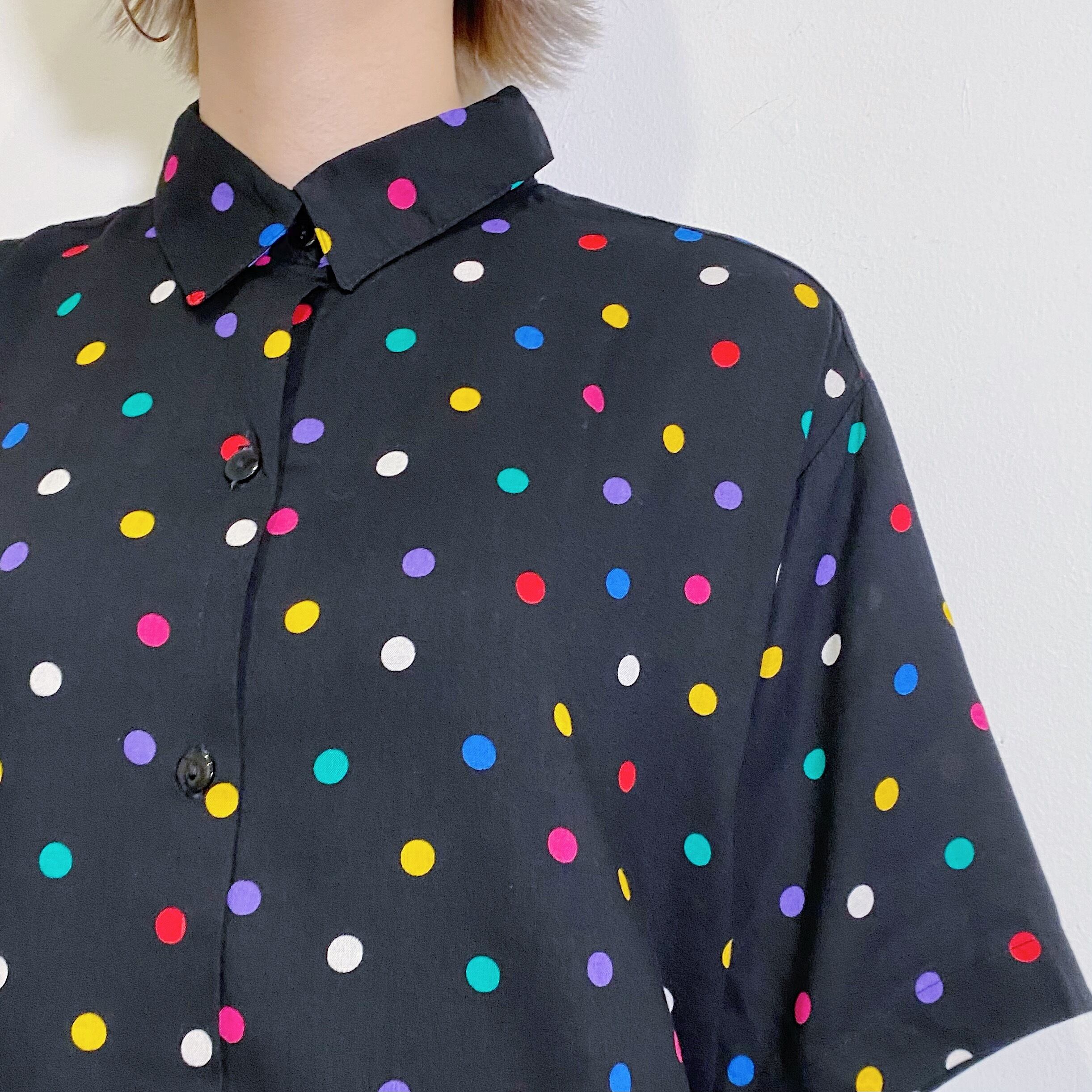 ブラックベースにカラフルなドットが映える、80年代の半袖シャツです。