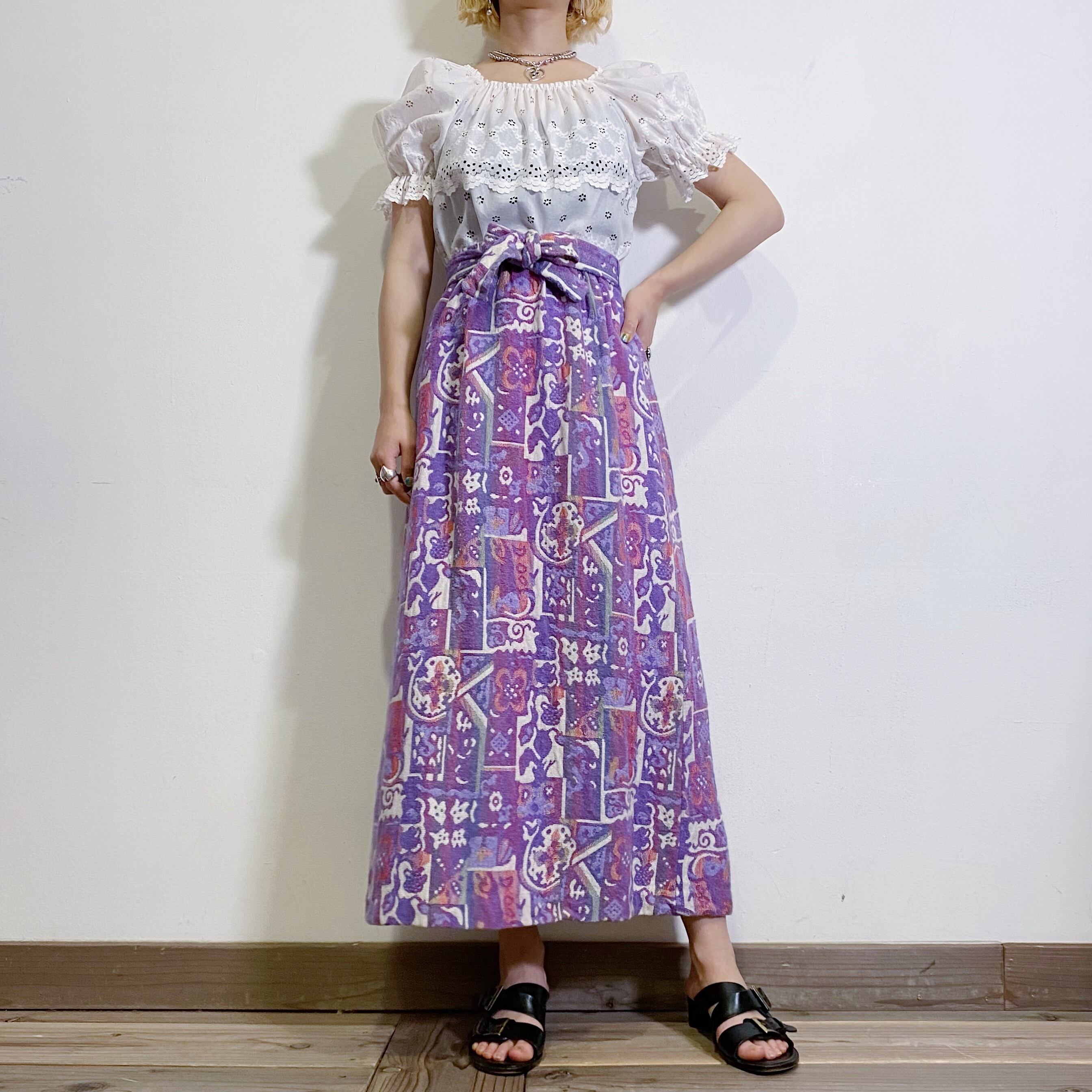 エキゾチックなテキスタイルが可愛い、60~70年代のロングスカートです。