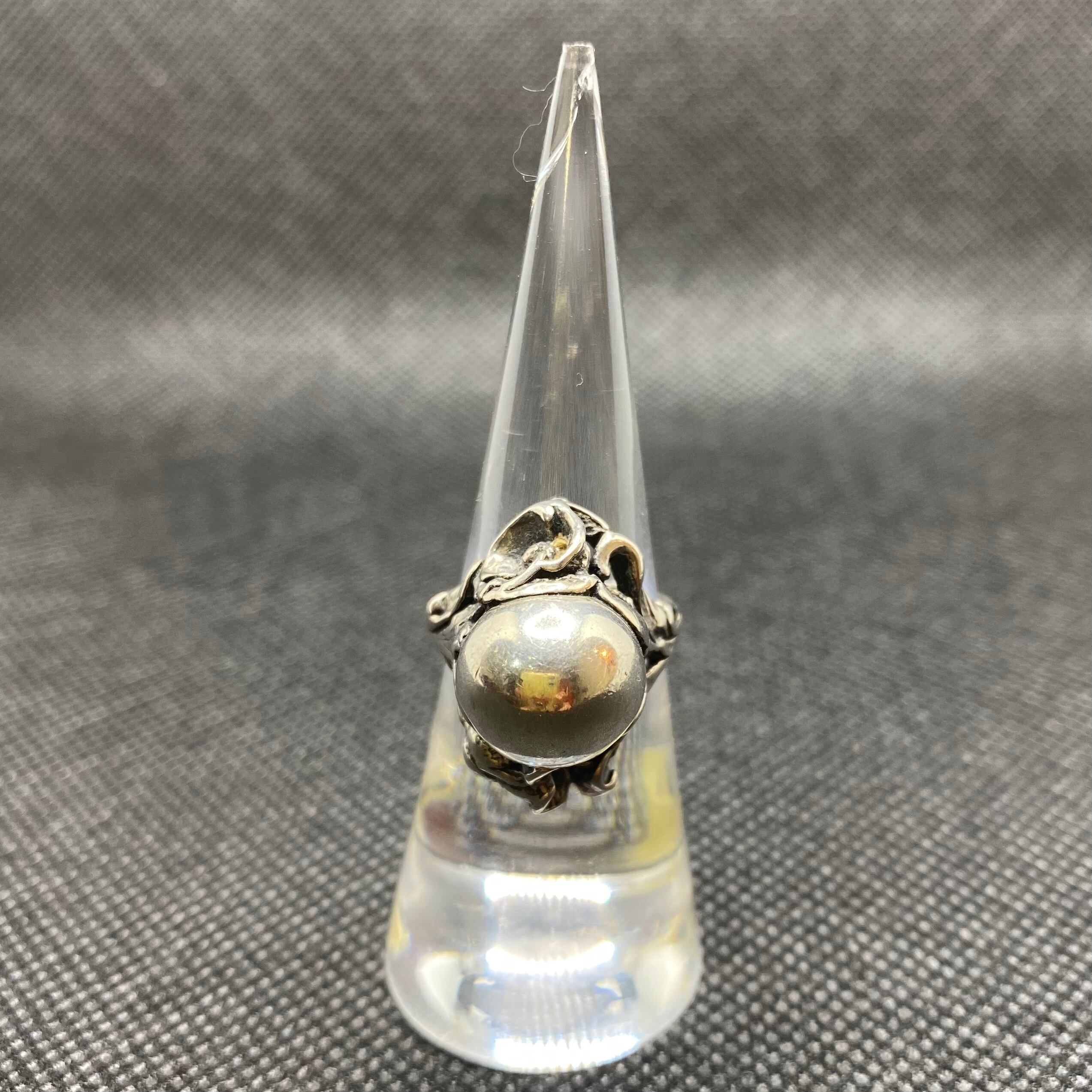 球体をお花や葉っぱで覆ったようなデザインの、925シルバーのリングです。