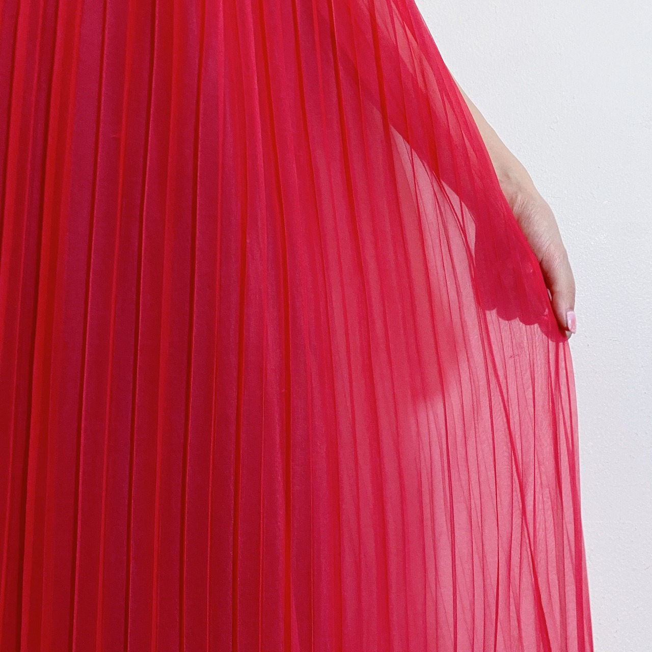 レッドカラーに透け感のある軽やかな素材がとってもキュート。
