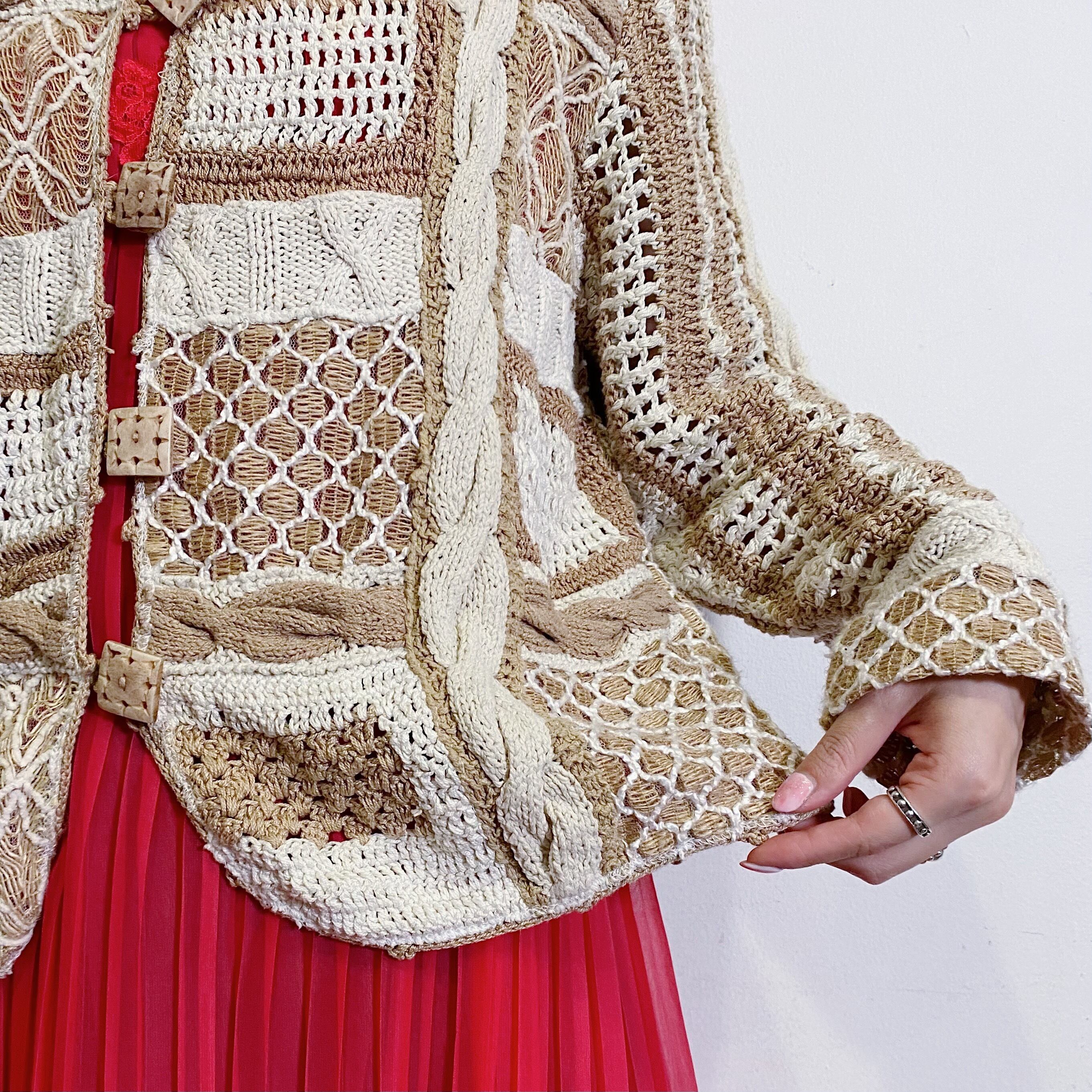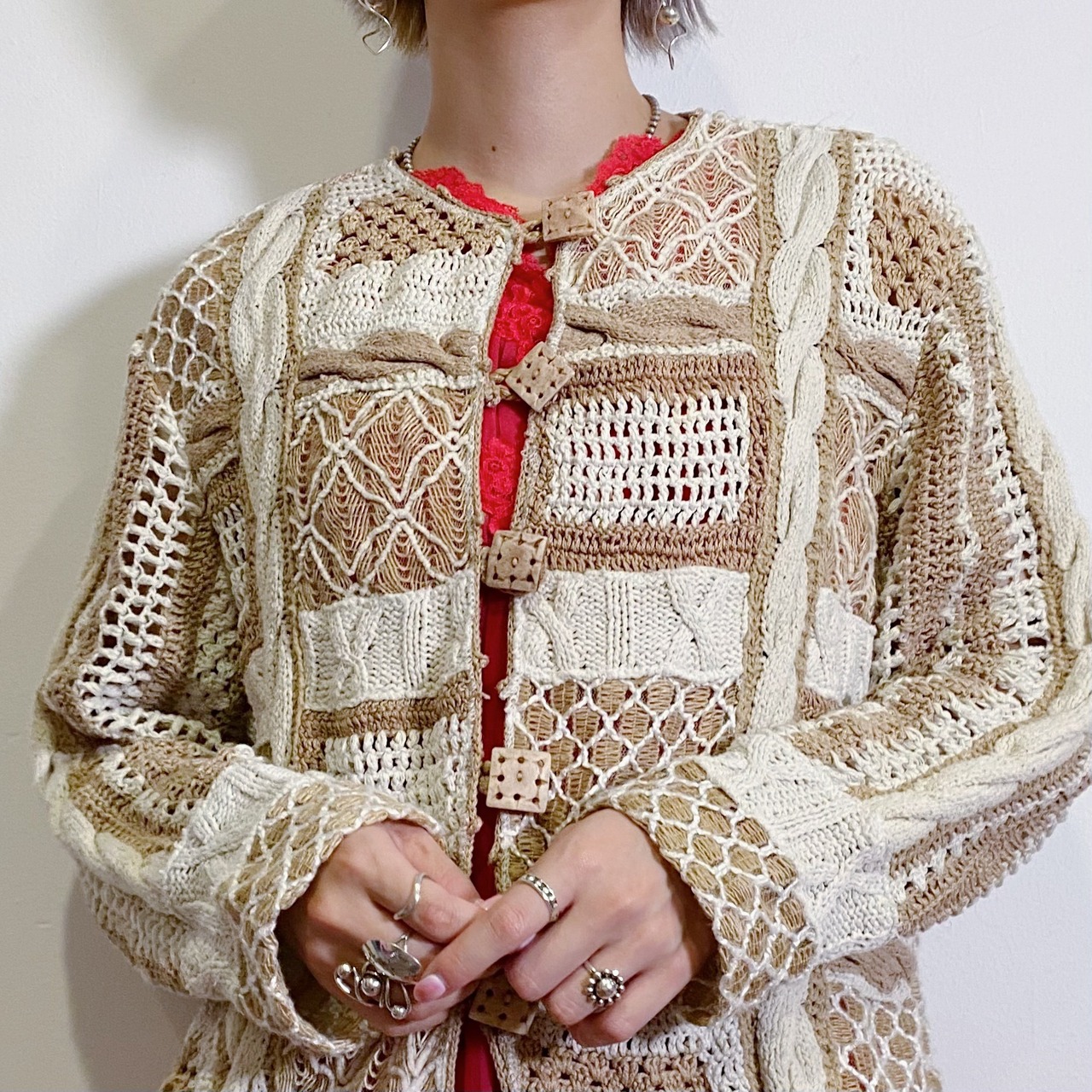 様々な編み模様を組み合わせて作られた、90年代のクロシェニットカーディガンです。