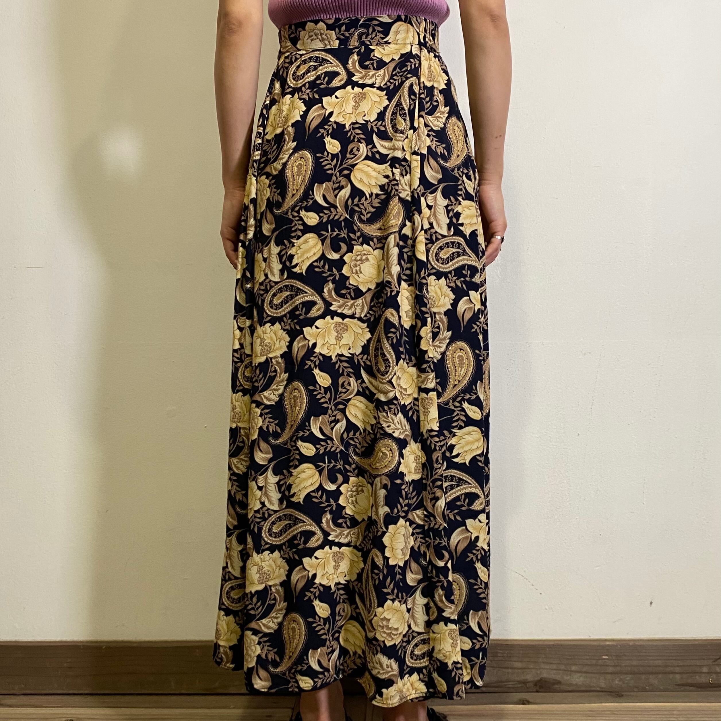 お花とペイズリー柄が可愛い、レーヨン素材のスカートです。