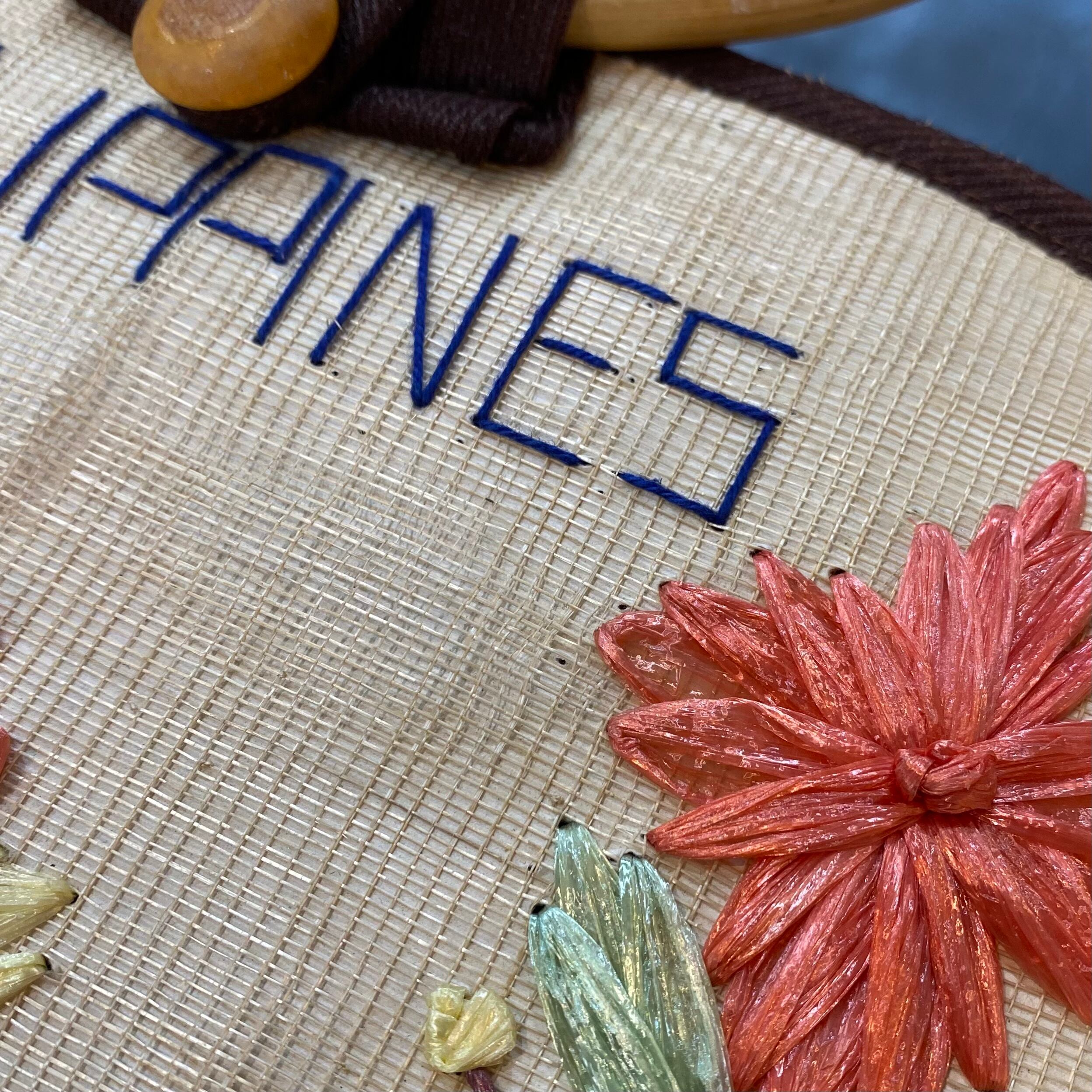 カラフルなお花モチーフが手仕事で装飾された、60年代頃のフィリピンのスーベニアバッグです。