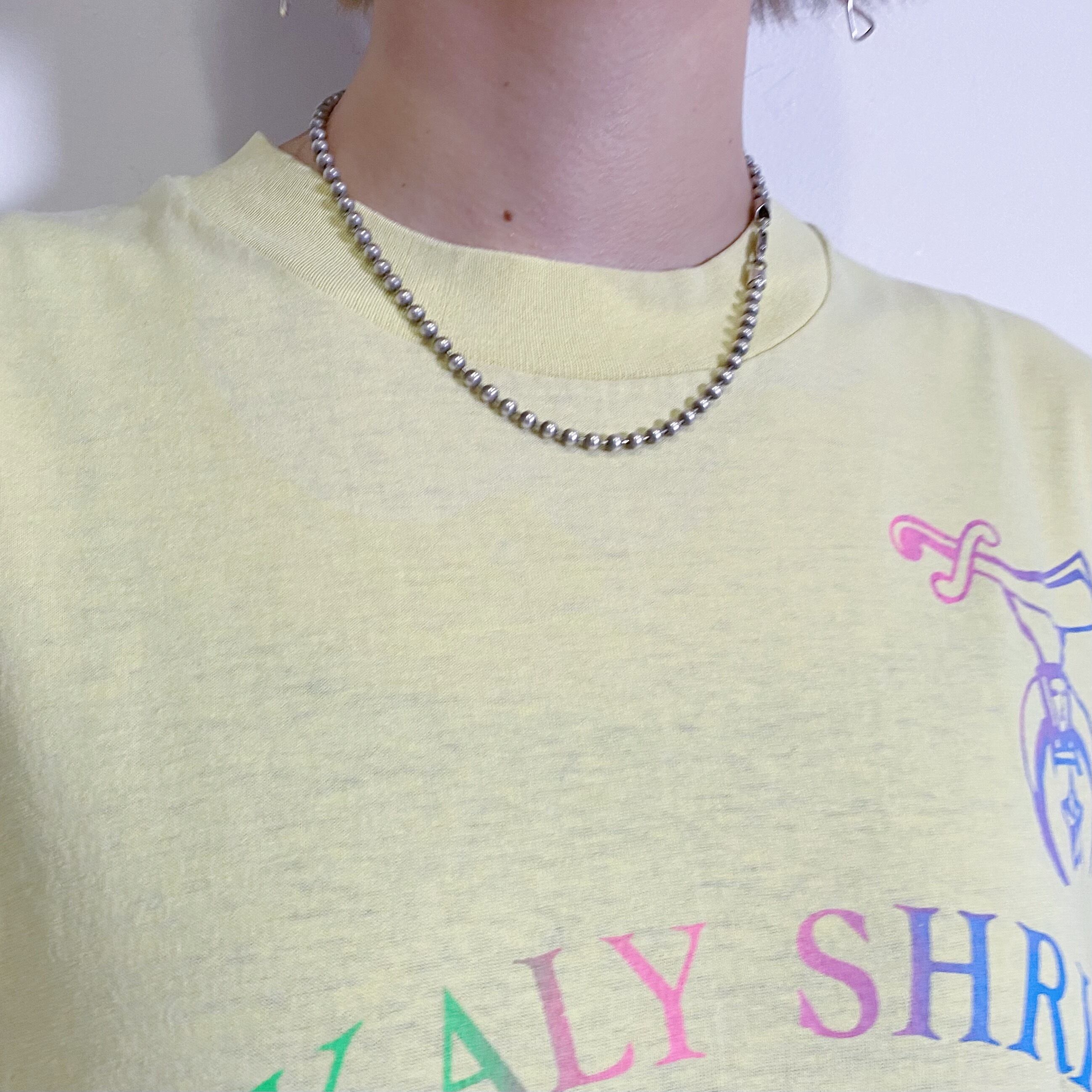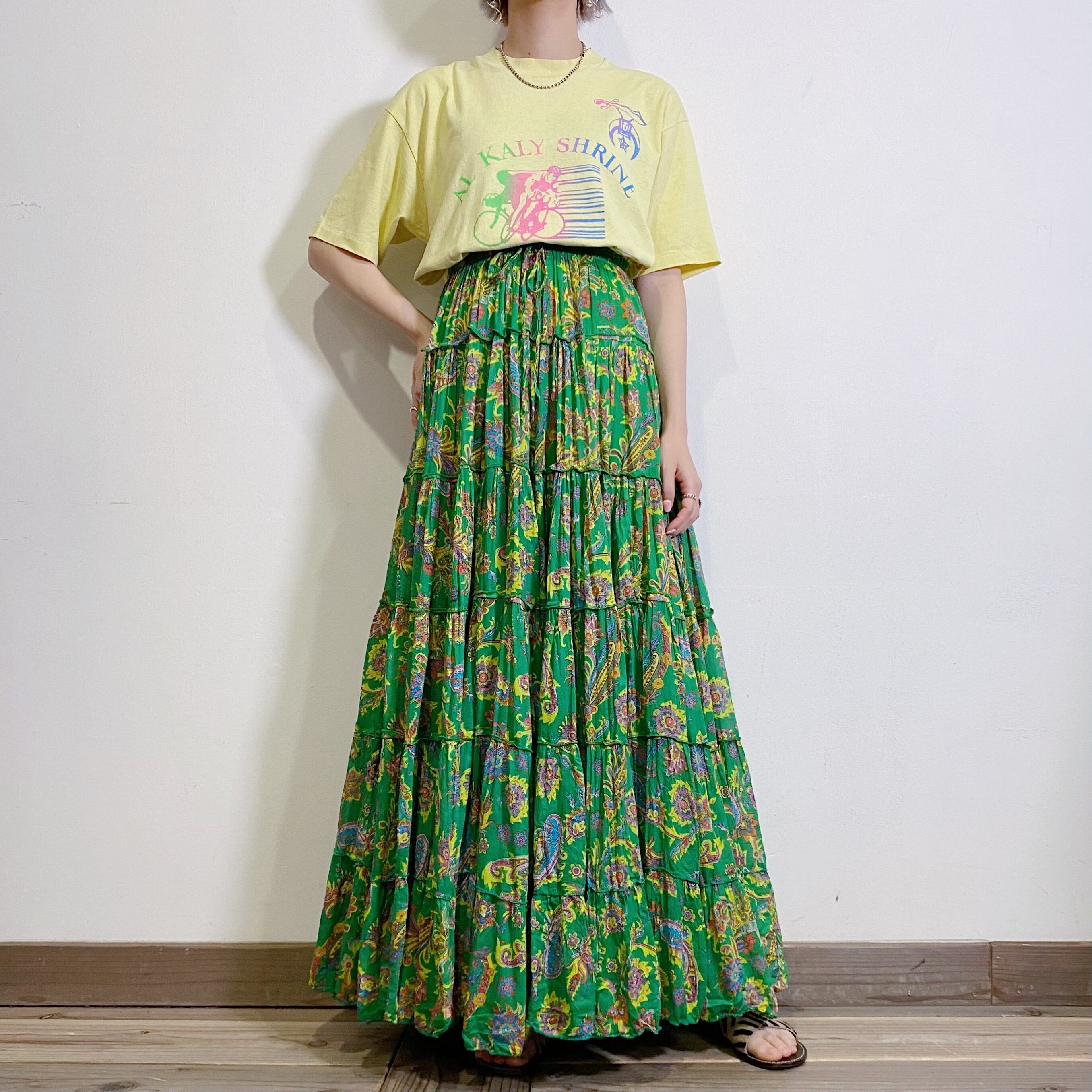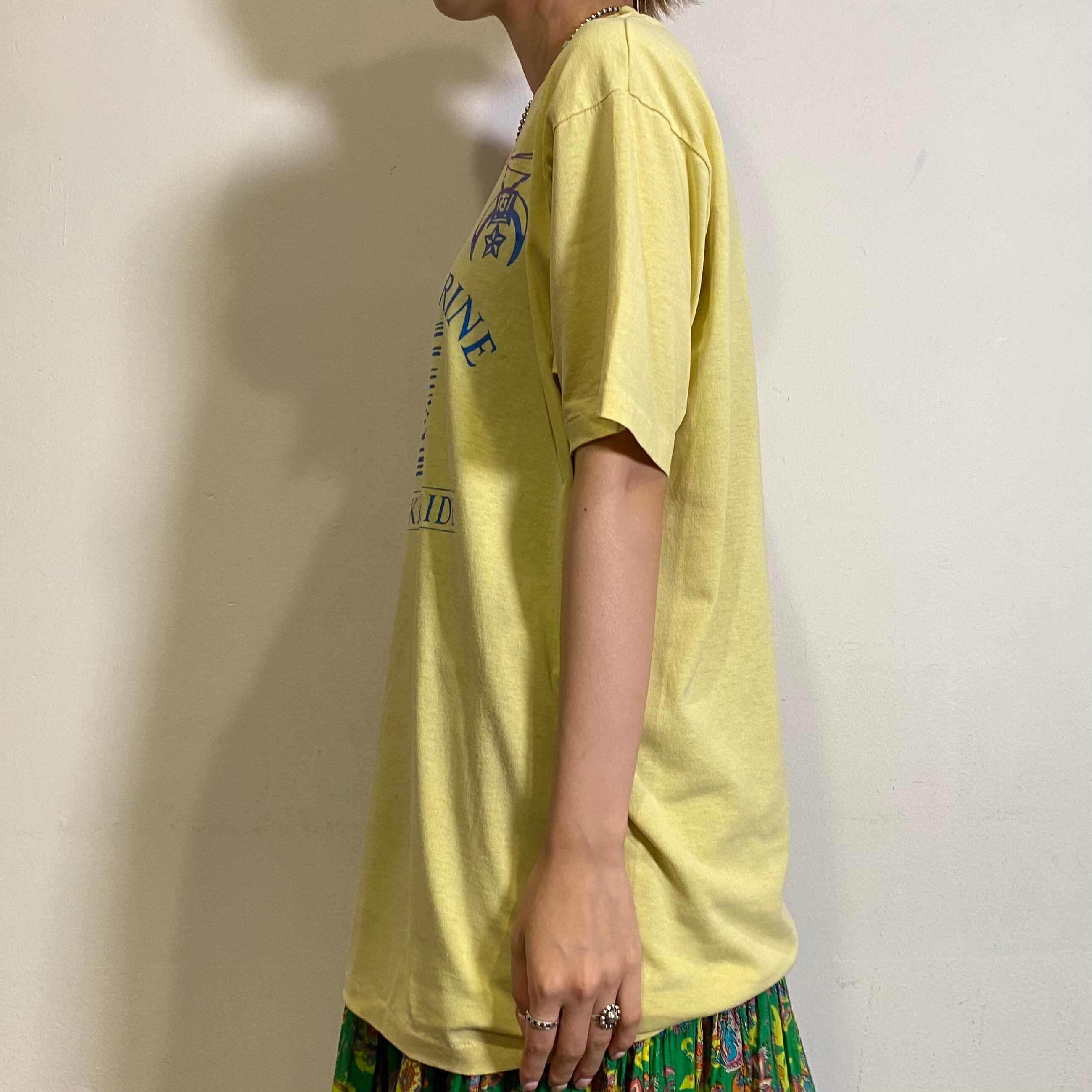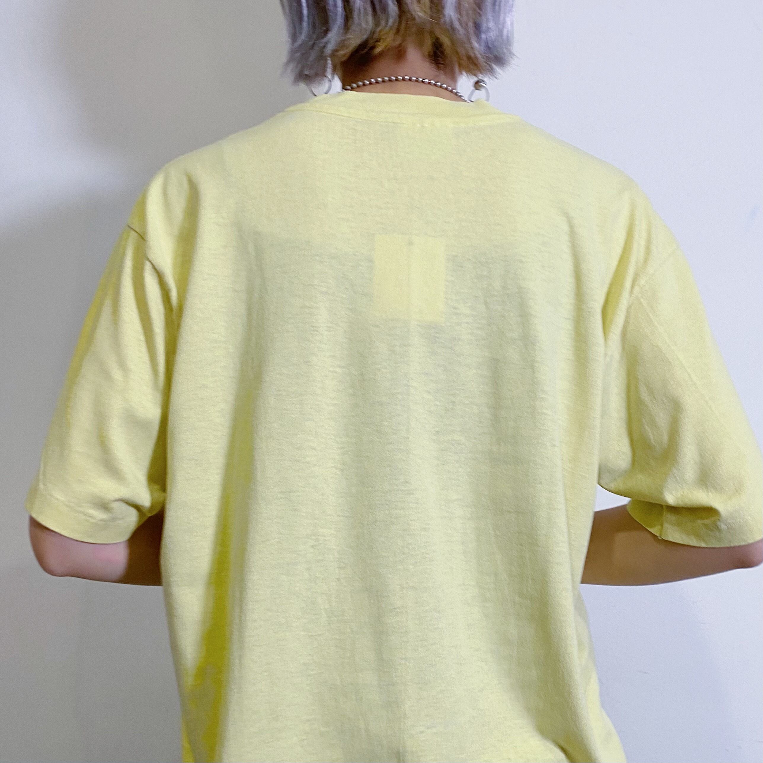 クリームイエローカラーにパステルカラーのプリントが可愛い、80年代のTシャツです。