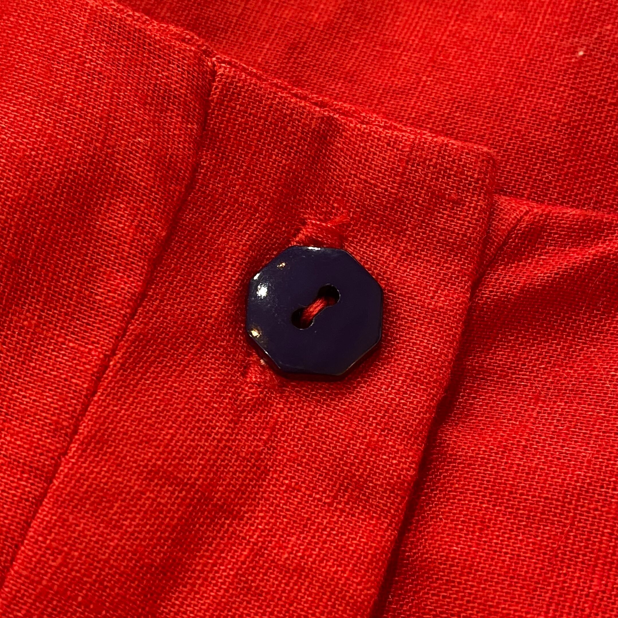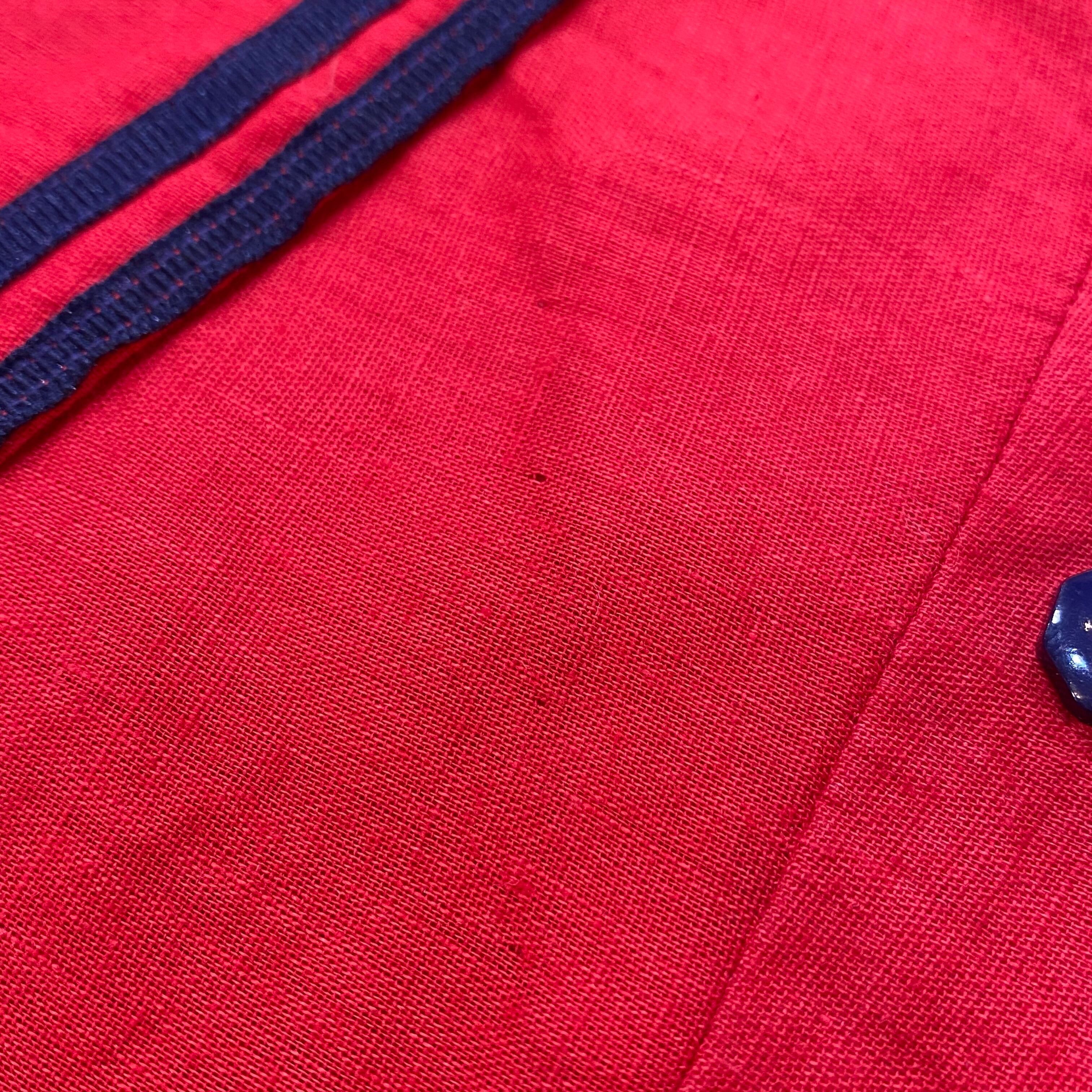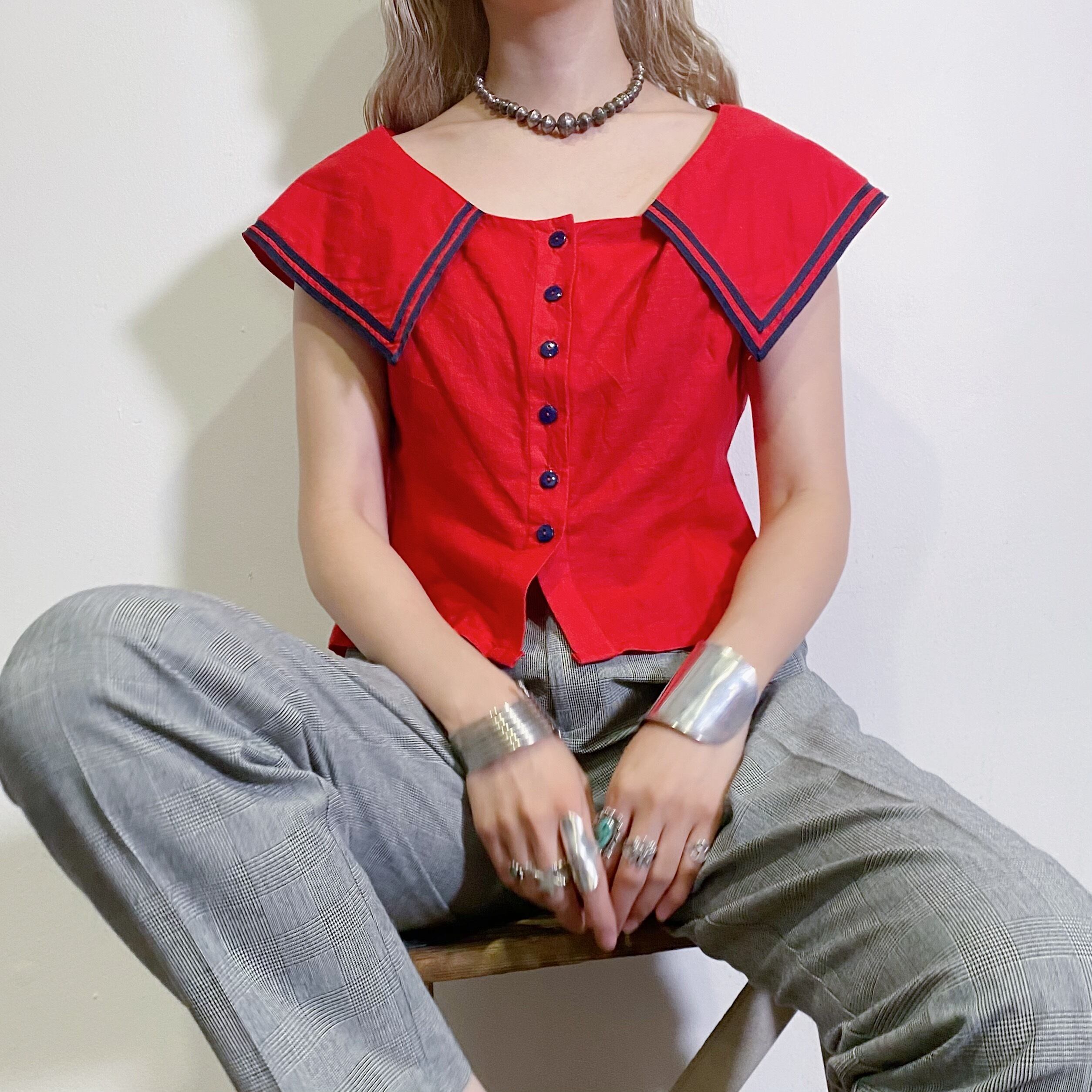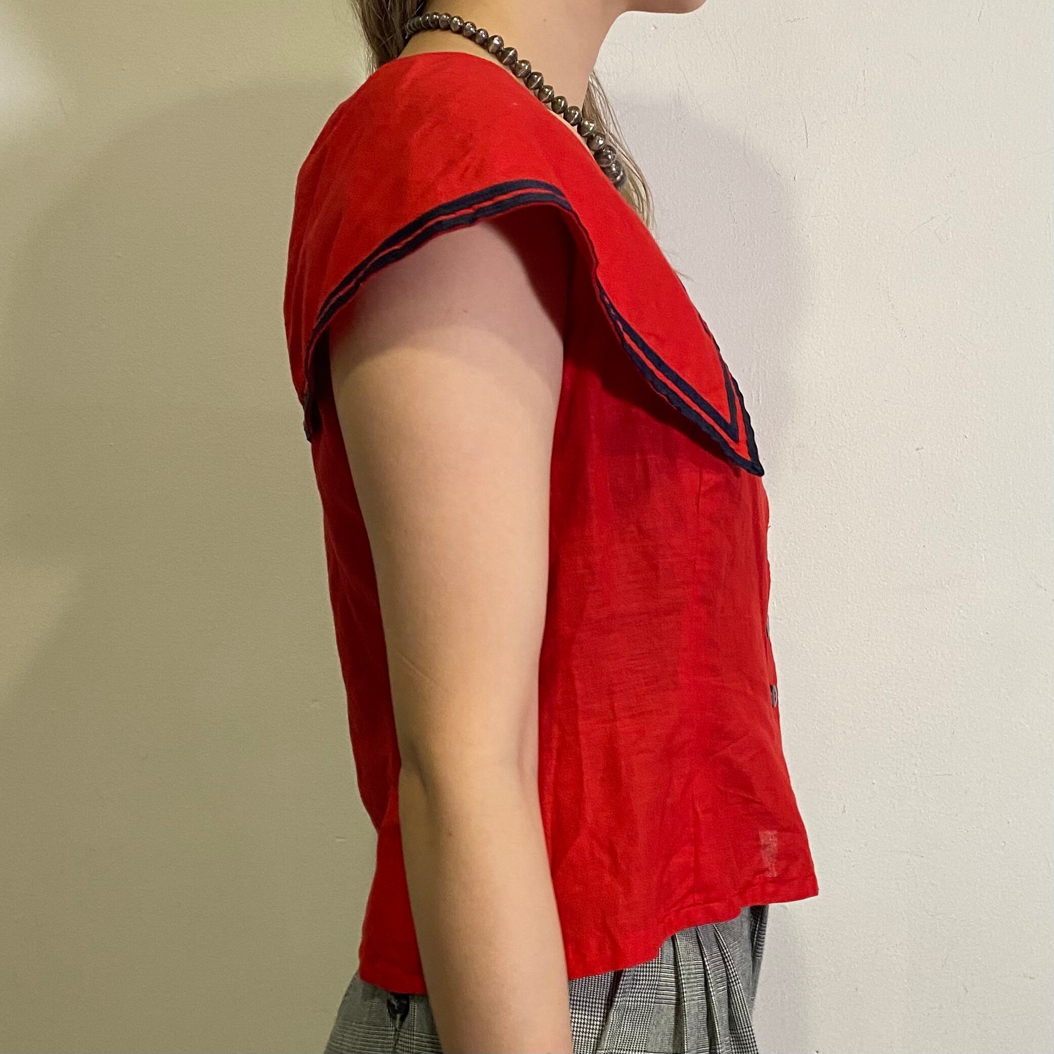 ぱっきりレッドカラーに大きなセラーカラーが可愛い、80年代のリネントップスです。