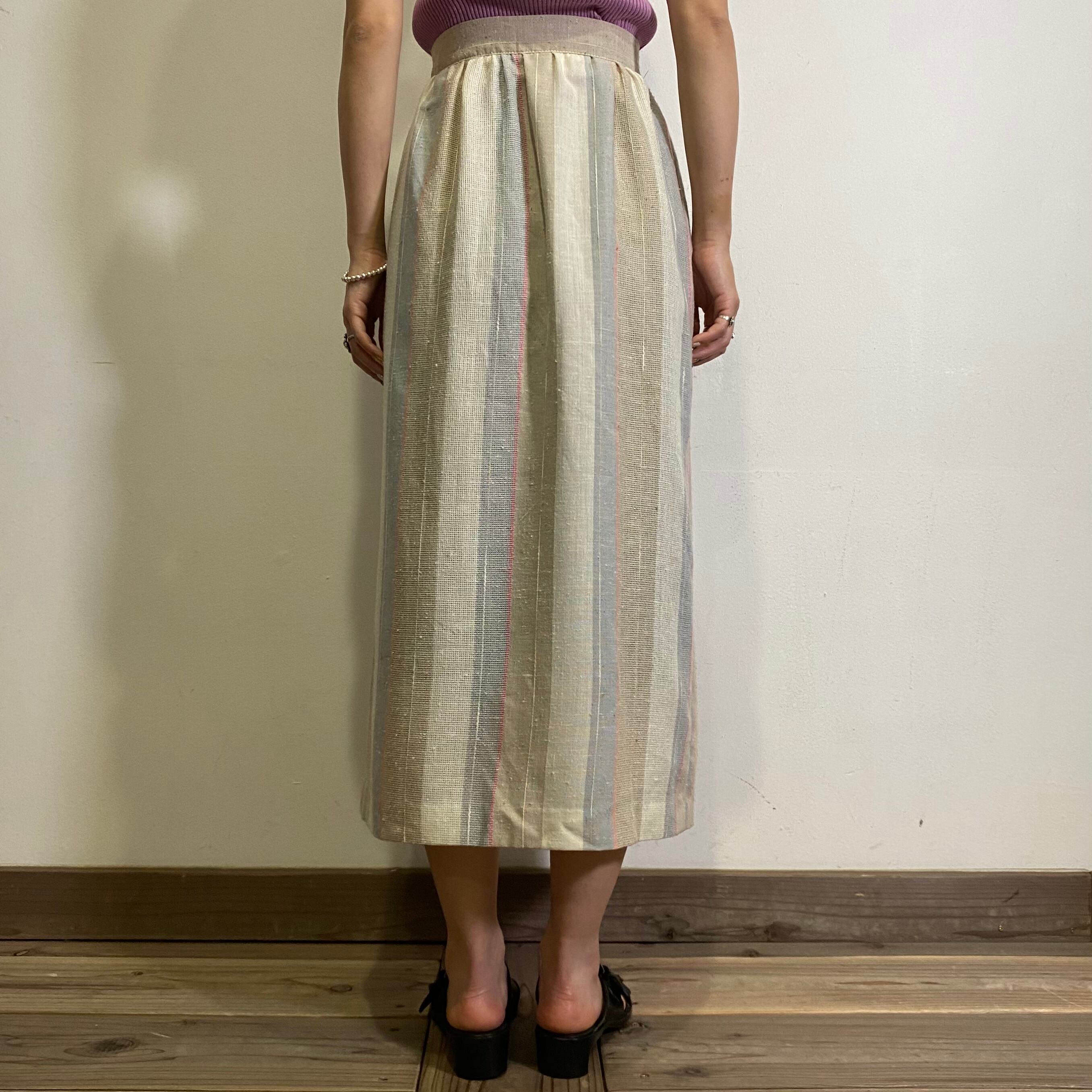 ベージュベースに水色やピンクの色が差し込まれた、80年代フレアスカートです。