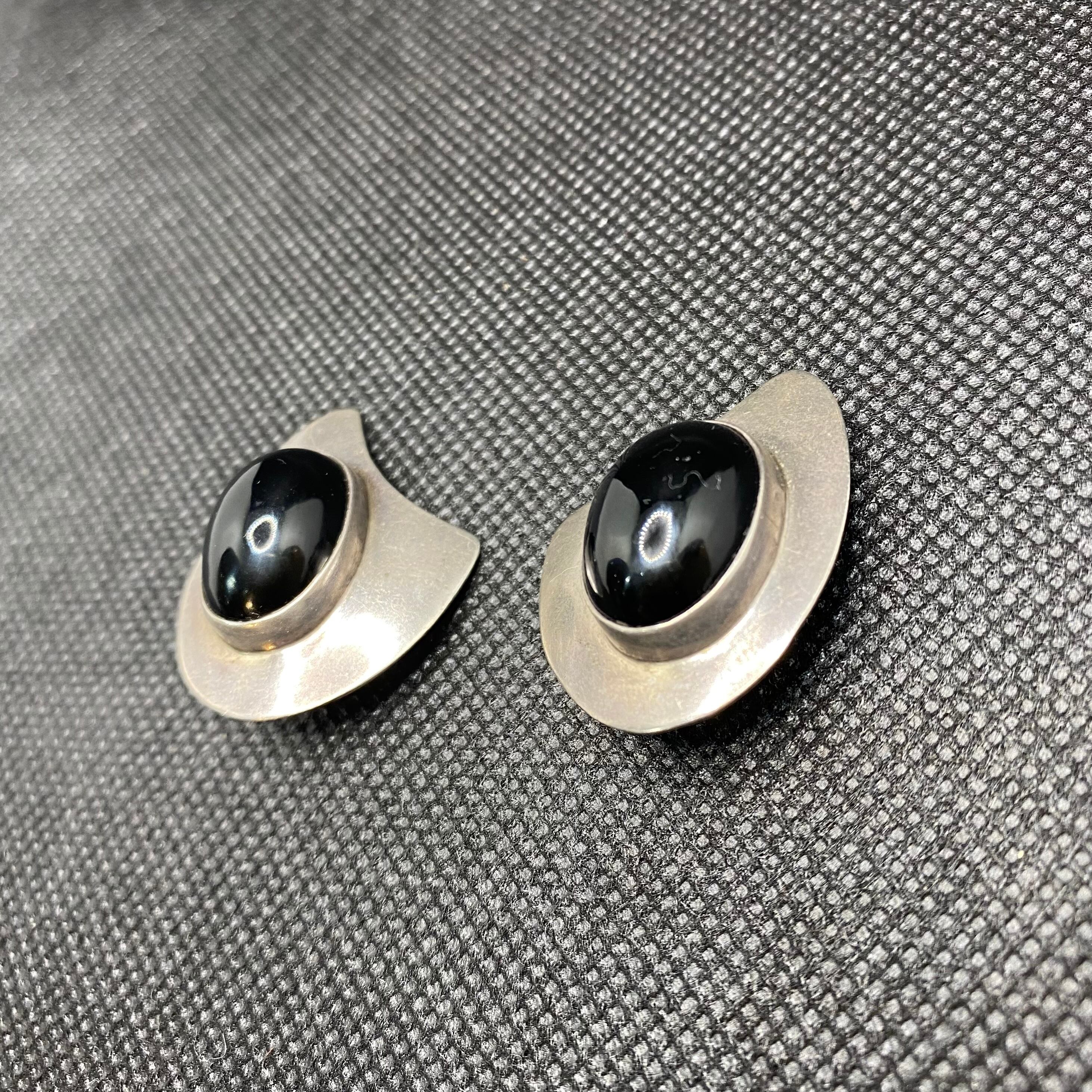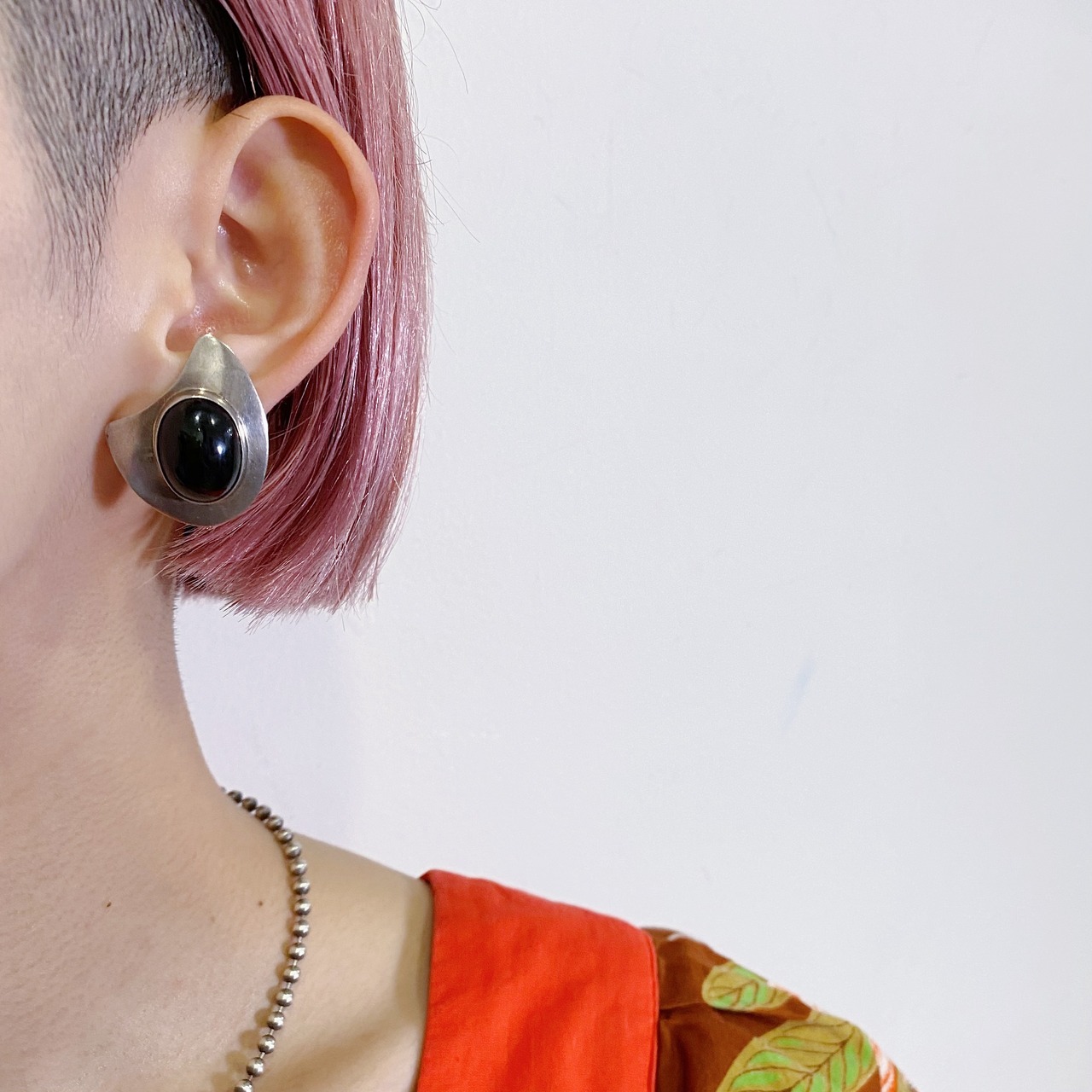 存在感のある大きめなオニキスがポイントの、メキシコの925シルバーイヤリングです。