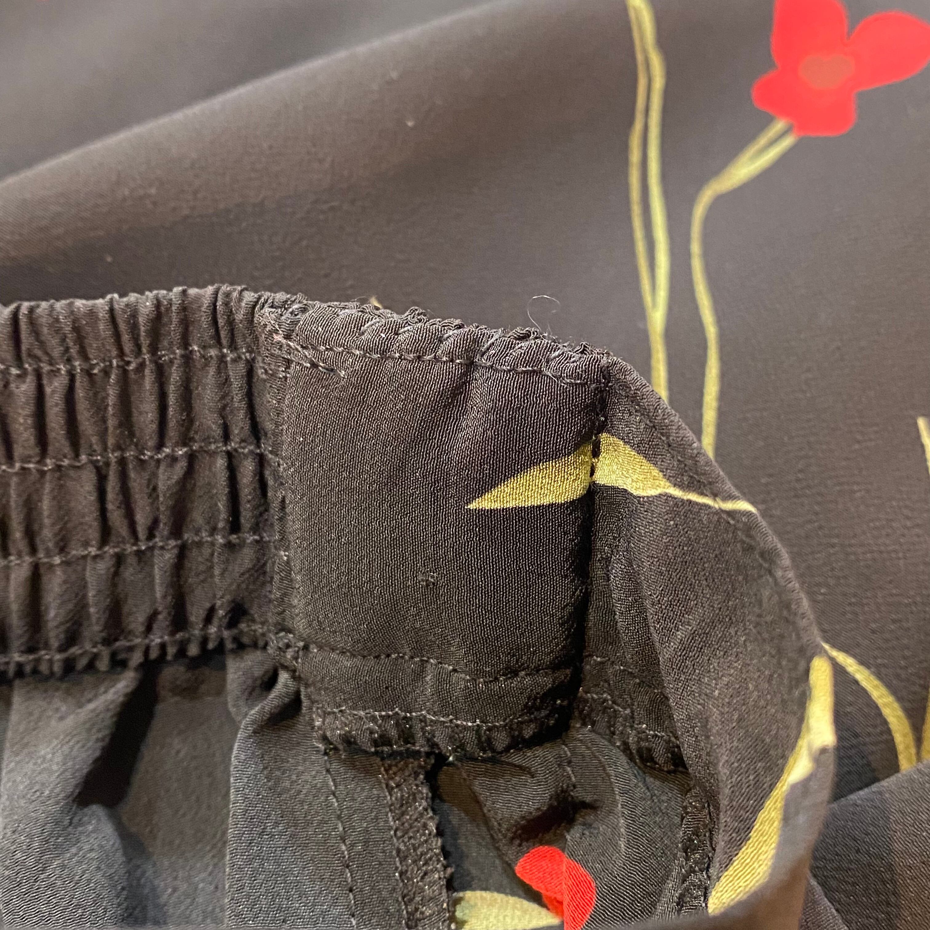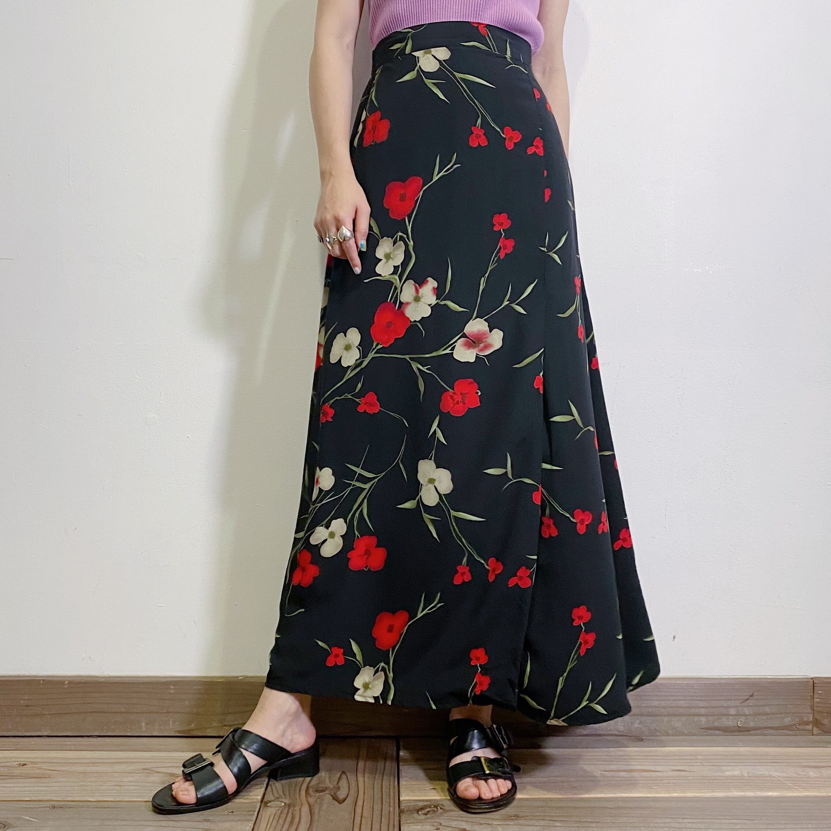 黒ベースに赤いお花のプリントが可愛い90年代頃のロングスカートです。