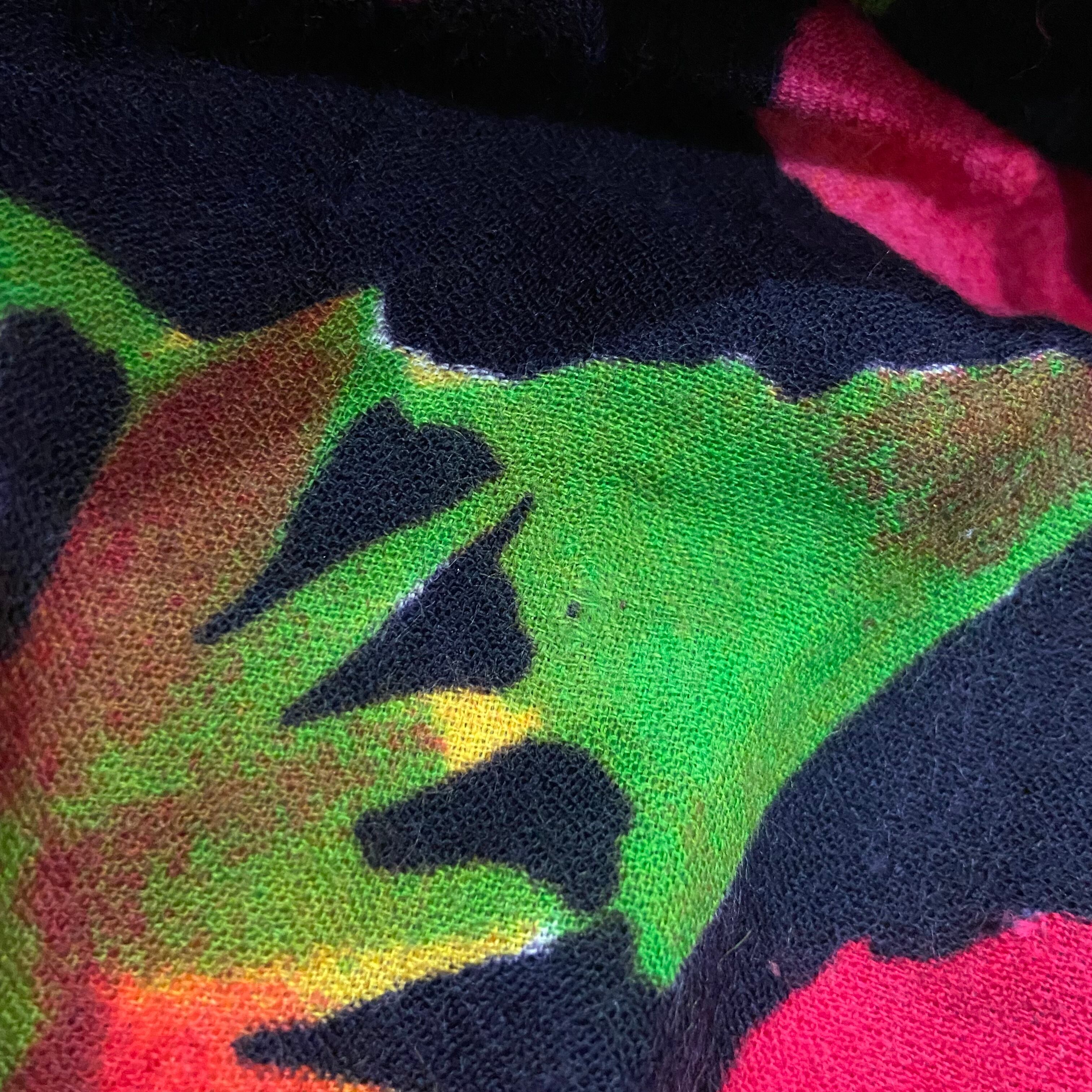 生き生きとした花柄のテキスタイルが可愛く、着てると元気になれそうです。