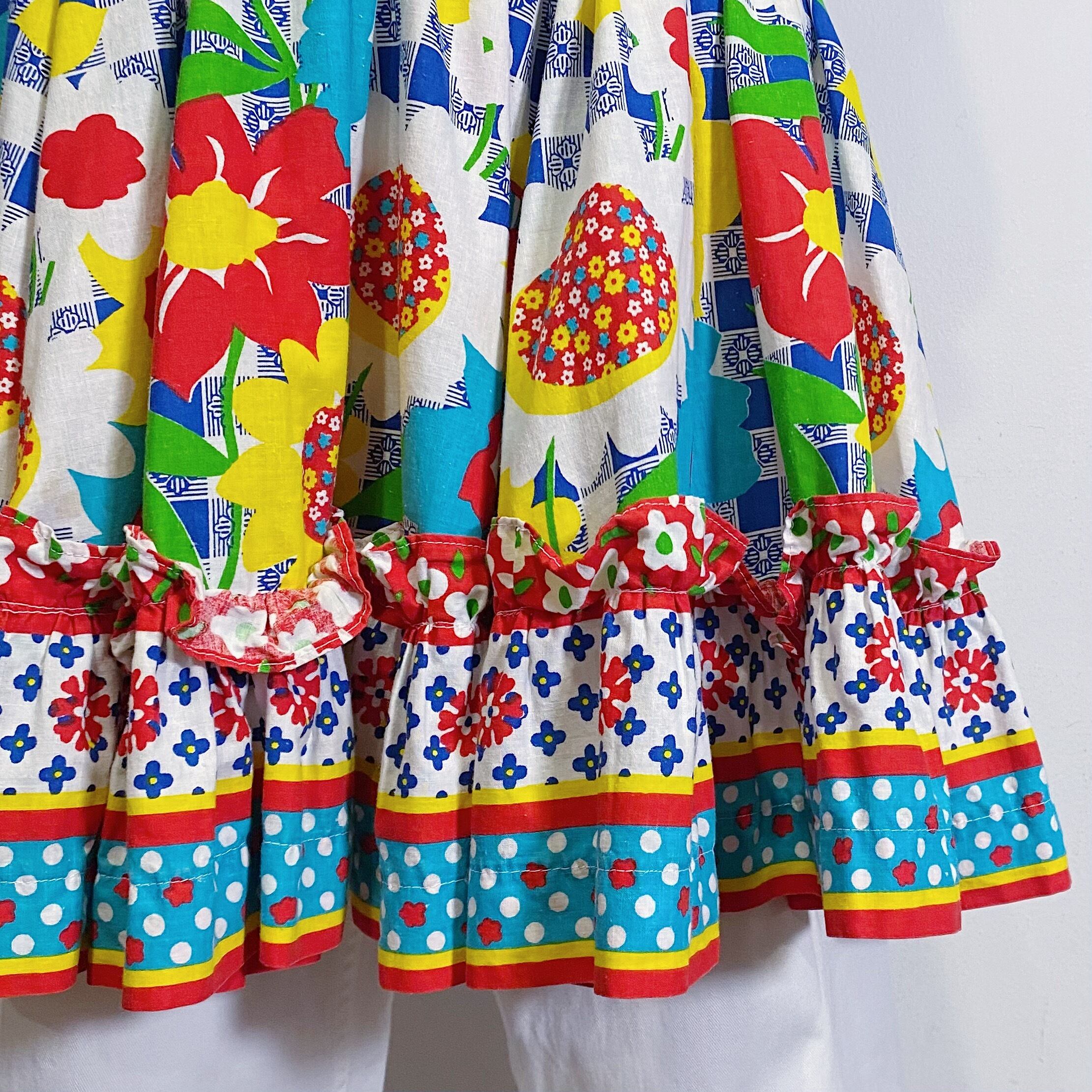 花柄にギンガムチェックの色合いがとってもハッピーな60~70年代のワンピースです。