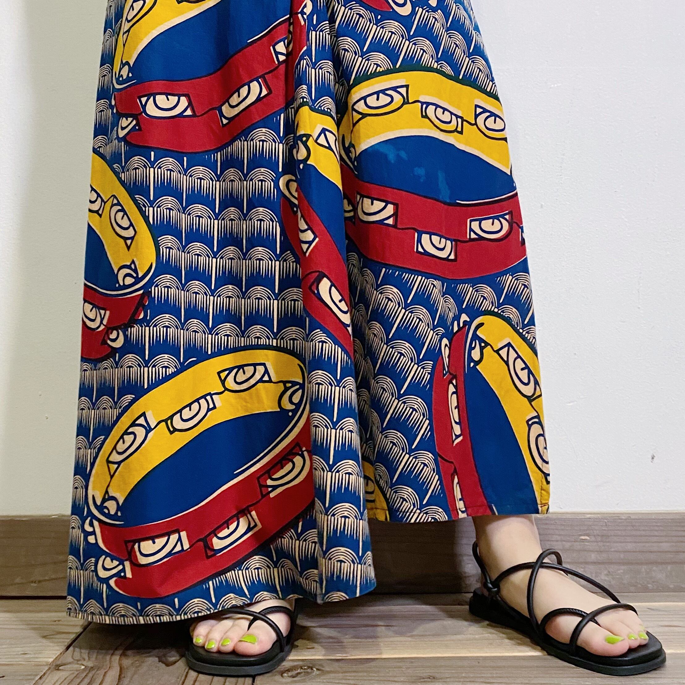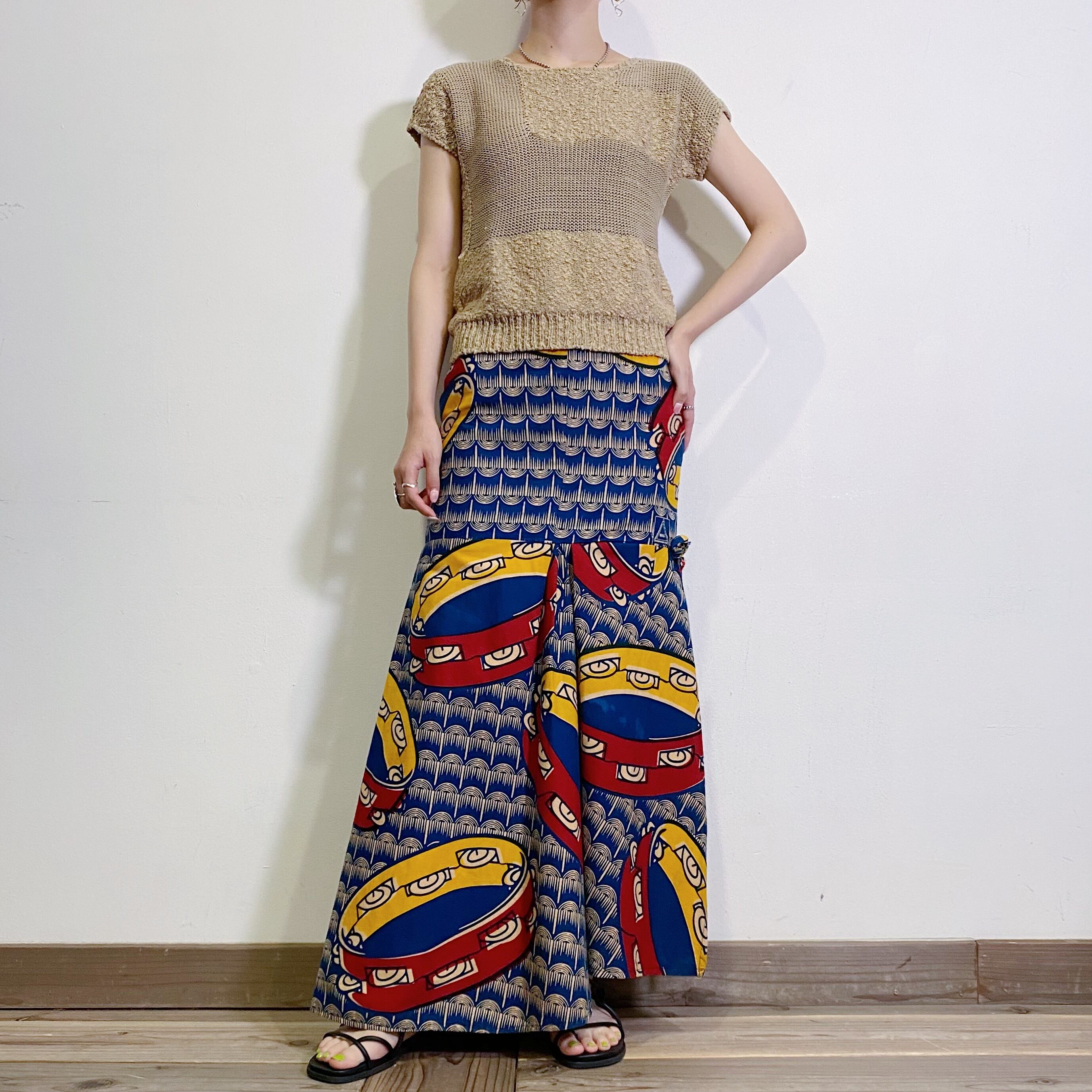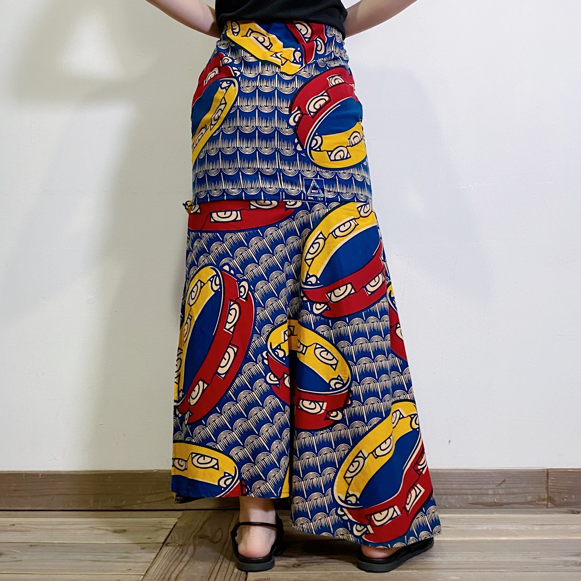 アフリカンバティックらしいユニークなデティールが魅力のロングスカートです。