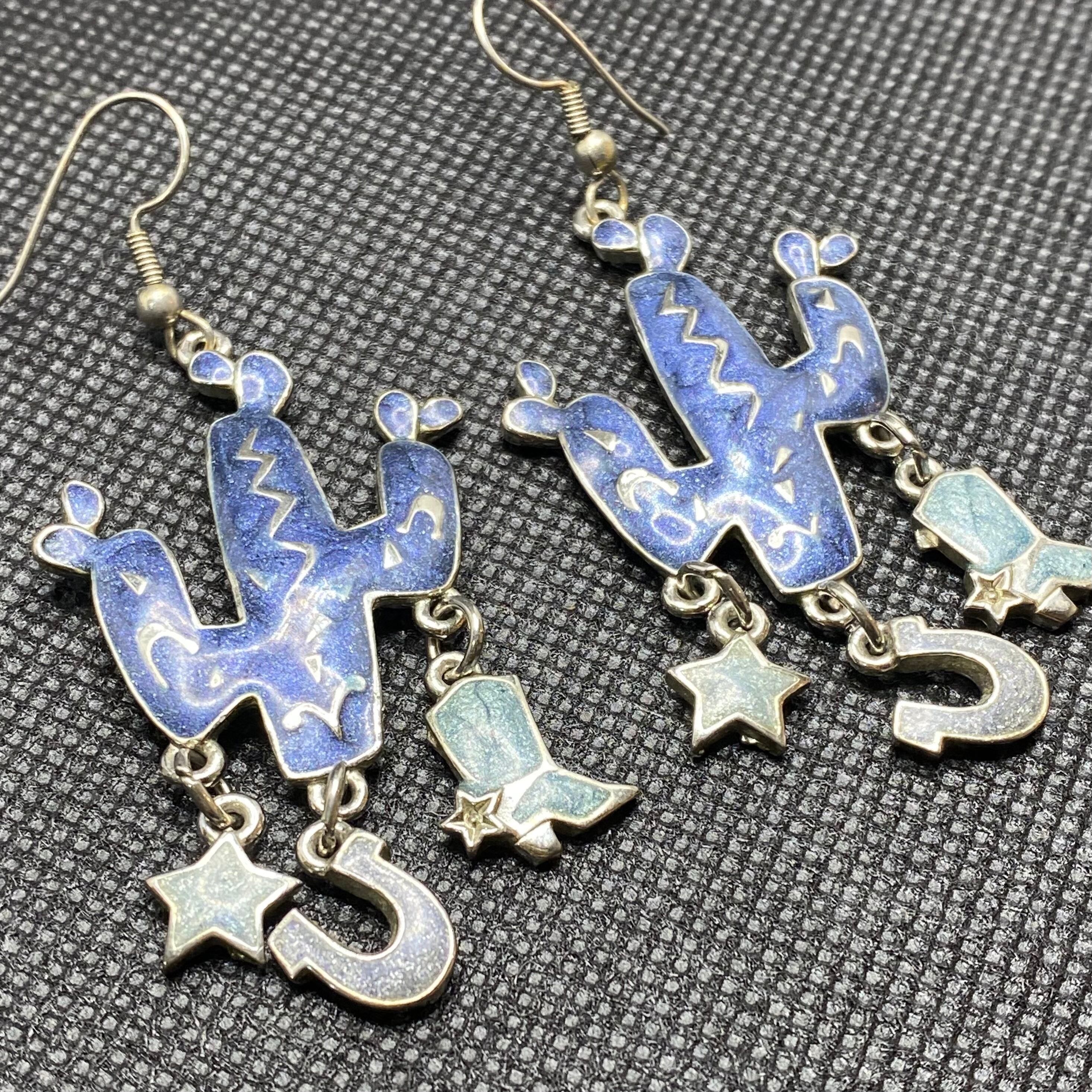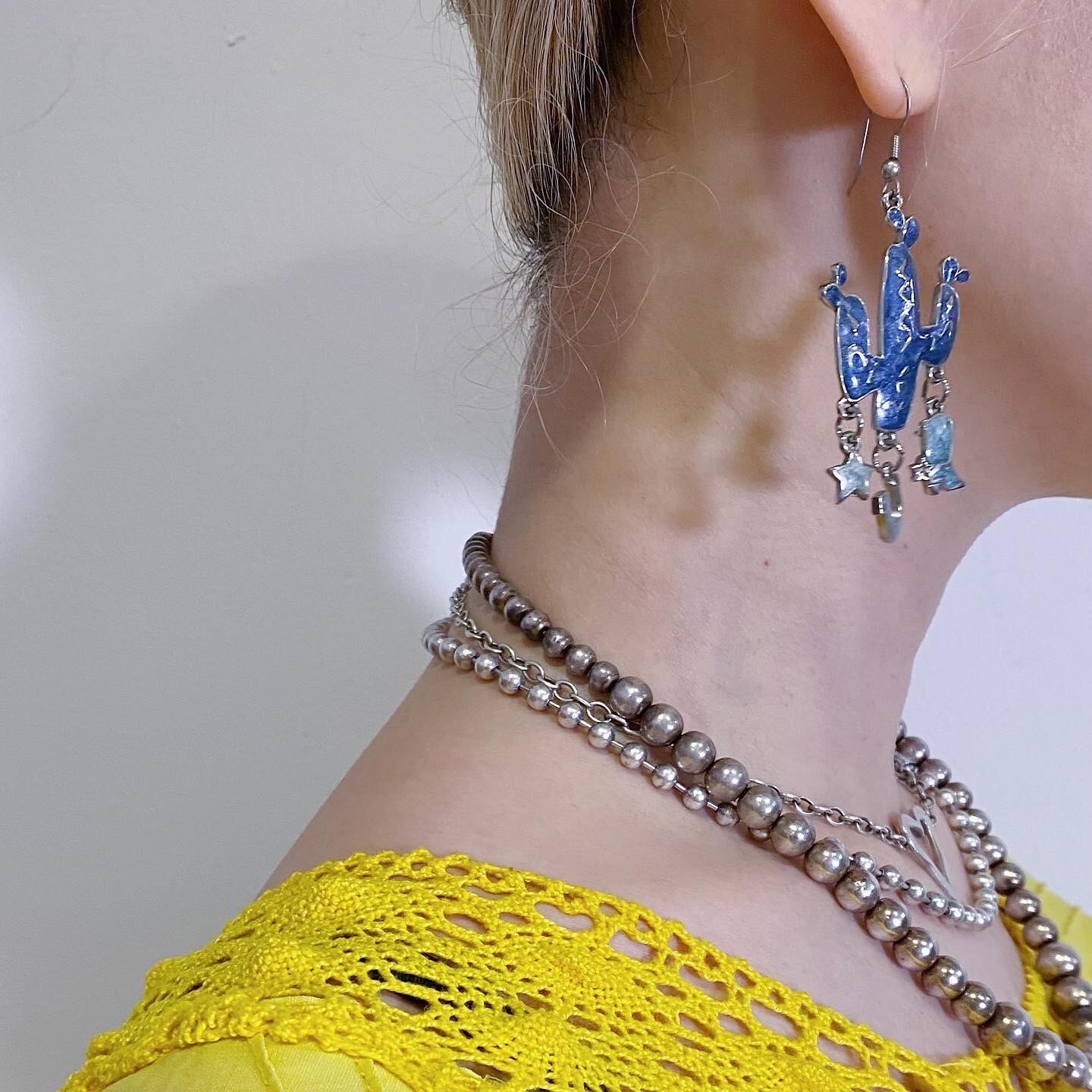 ブルーのサボテンモチーフが可愛いヴィンテージピアスです。