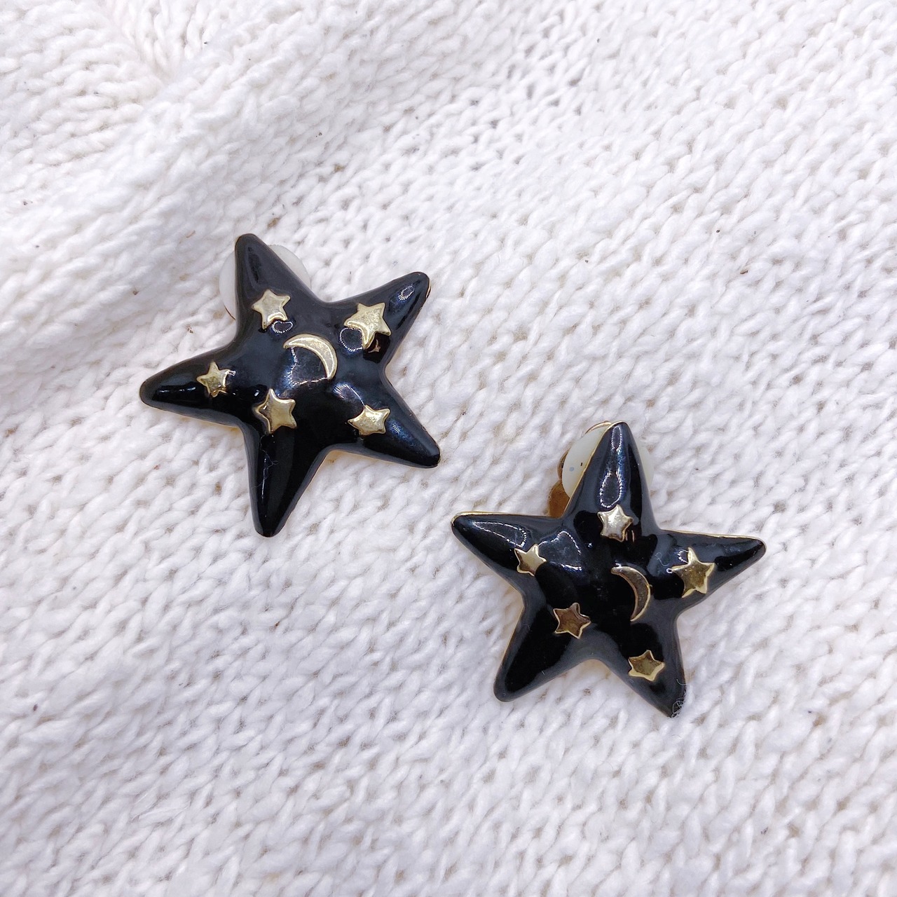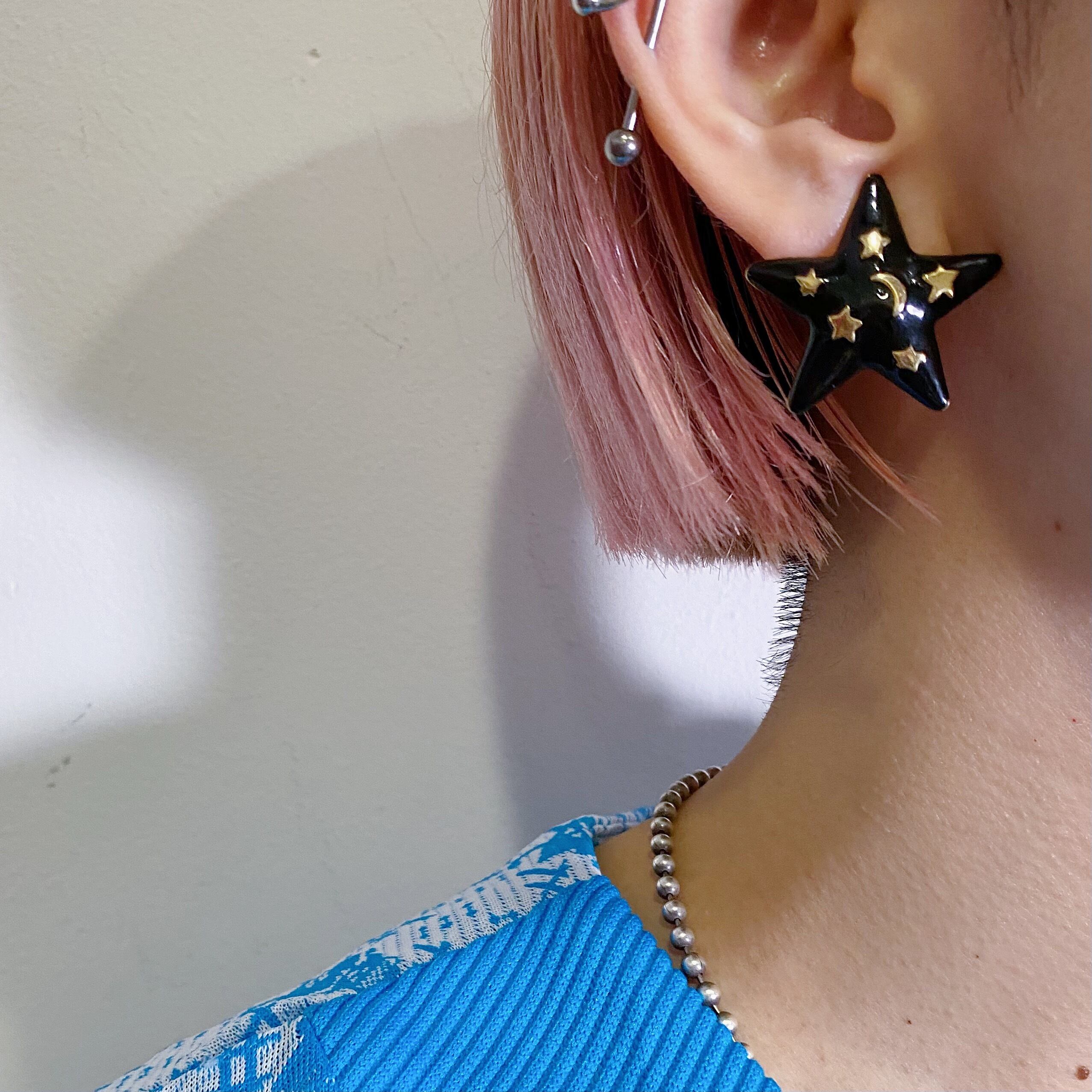 黒の樹脂の星の中にはさらにメタルの星や月があって、とてもキュートなデザイン。
