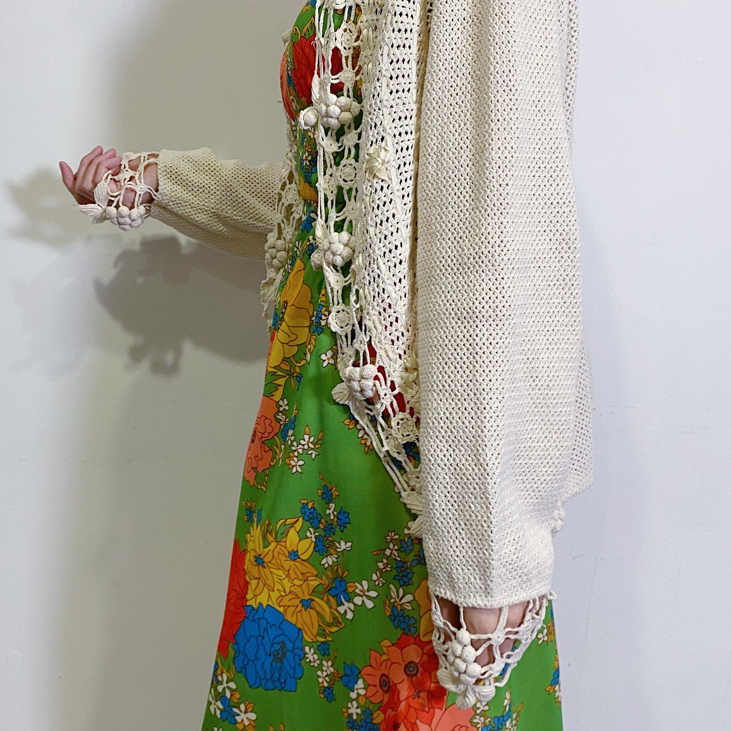 Grape motif crochet knit cardigan