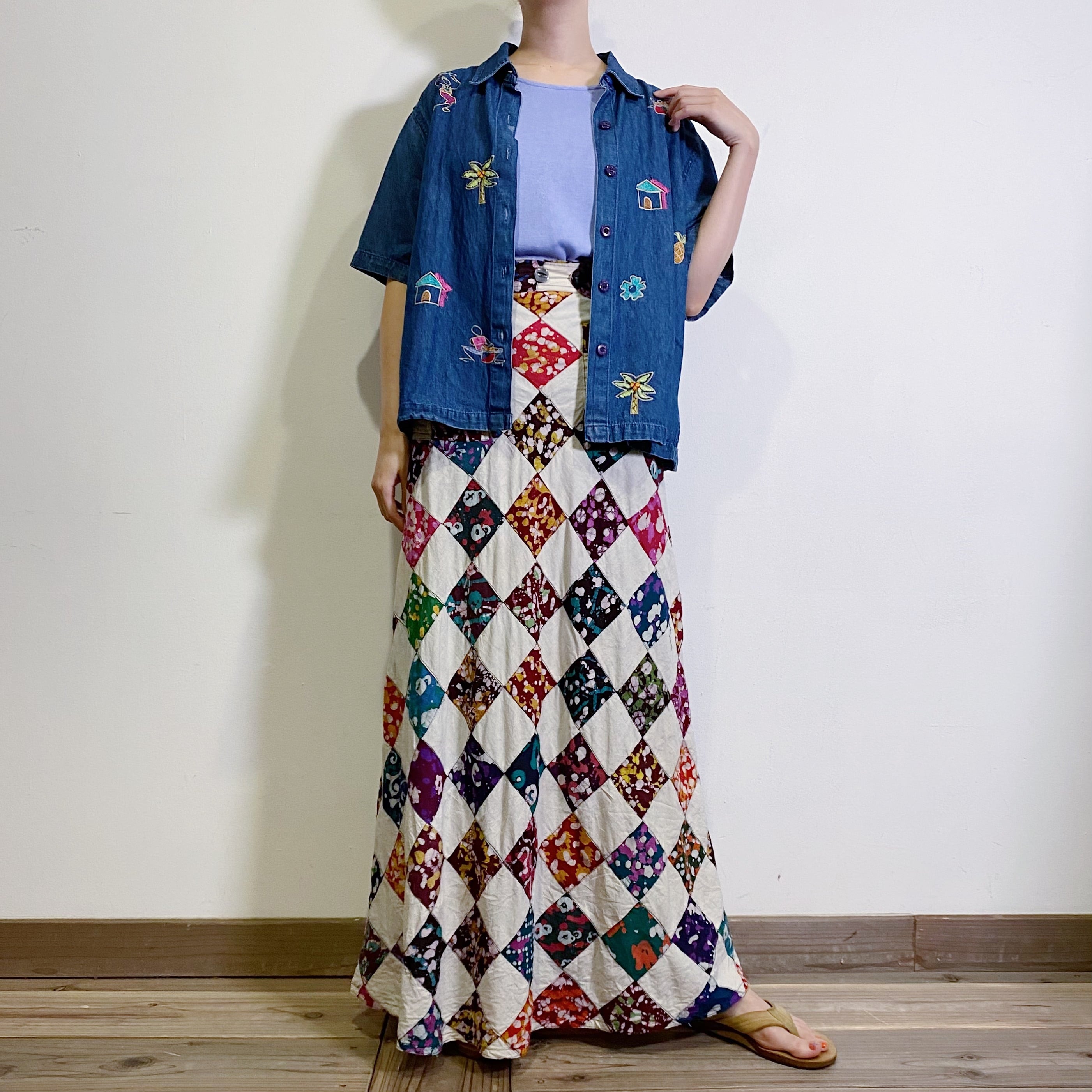 70s patchwork long skirt