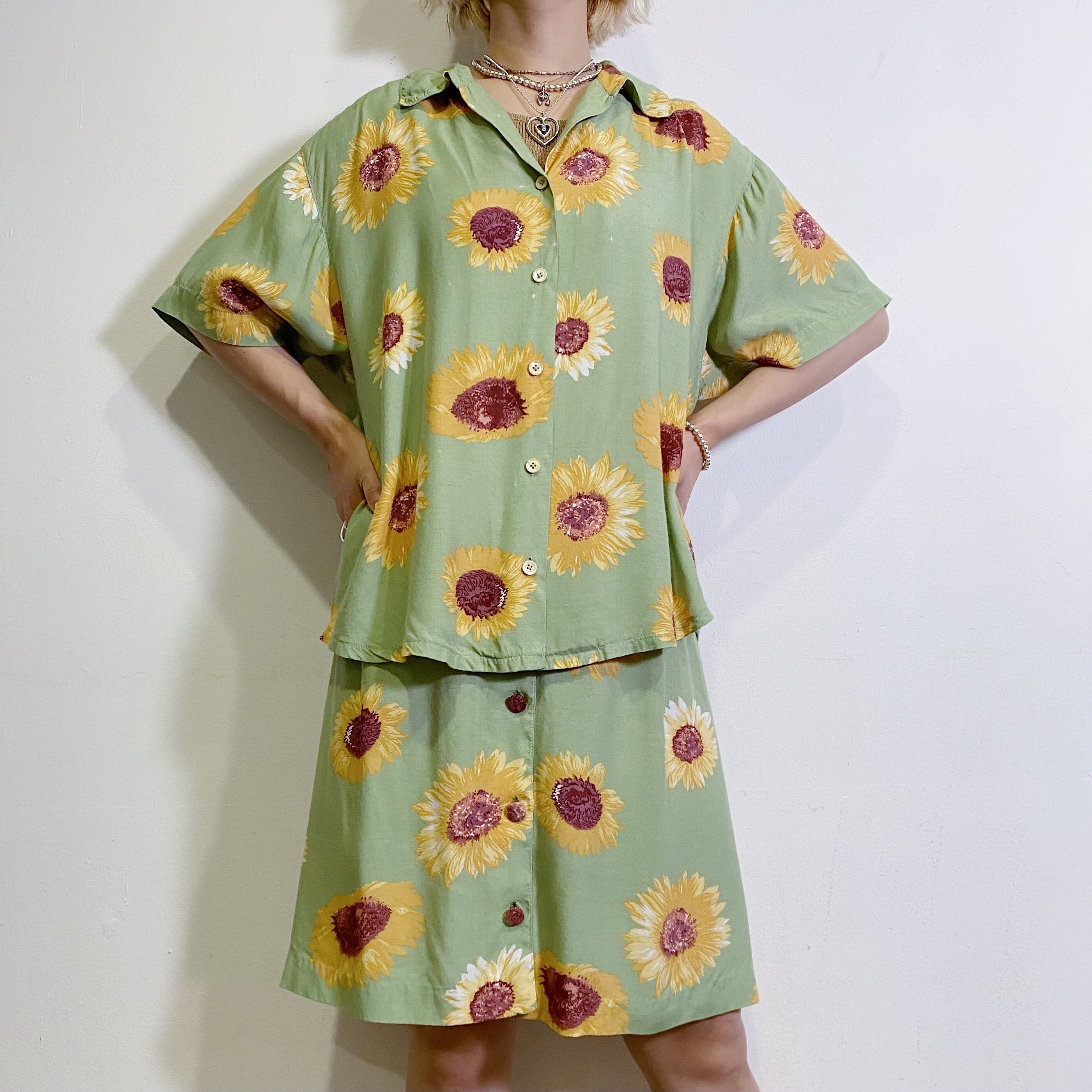 手書きタッチのひまわり柄が可愛い、90年代のセットアップです。