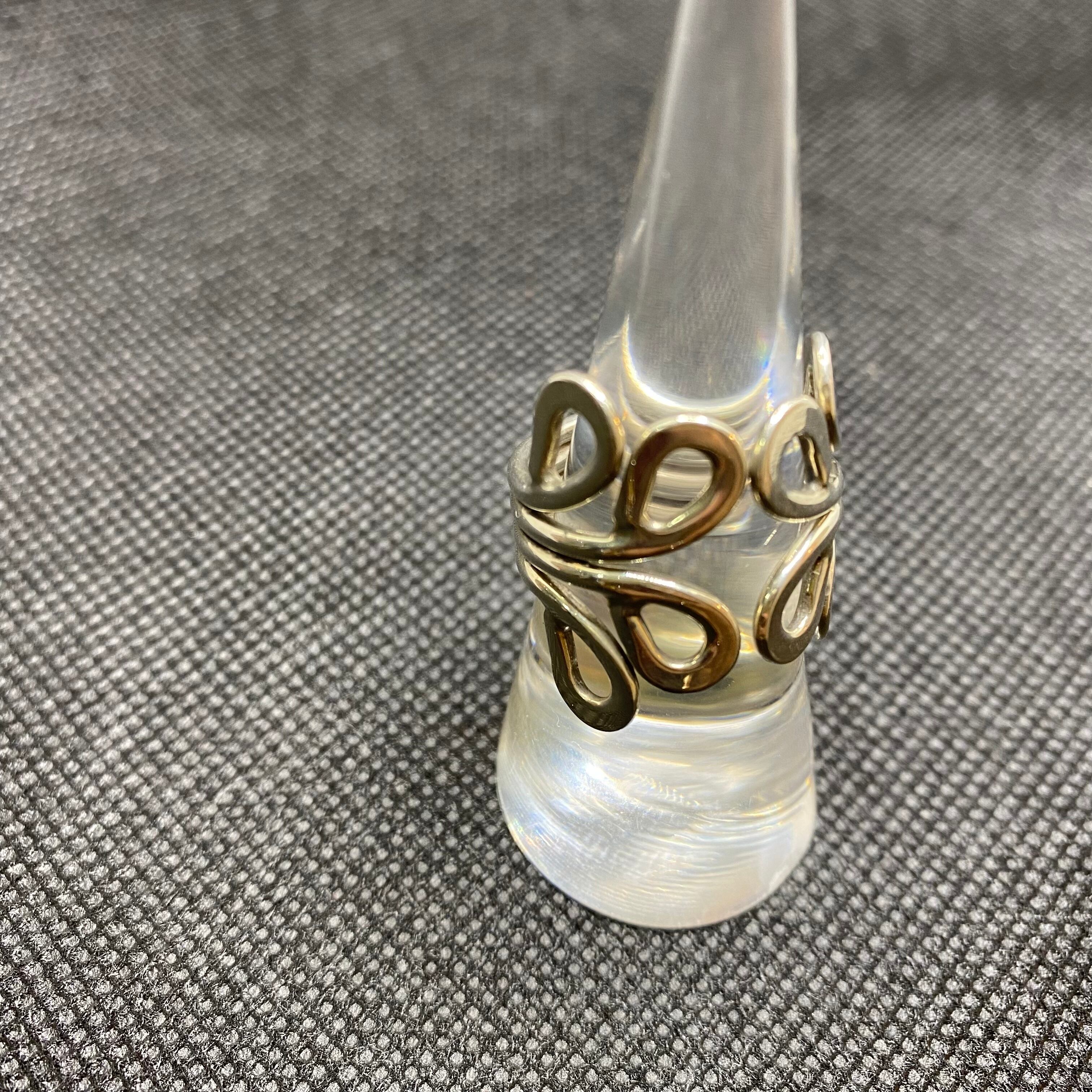 大き目なモチーフは肌が透ける透かしデザインも魅力で、リング幅もしっかりとあり存在感ある逸品。