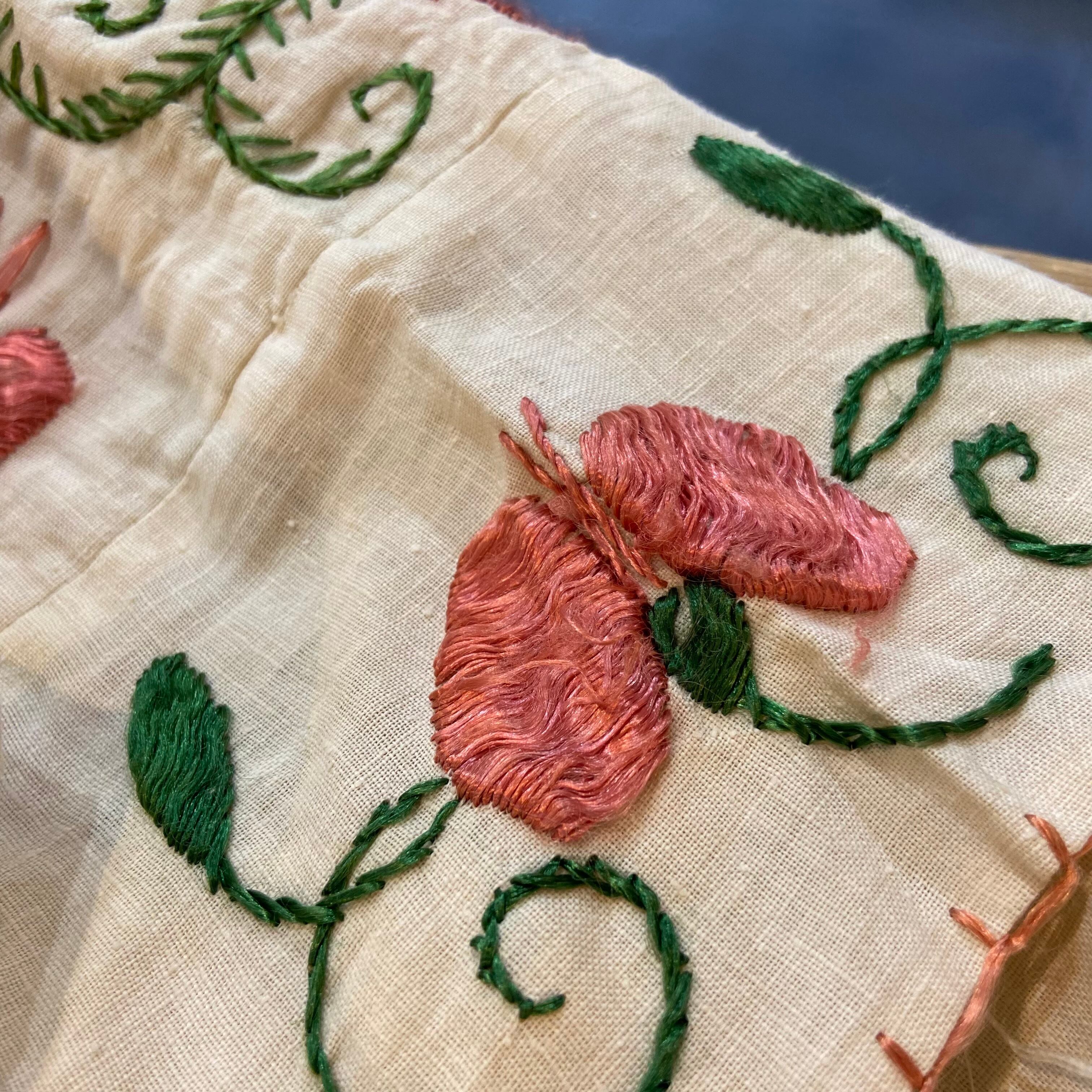 刺繍糸はシルク素材になっておりキラッと光る光沢感が素敵な、レアでスペシャルな一枚。
