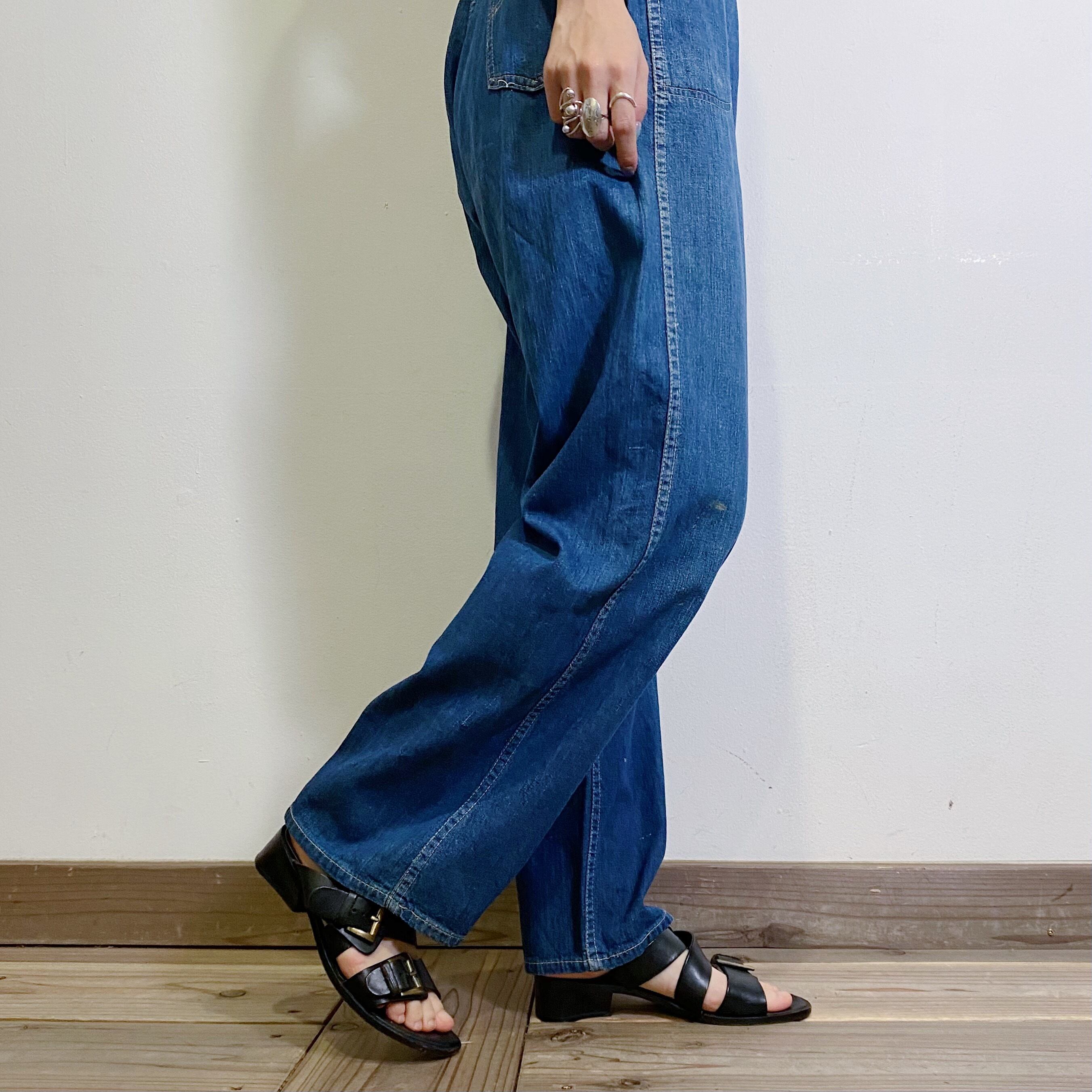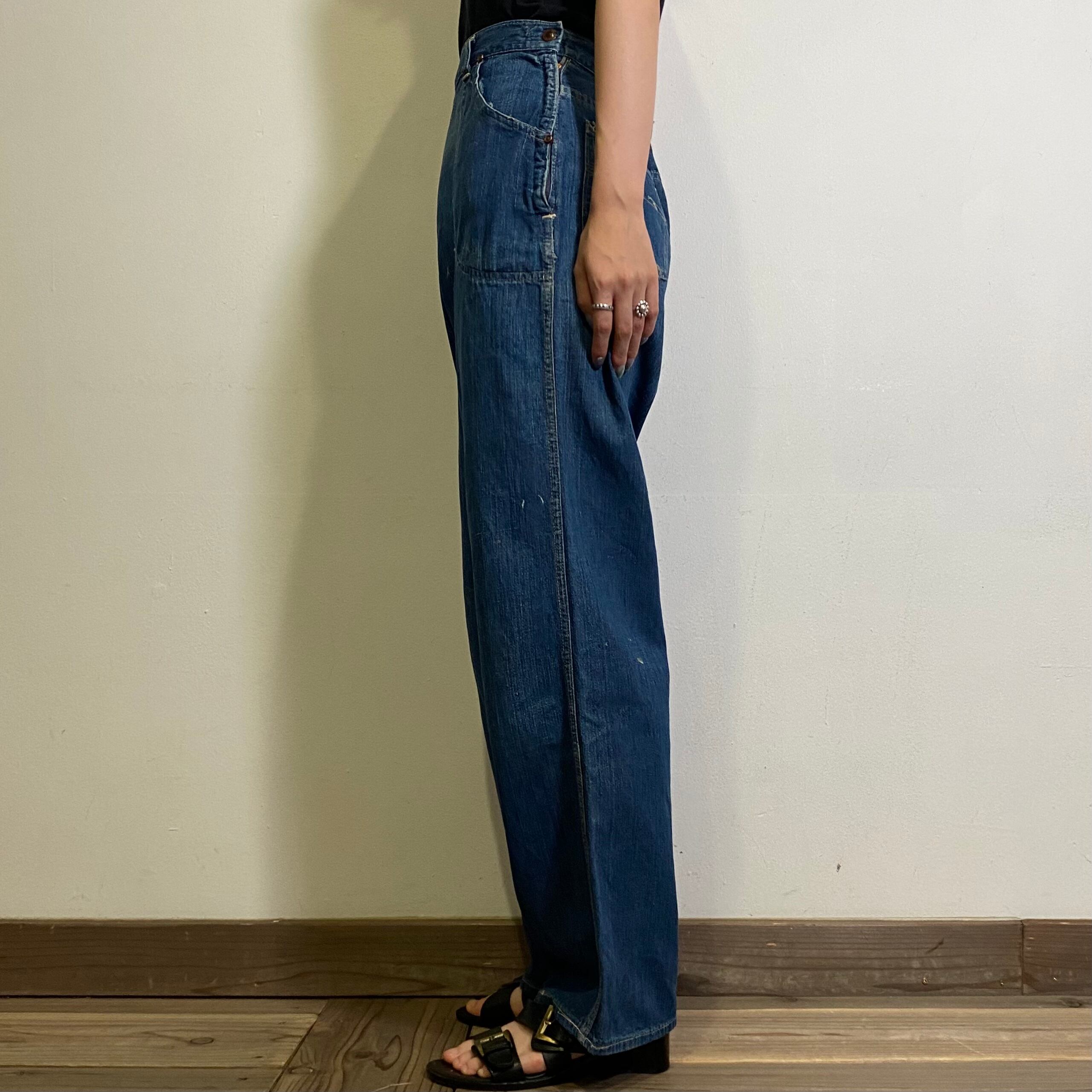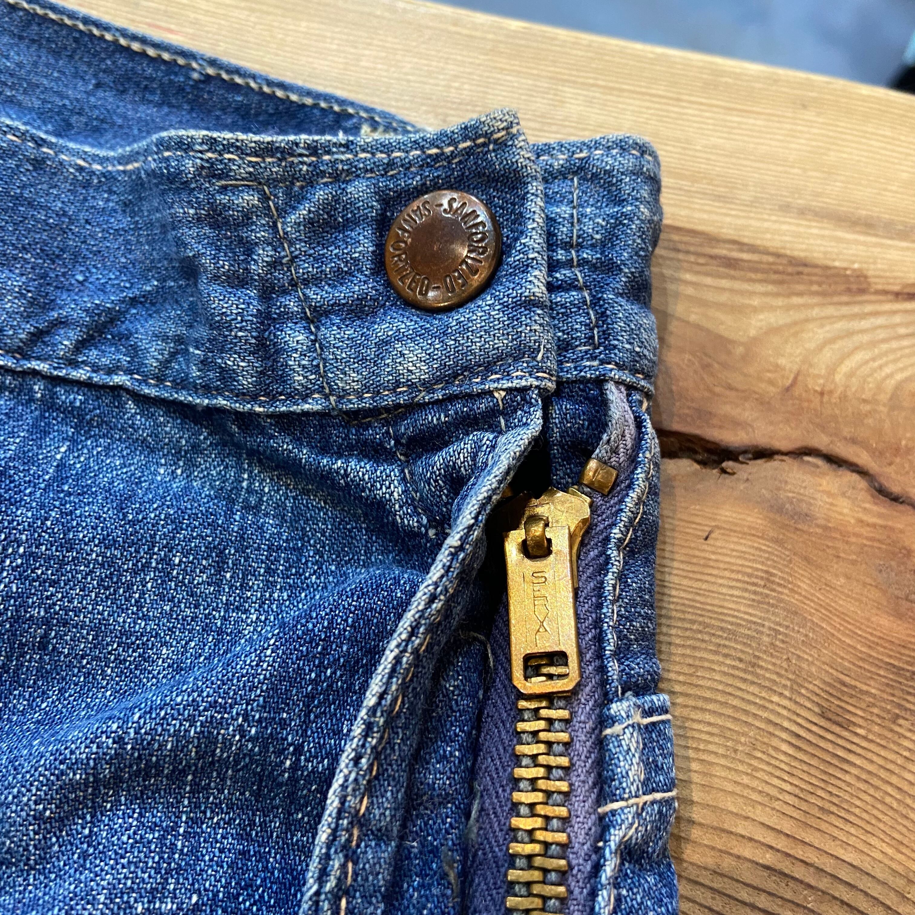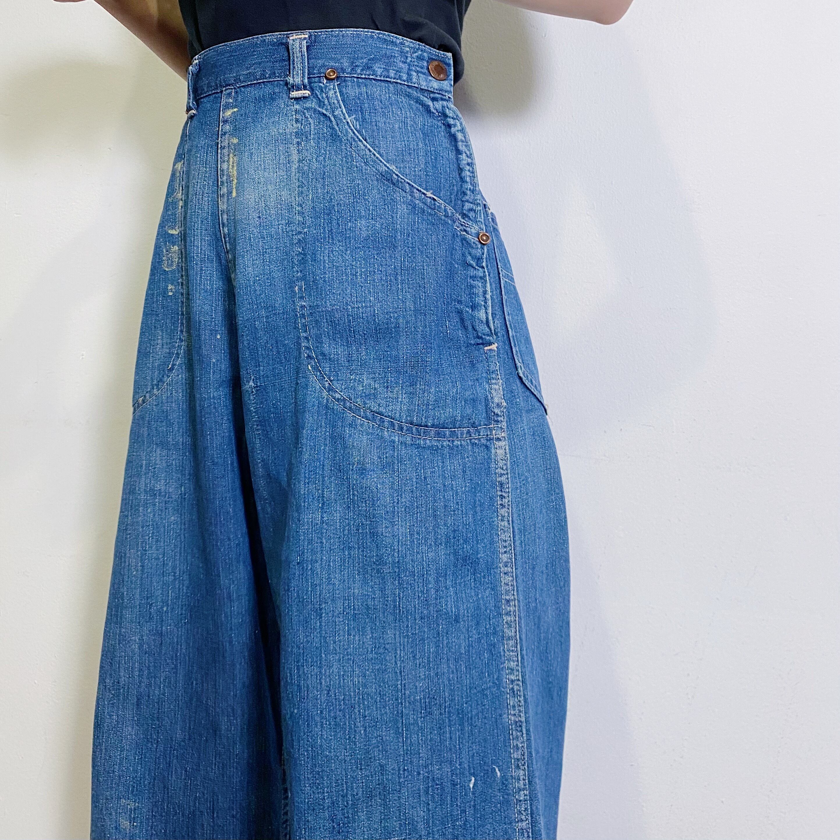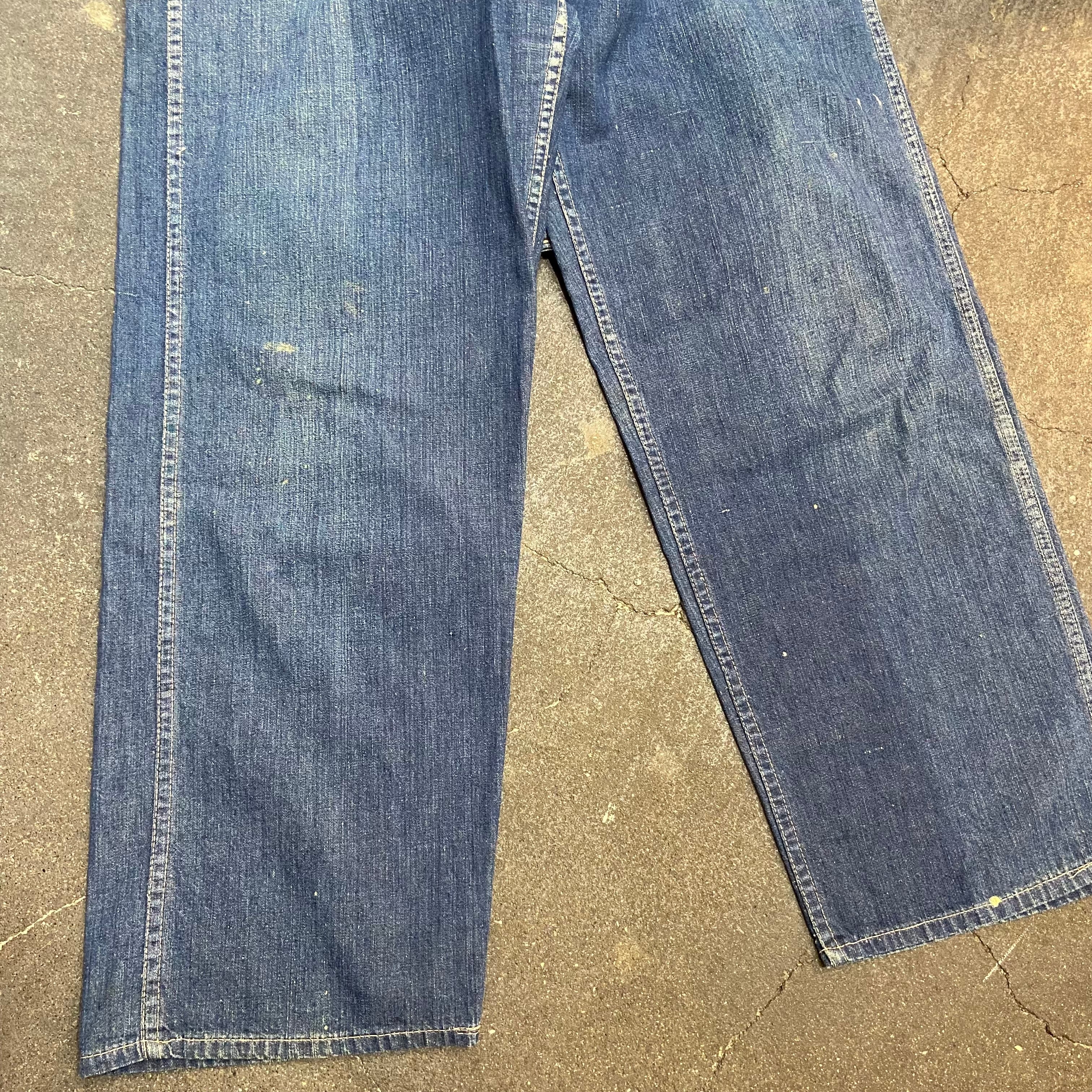 深いインディゴの色にペンキ跡や色落ち具合がとても雰囲気たっぷりな、40〜50年代のランチパンツです。