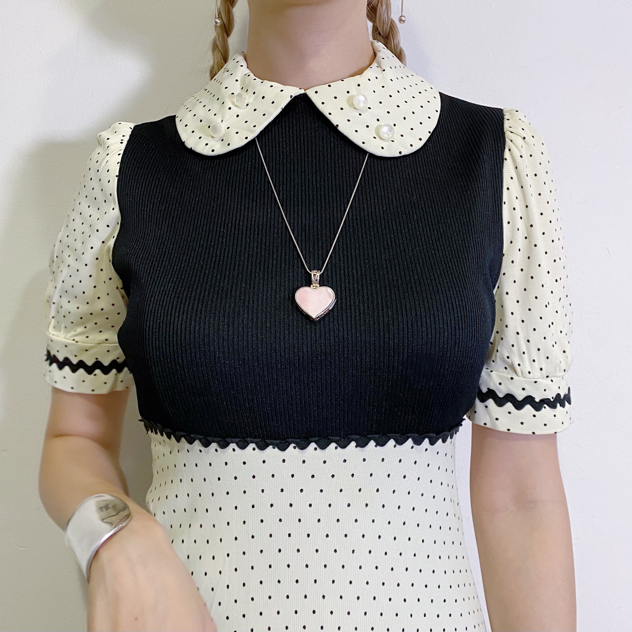 ピンクシェルの面とシルバー細工の透かしが素敵な面と、裏返すとまったく印象が違うネックレスとして付けれてお得です。