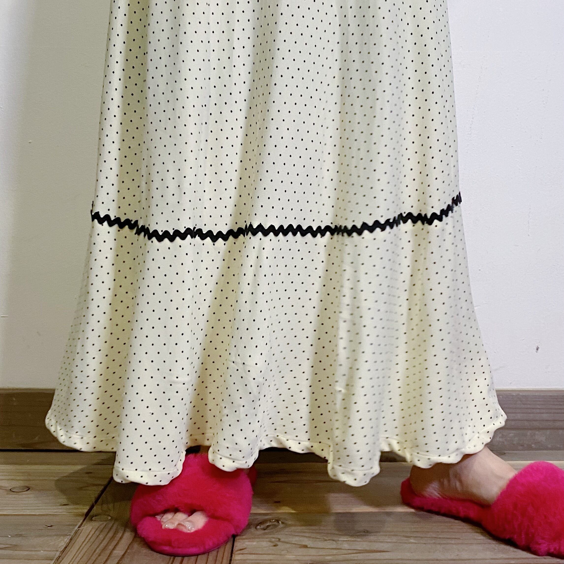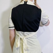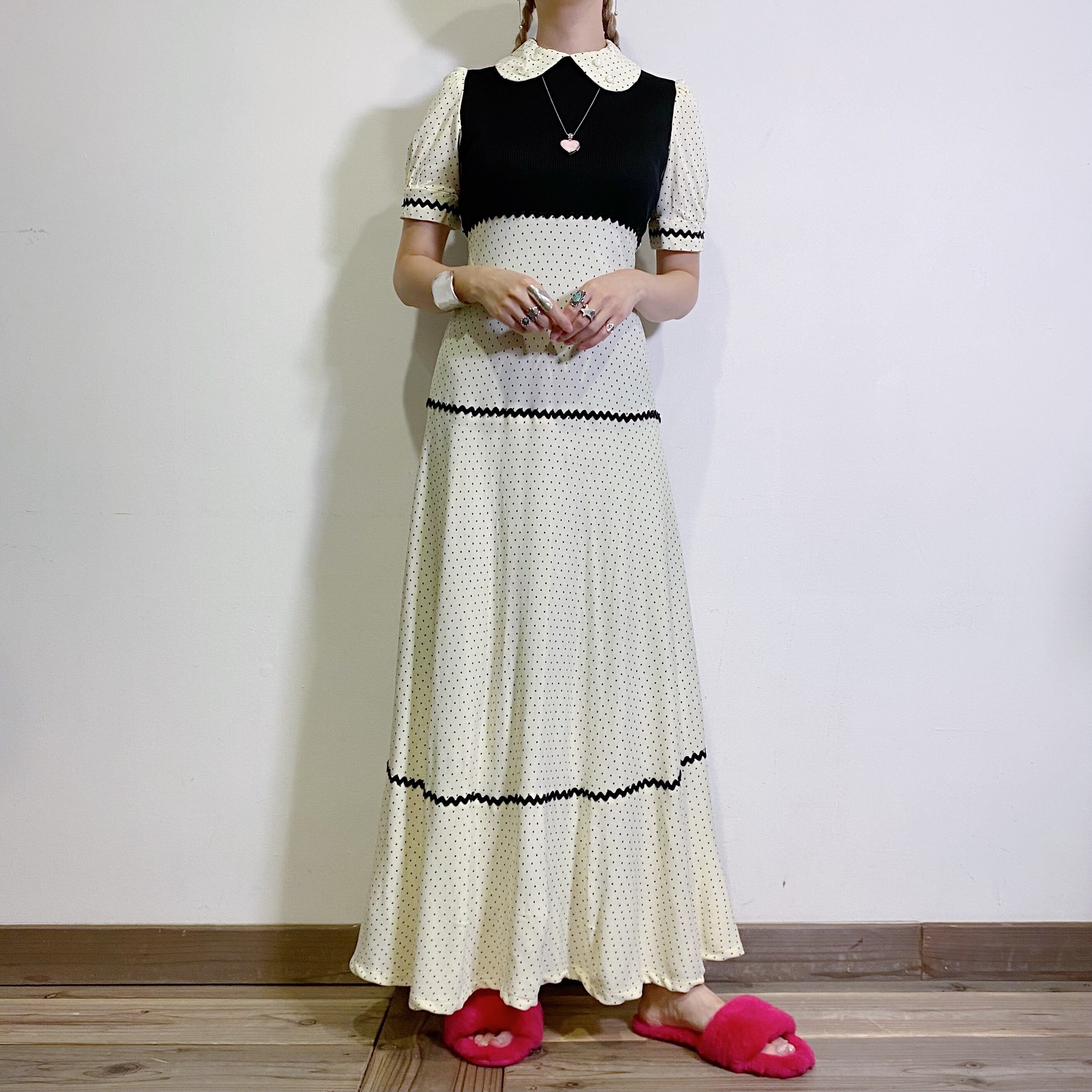 大きな襟にモノトーンカラーのピンドットが可愛い、70年代ワンピースです。