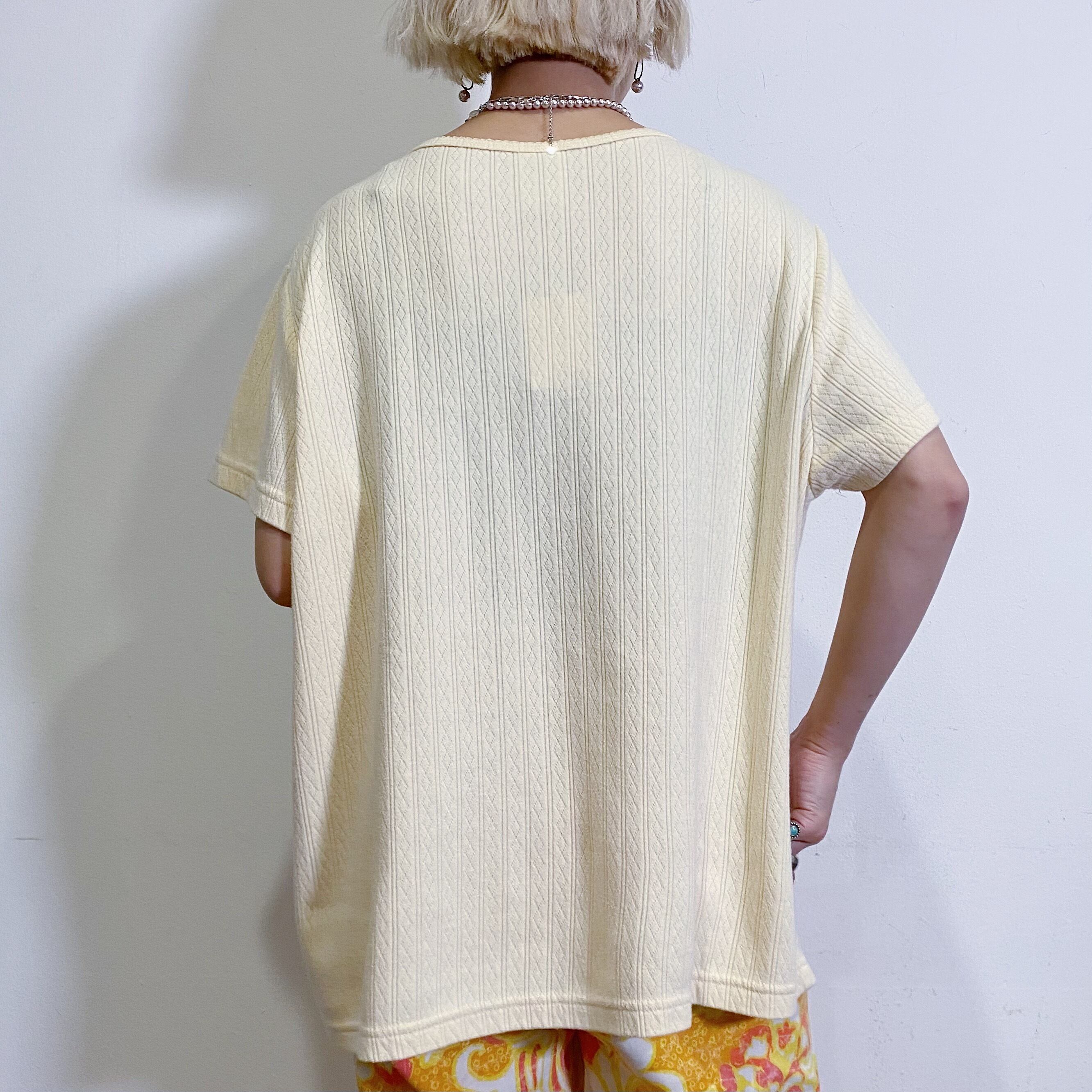 クリーム色にヘンリーネックがポイントになった、半袖カットソーです。