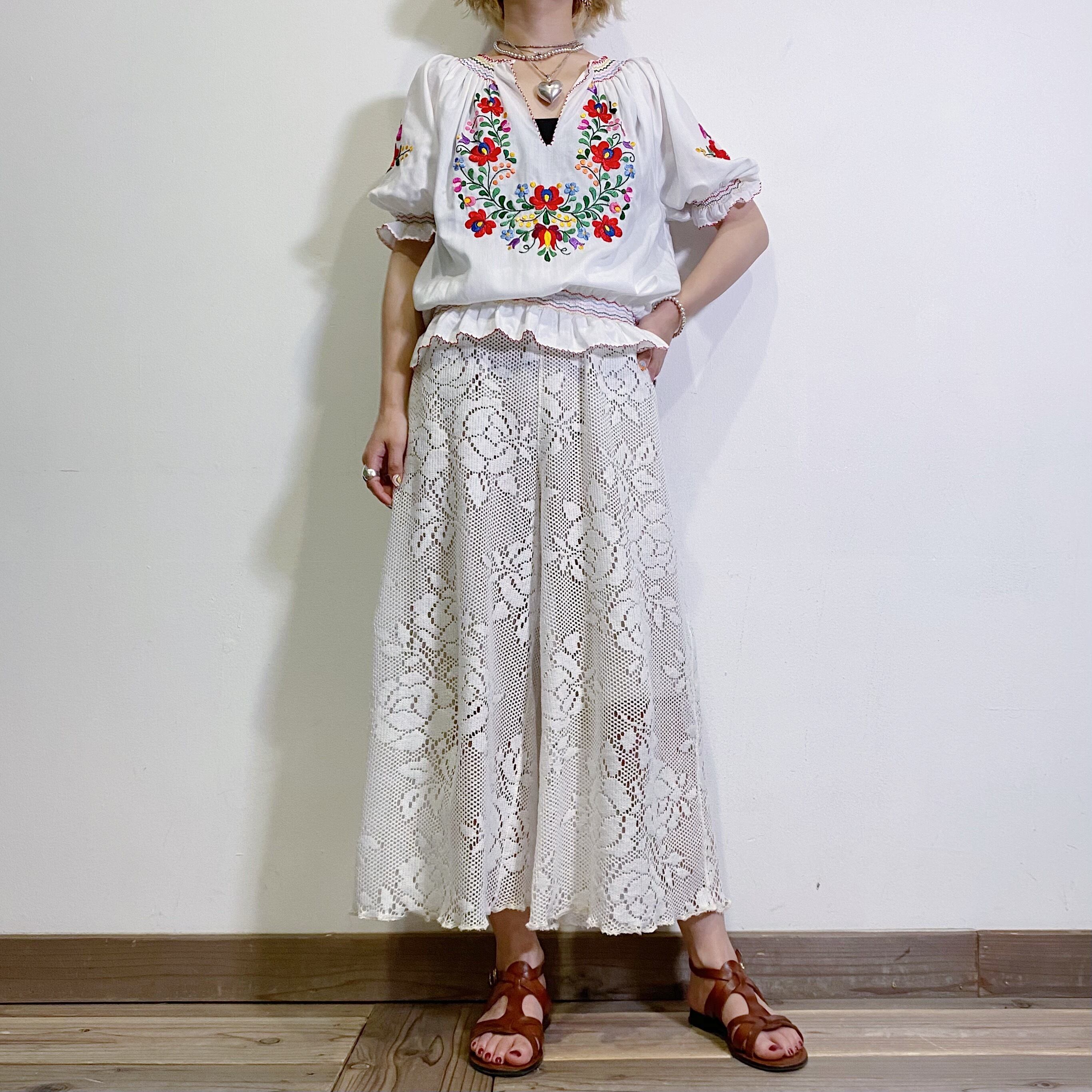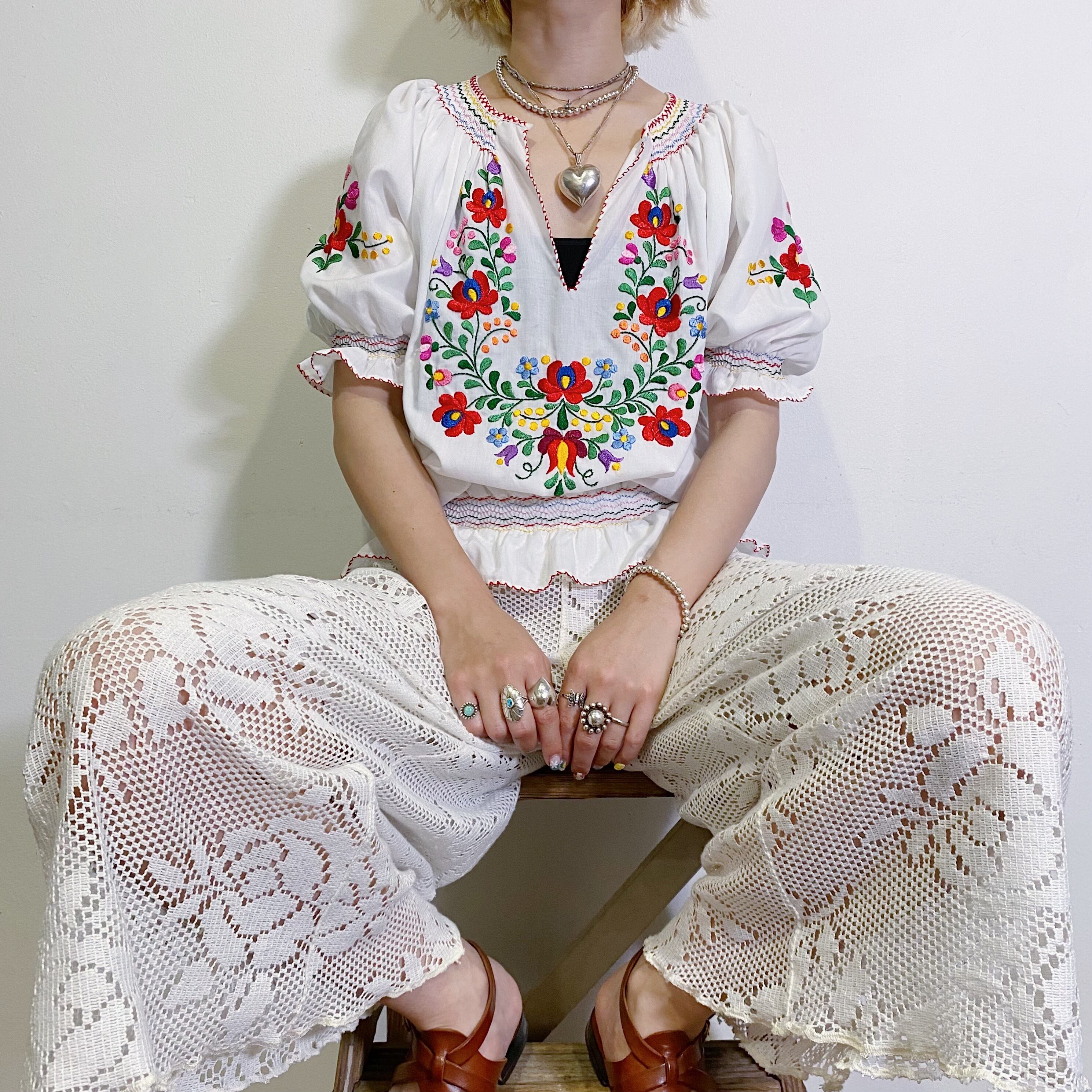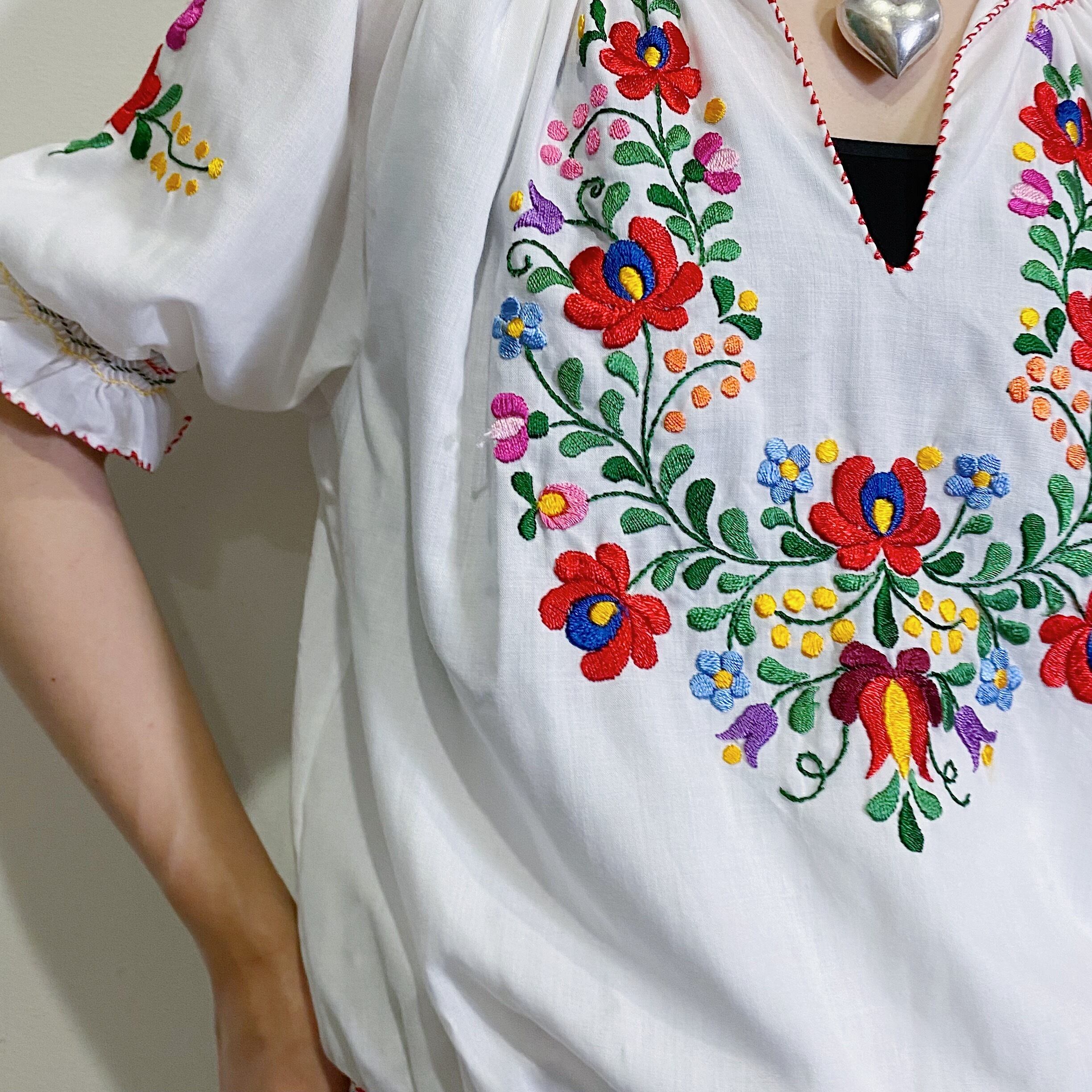 カラフルなお花のカロチャ刺繍が可愛い、ハンガリーのトップスです。