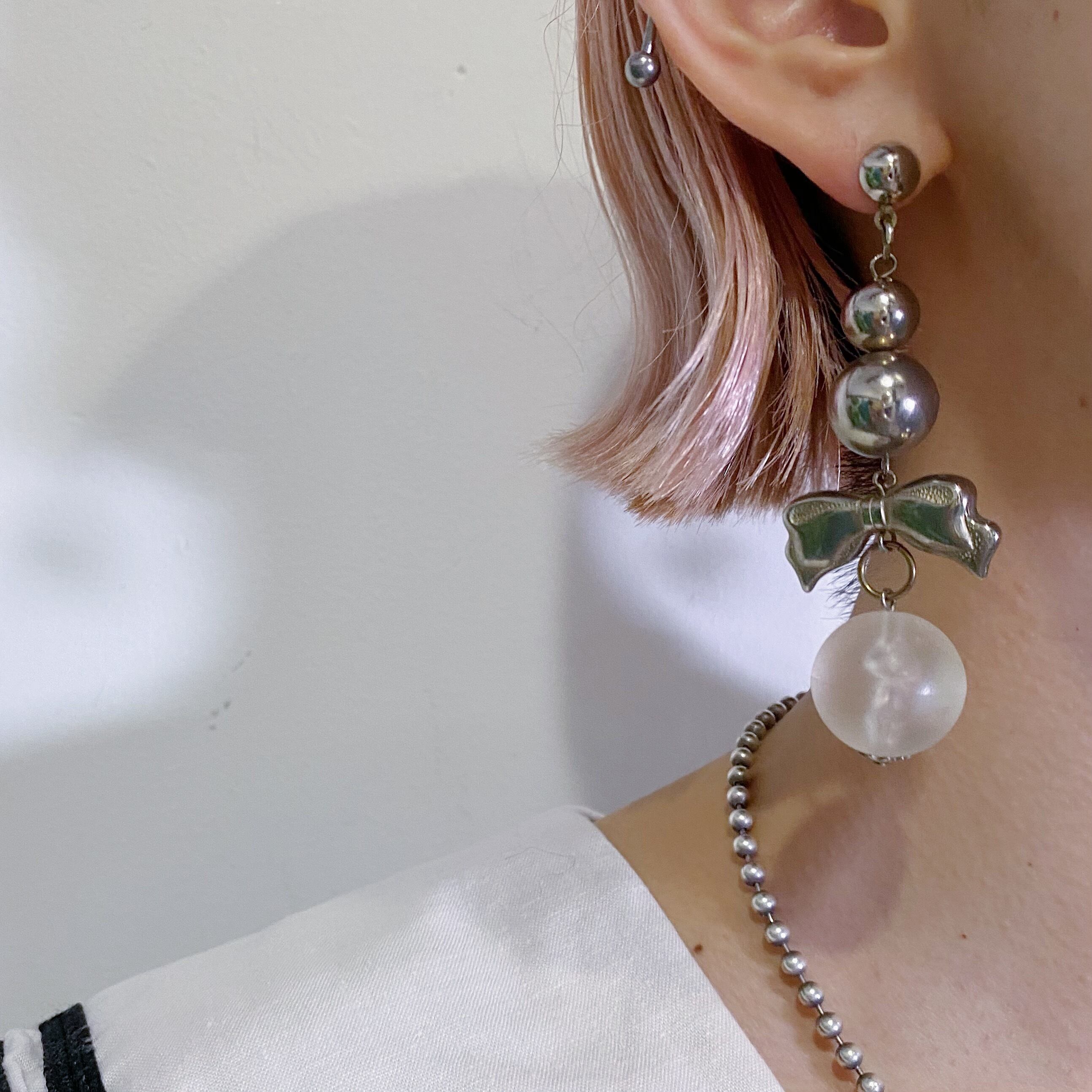 コロンとしたボールとリボンの組み合わせがキュートな、80年代のピアスです。