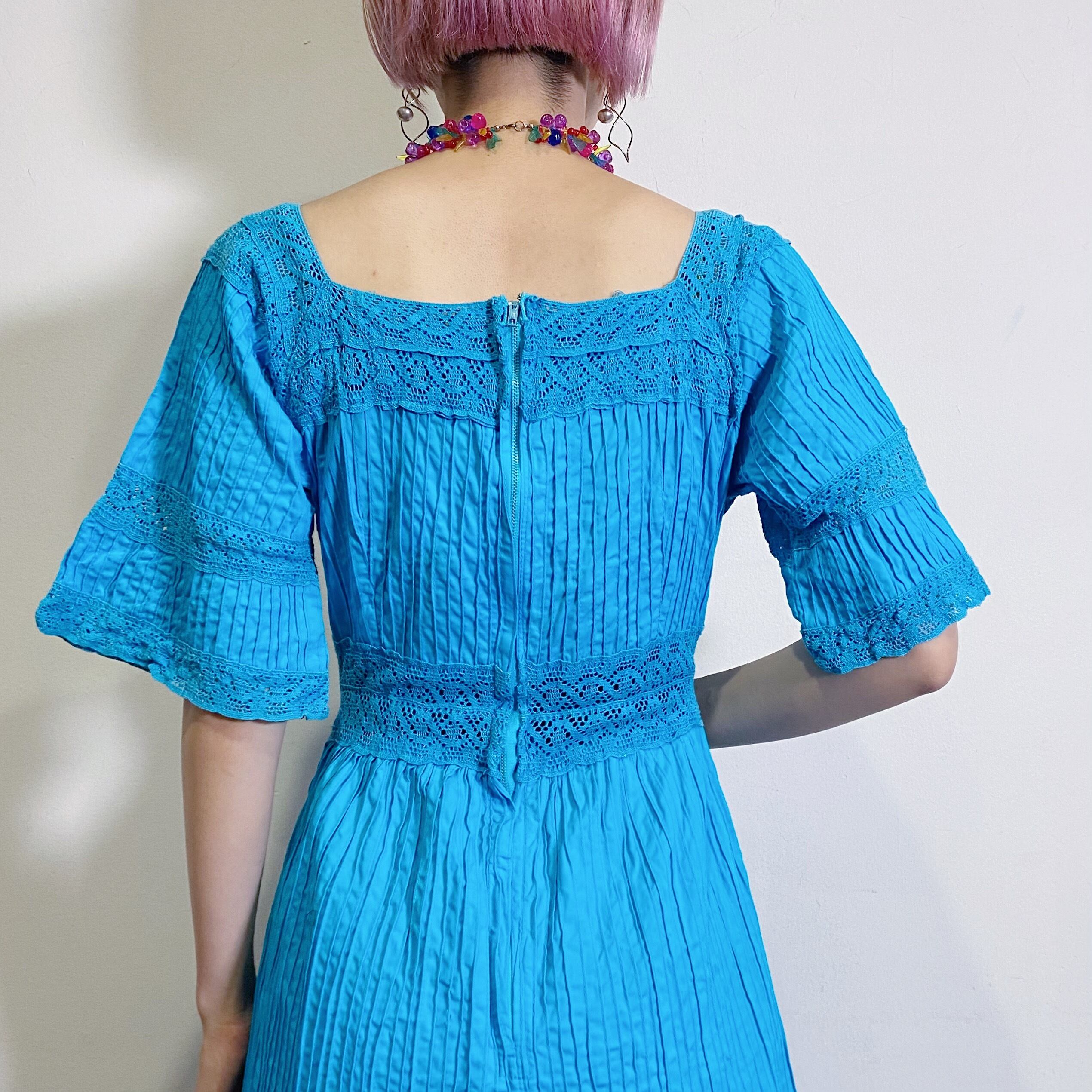 鮮やかなターコイズカラーが目を惹く、60年代のメキシカンドレスです。
