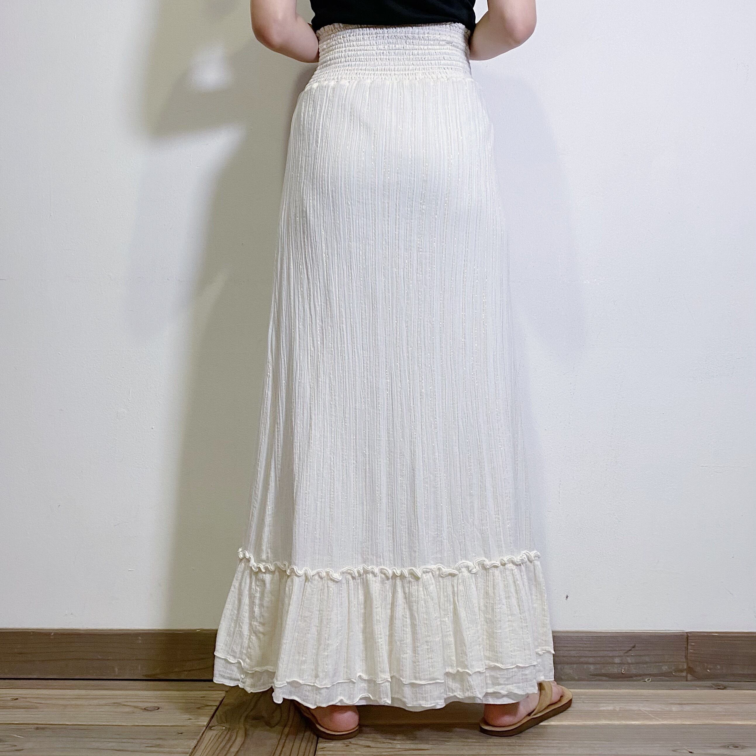 どんなアイテムともマッチしてくれるホワイトスカートは当店でも人気の、お探しの方も多いアイテムです。