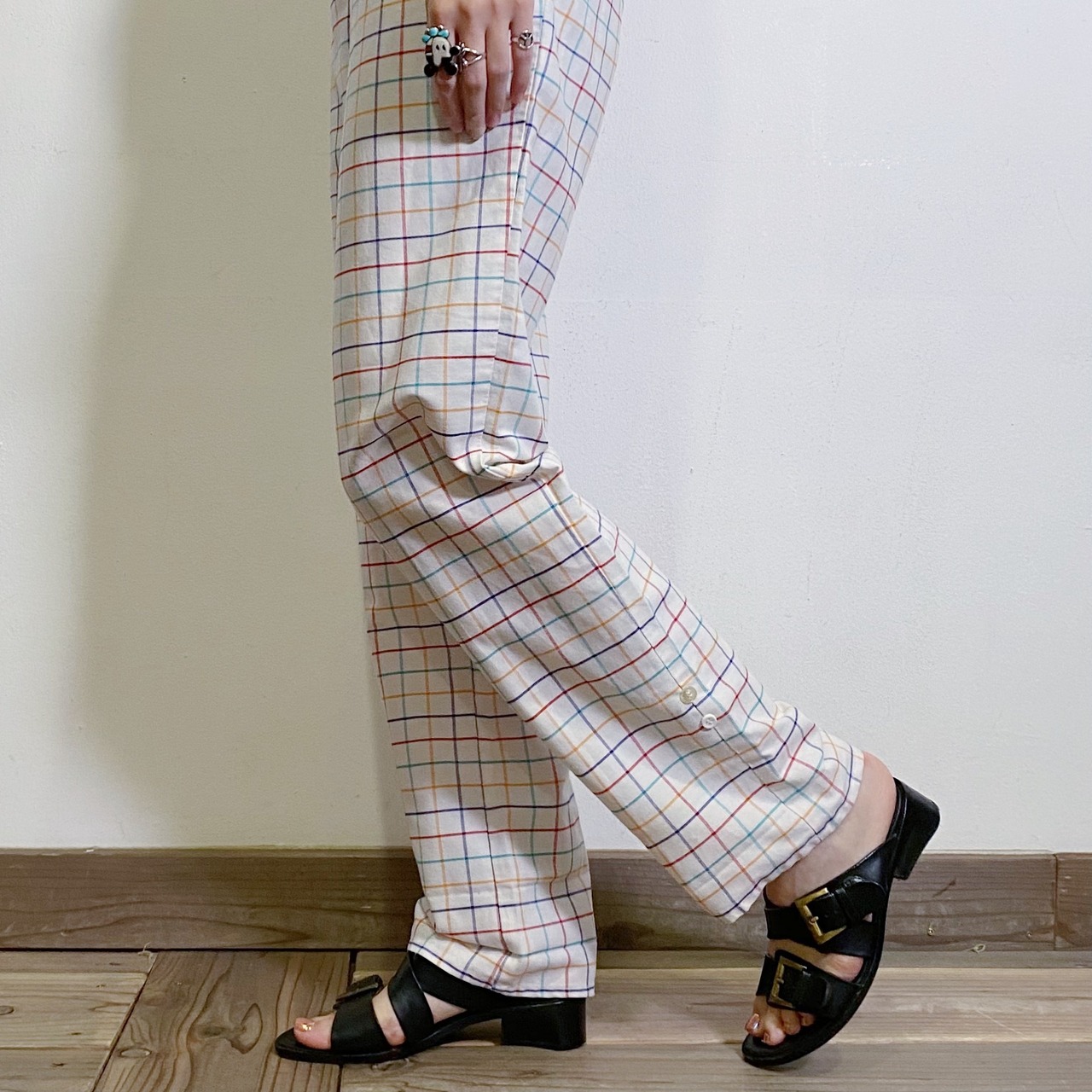 80s white and colorful plaid 2way pants