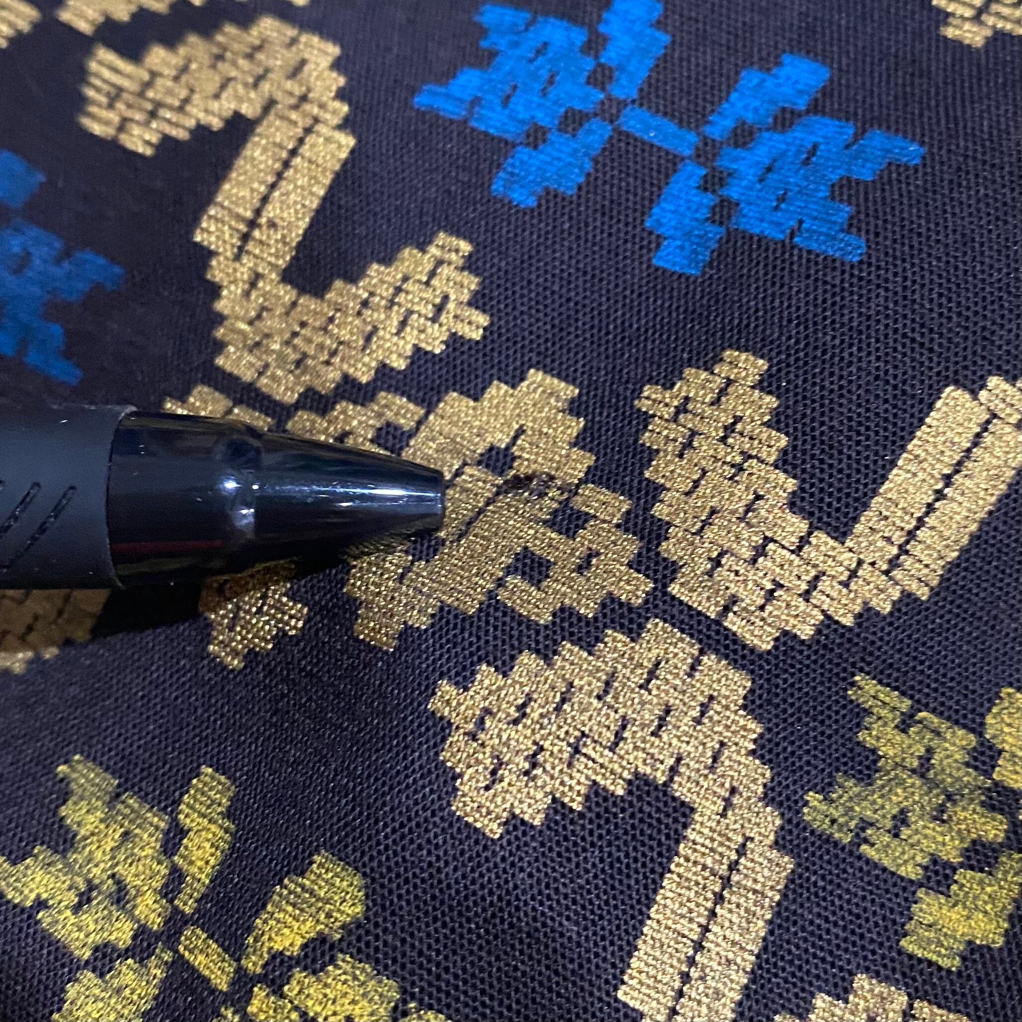 またうっすらと日焼けたした跡や軽いダメージ、お直しの跡などが見受けられます。いずれも柄に紛れてあまり気にならない程度かと思われます。