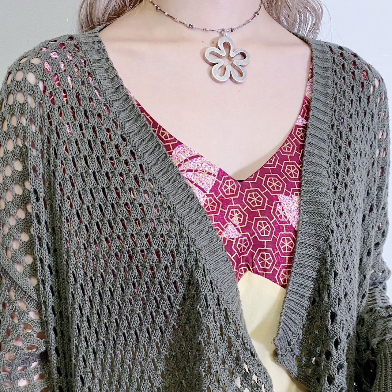 ゆるいローゲージ編みがかわいい、90年代のクロシェカーディガンです。