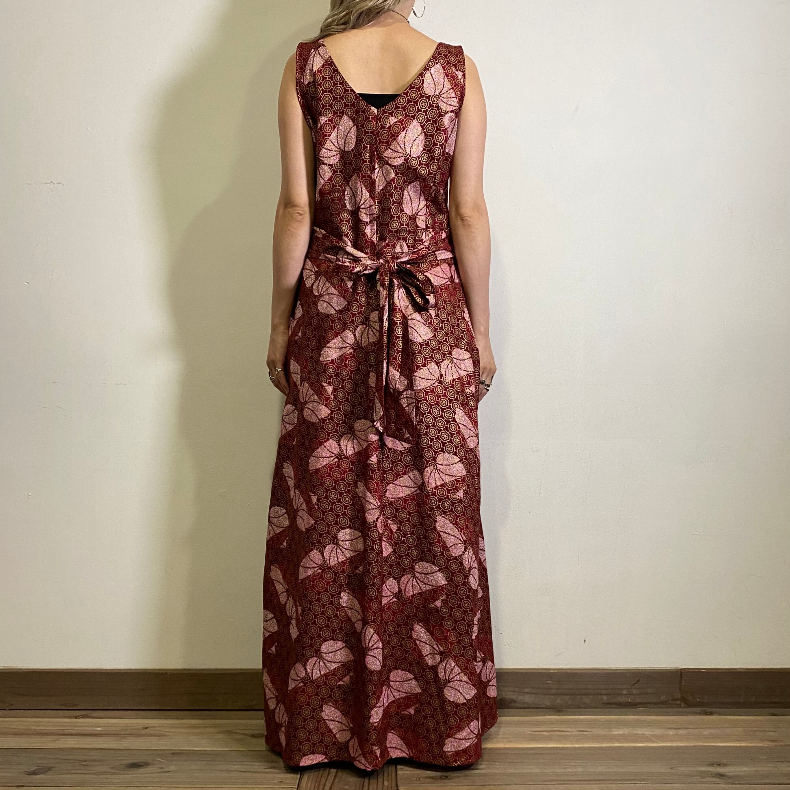 ワインレッドやピンクのエスニックな雰囲気が可愛いロングワンピースです。