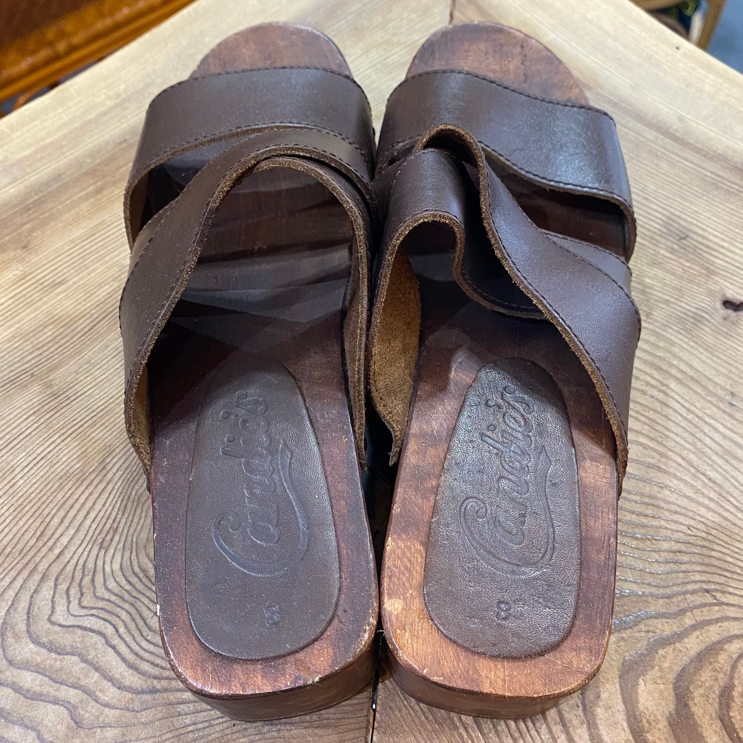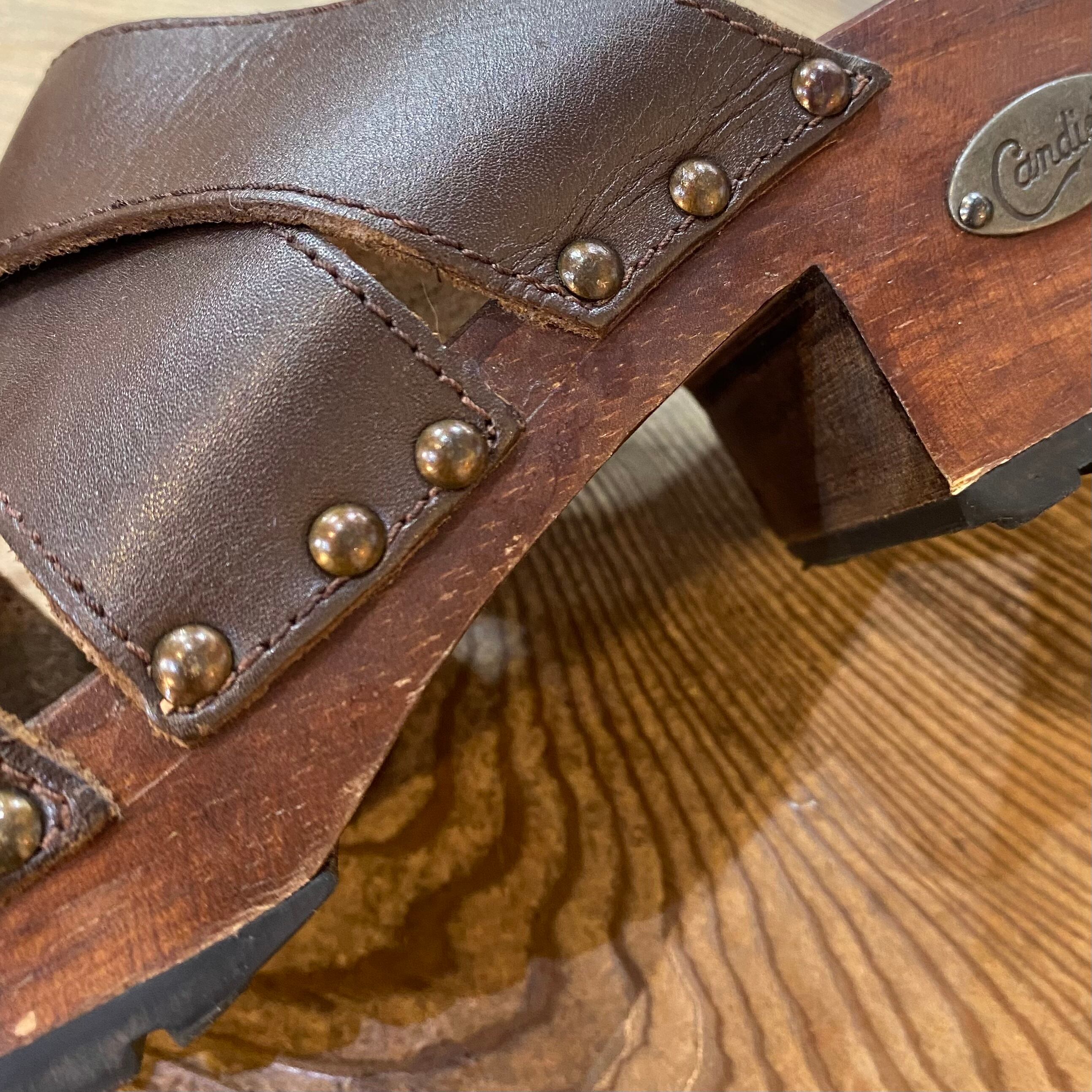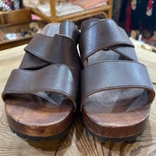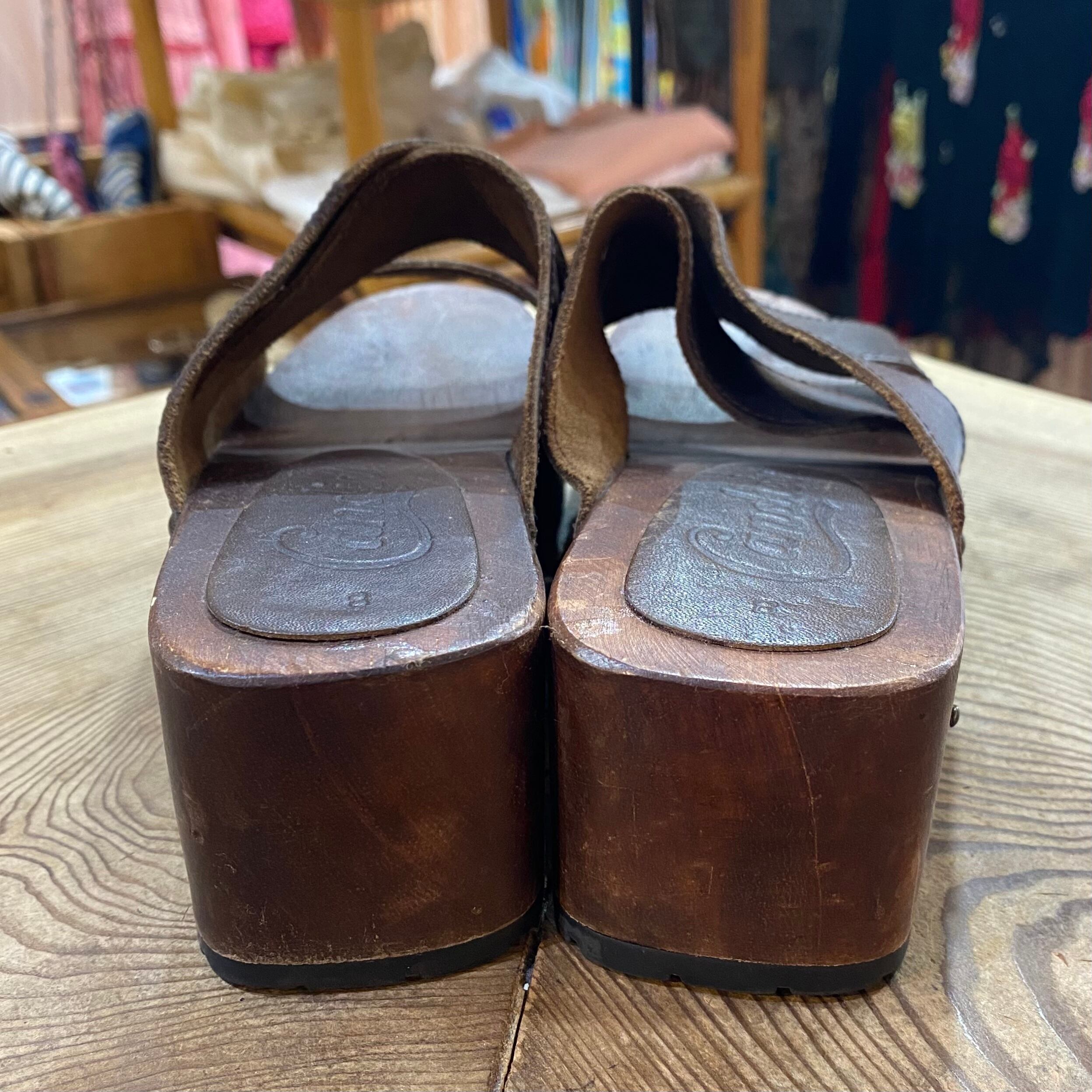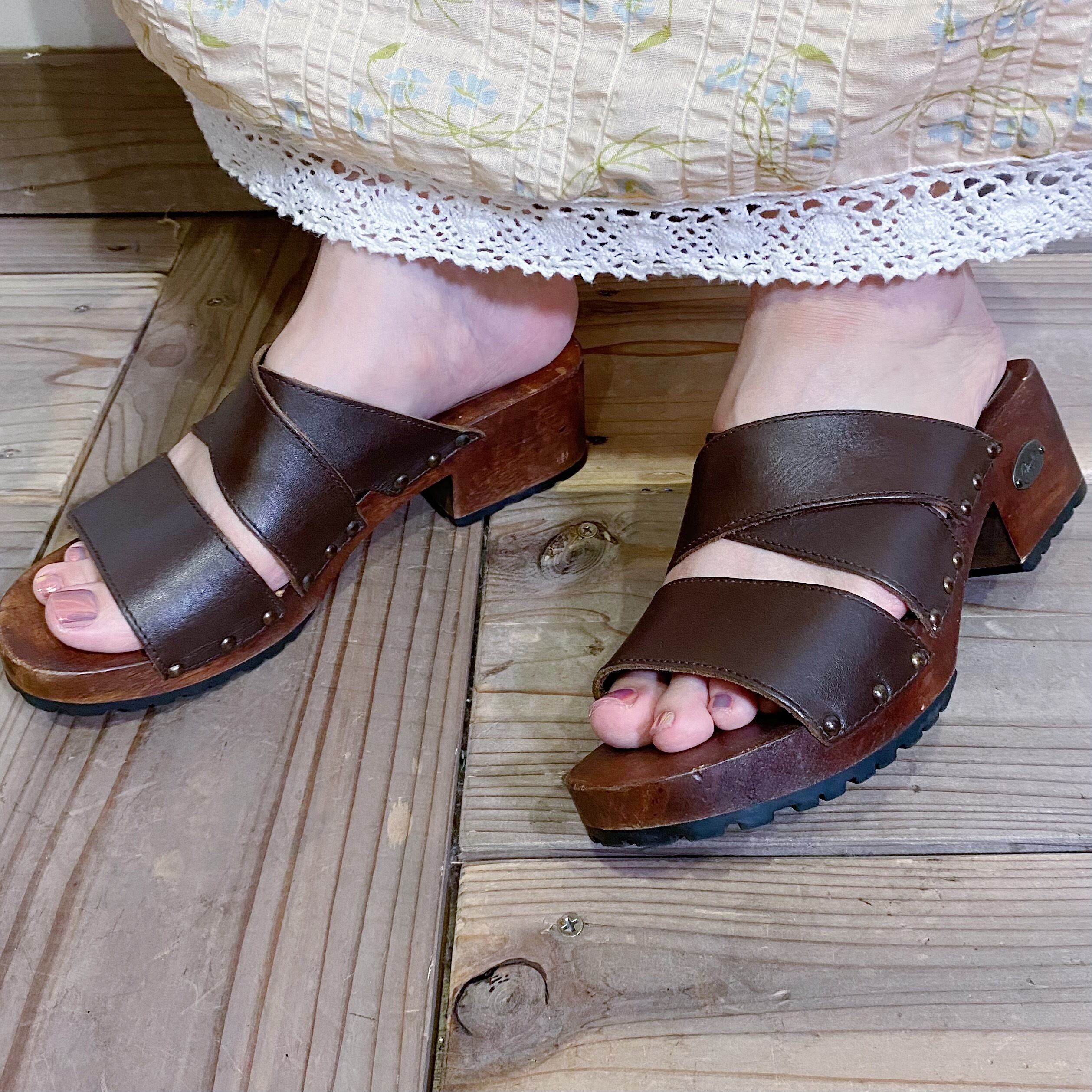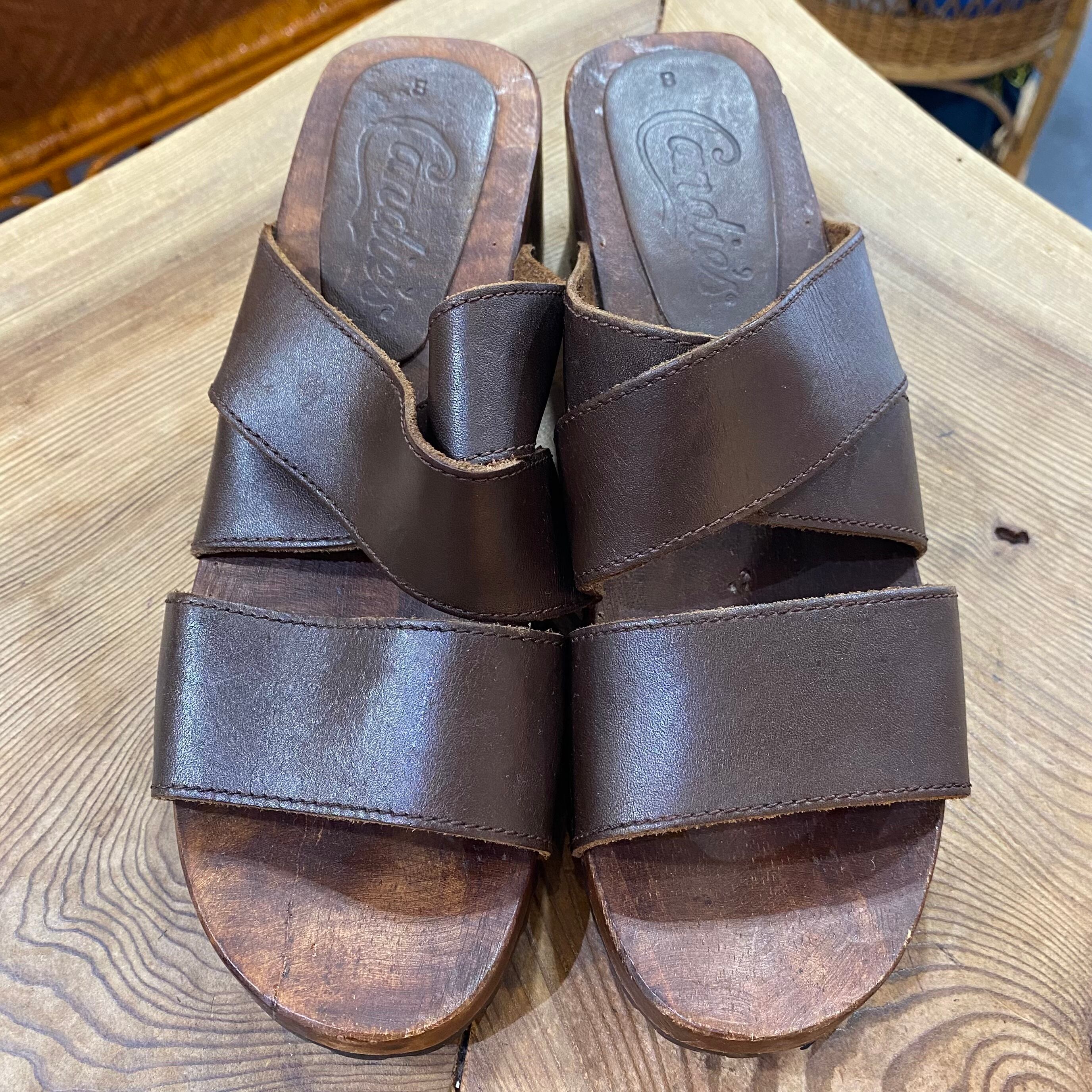 brown leather wood sandals