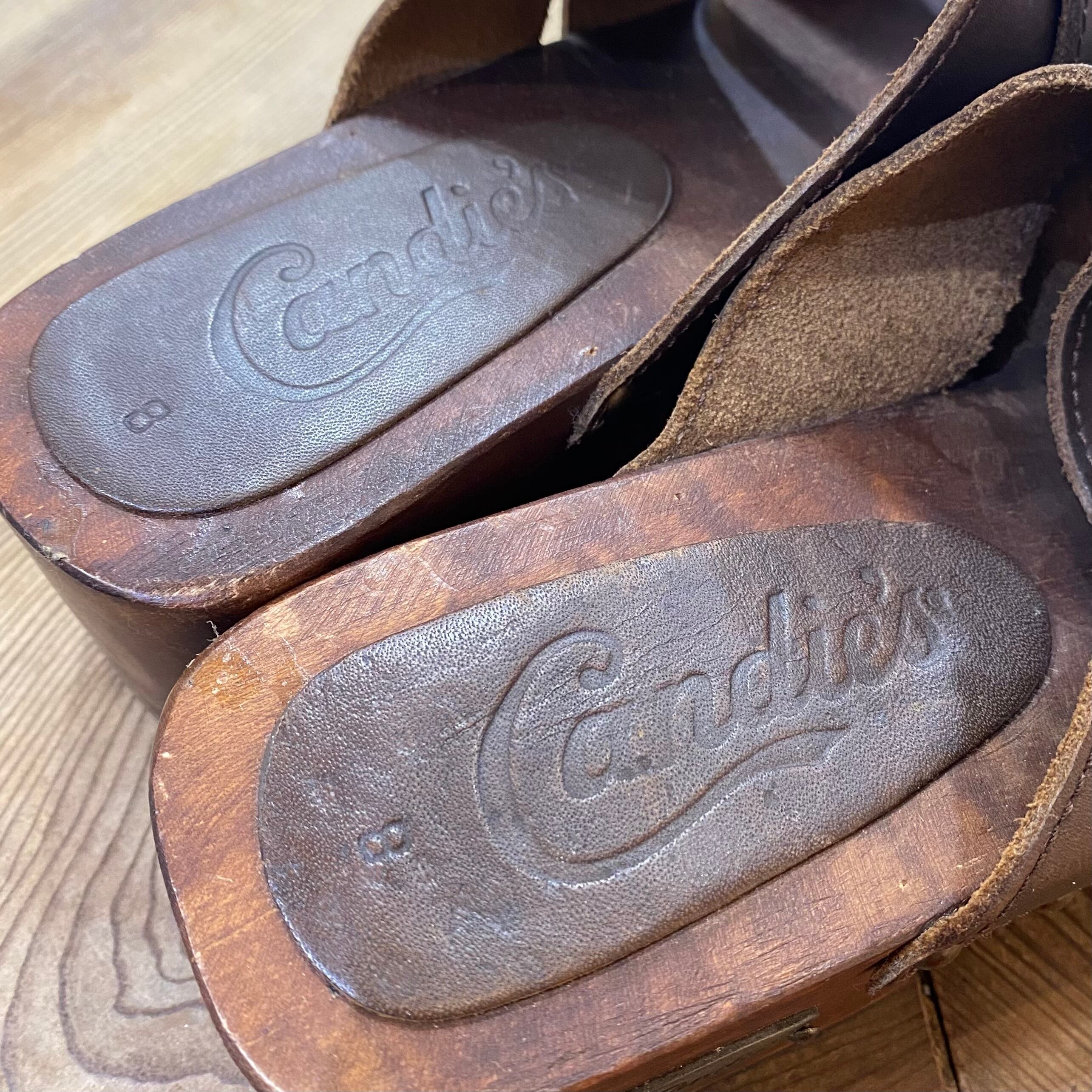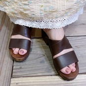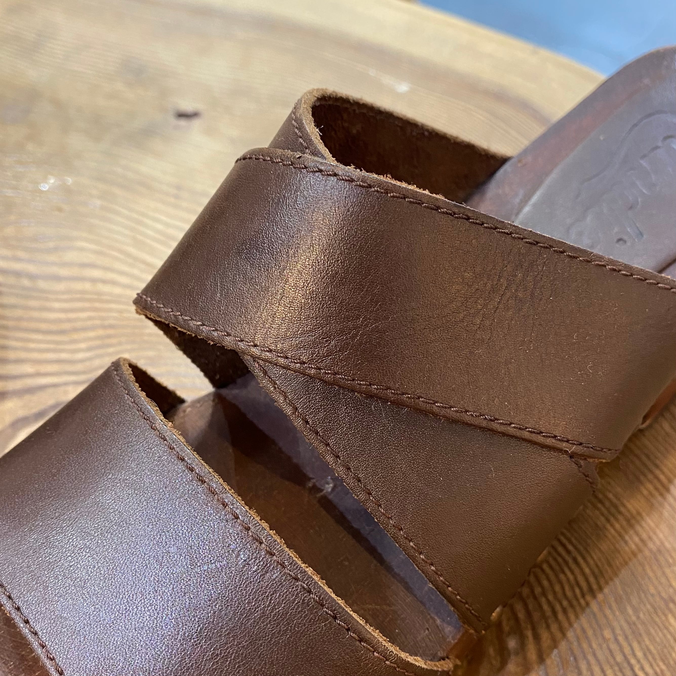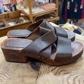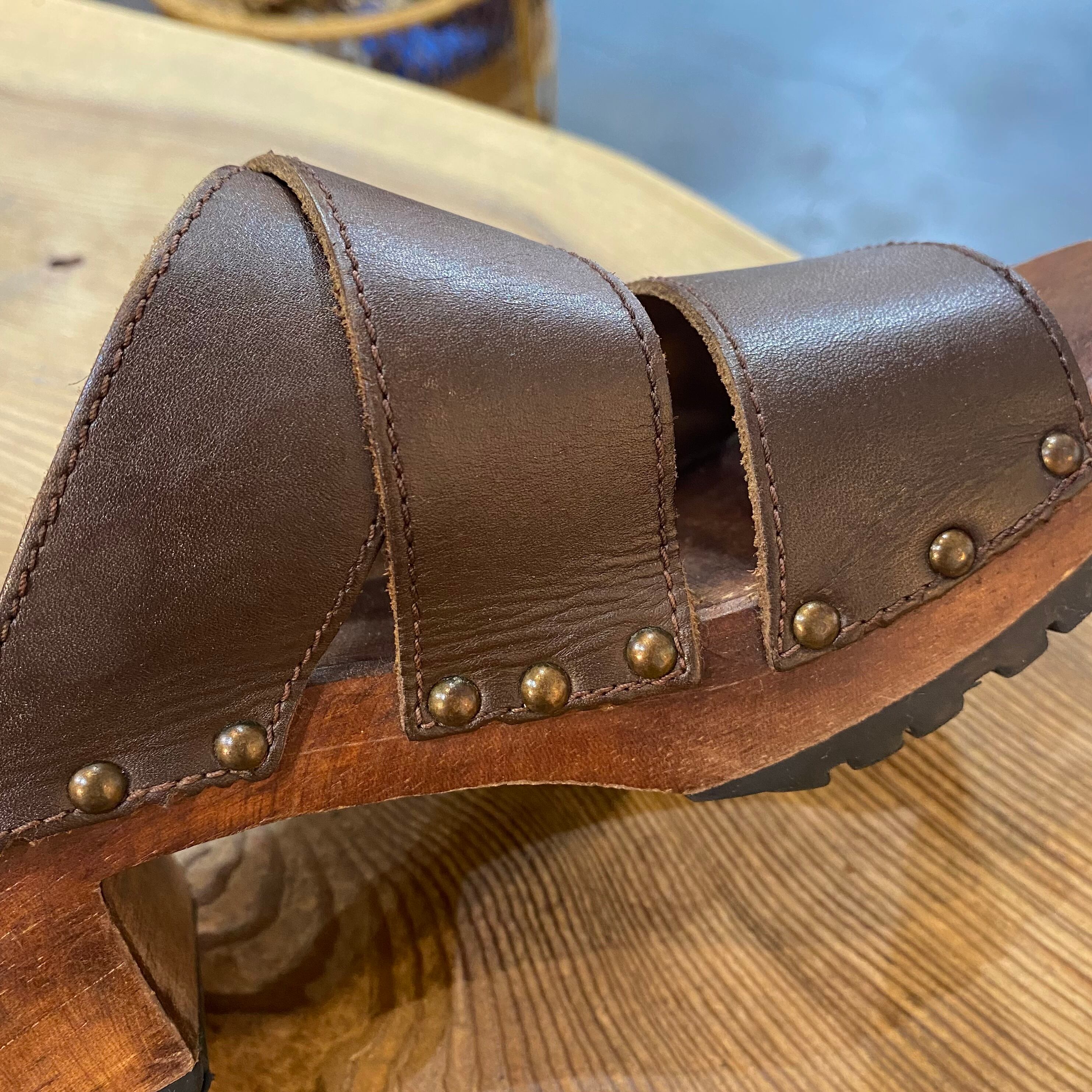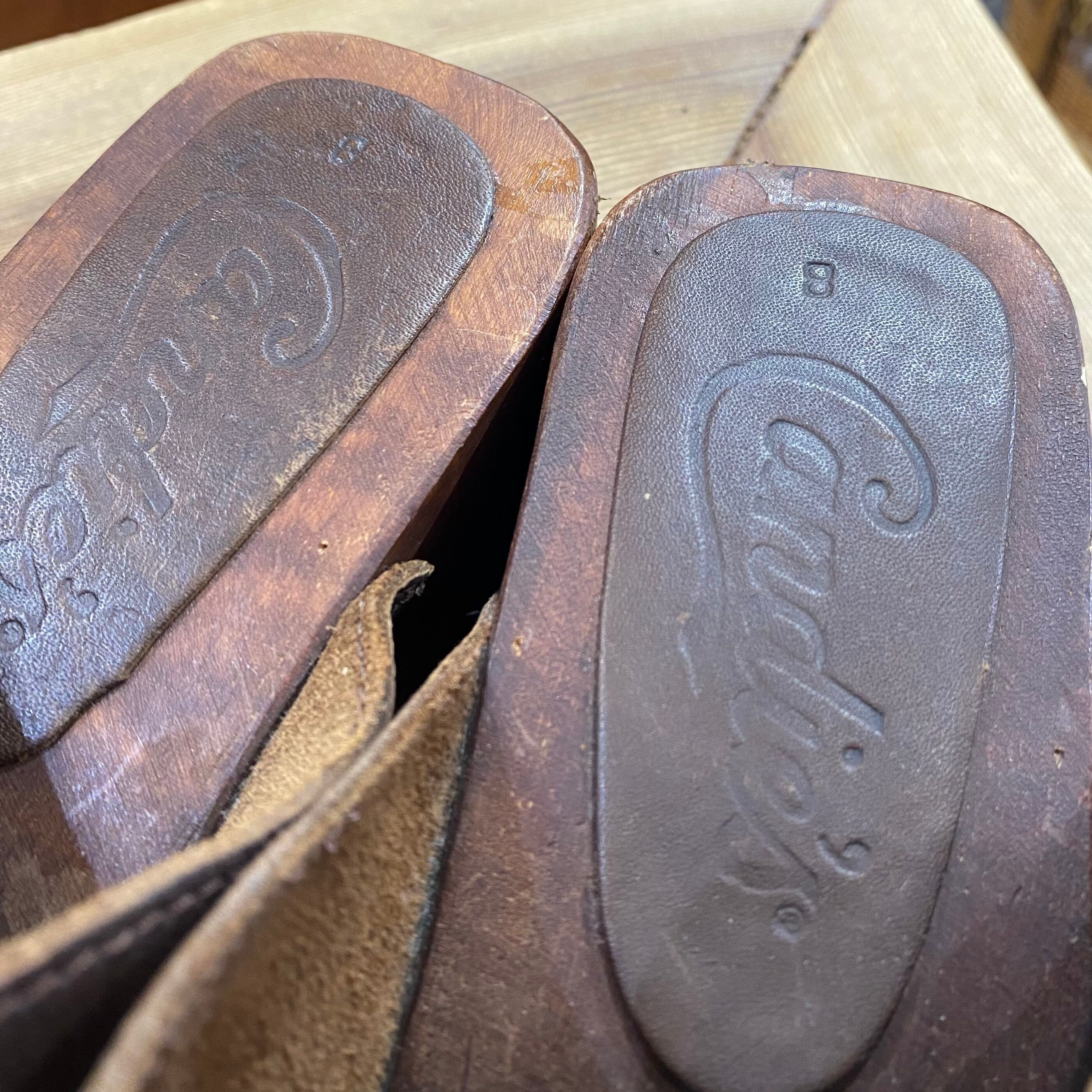 brown leather wood sandals