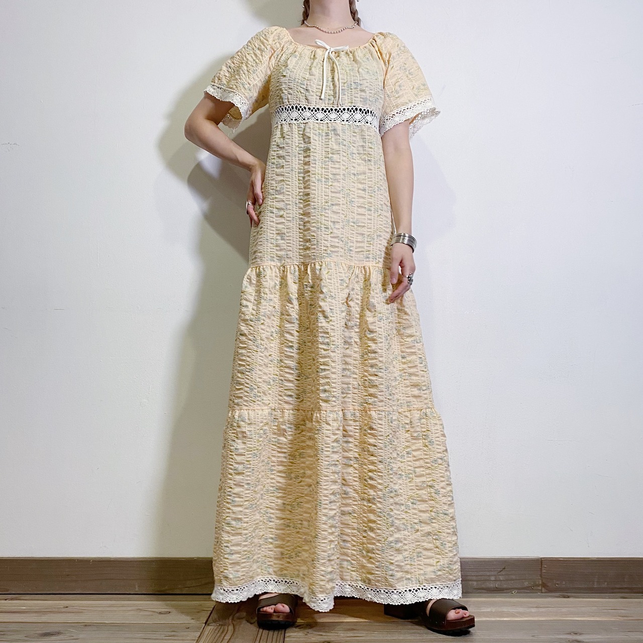 重たすぎないウッドソールに、程よい高さのしっかりとしたウェッジソールで歩きやすいですよ。