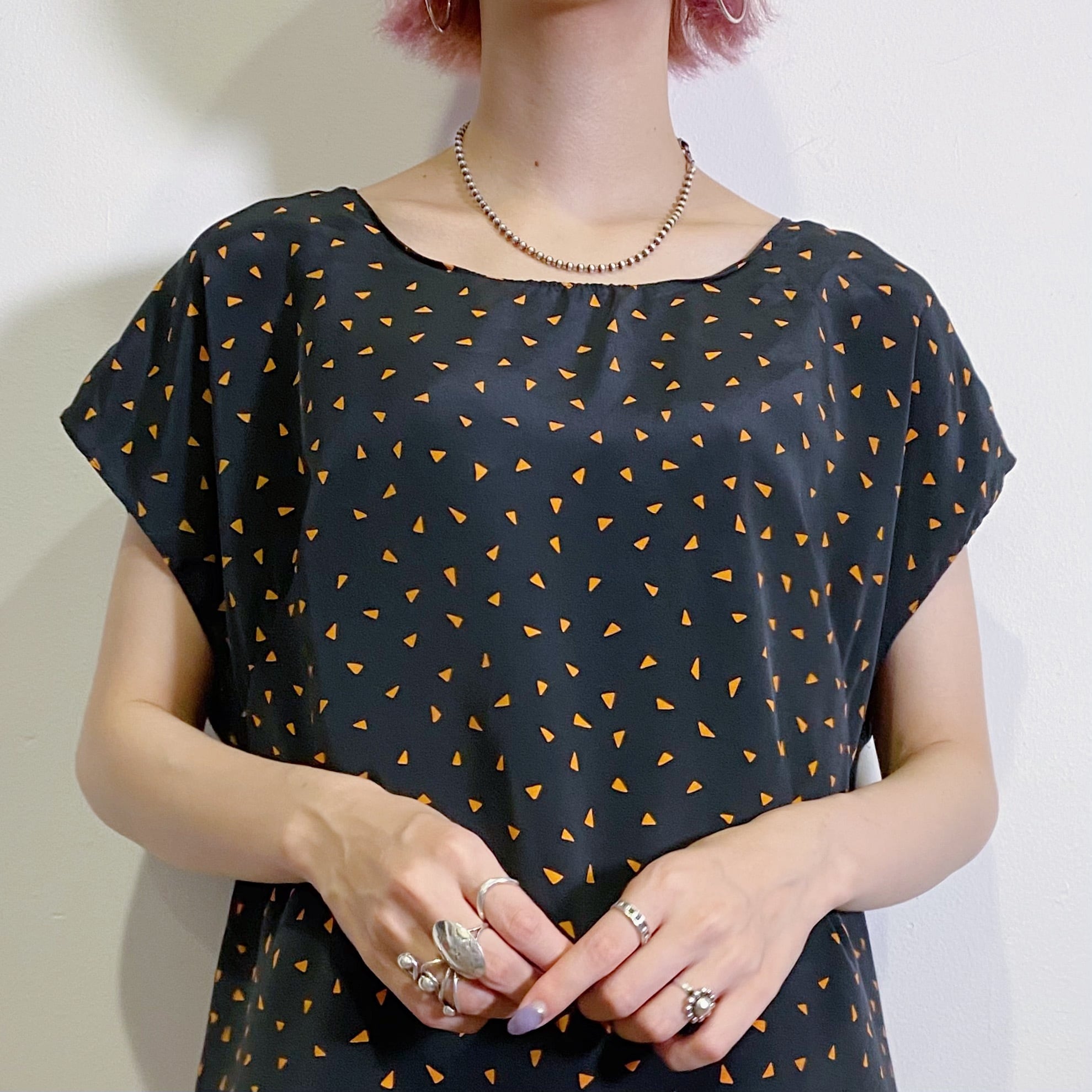 ブラックカラーにオレンジカラーの小さな三角模様が可愛い、80年代のトップスです。