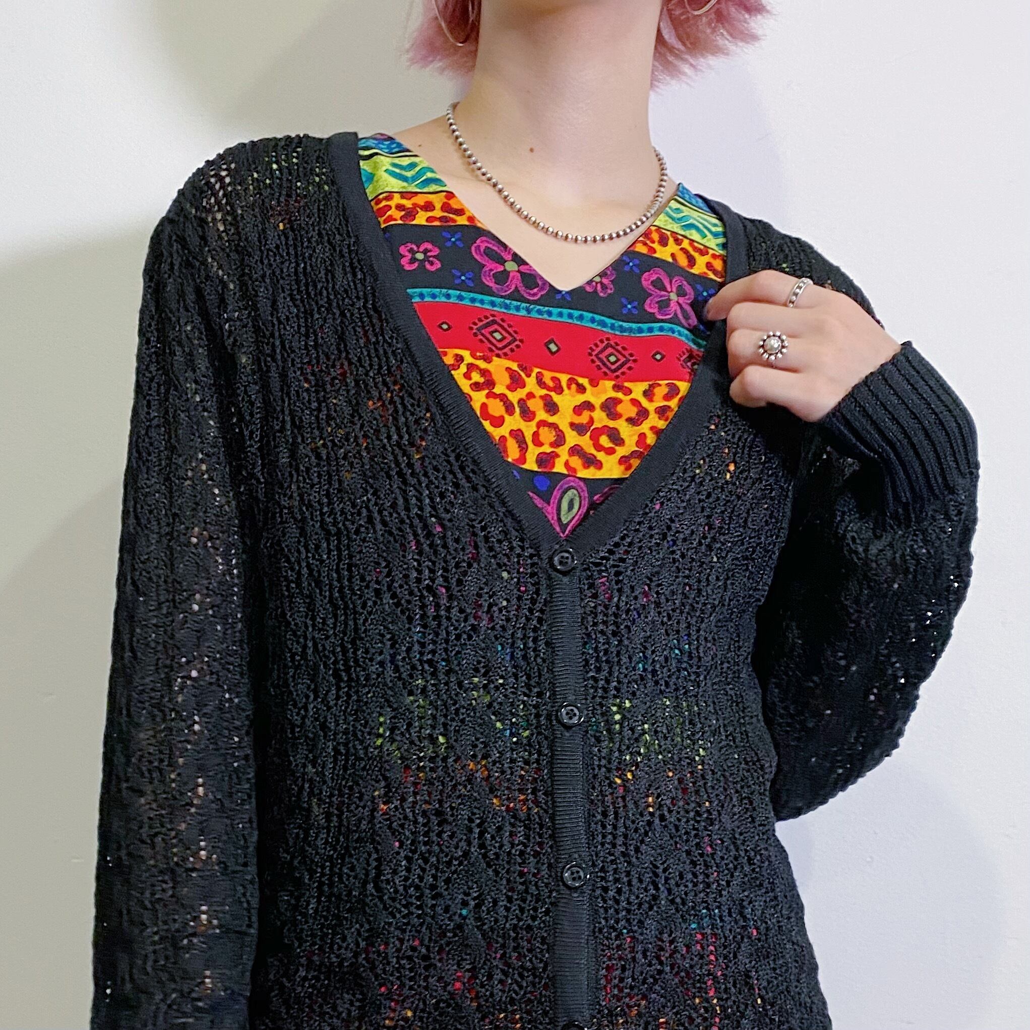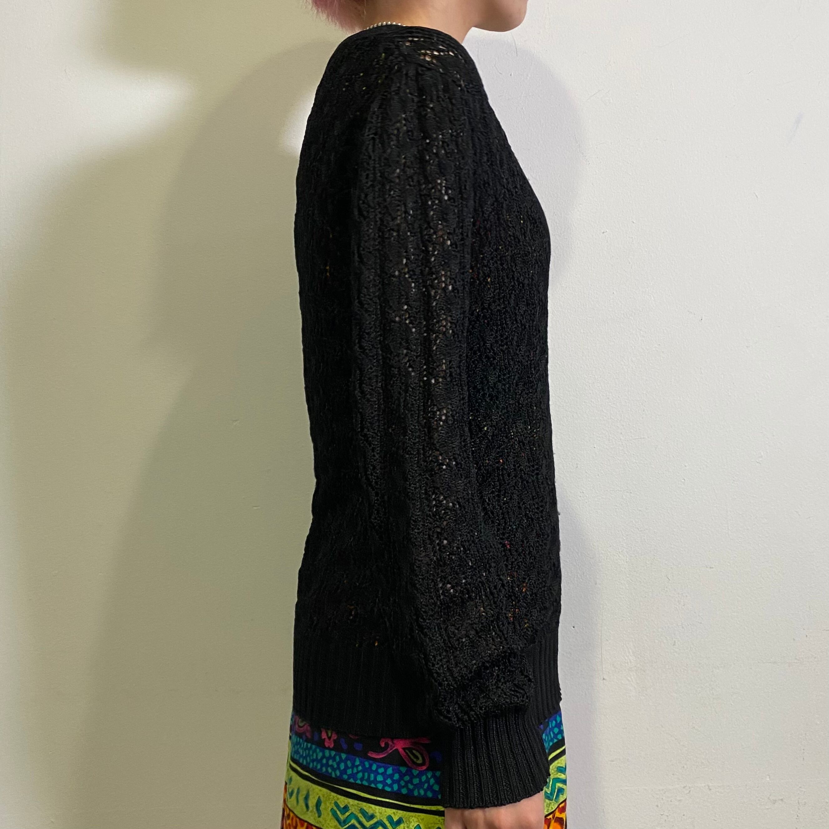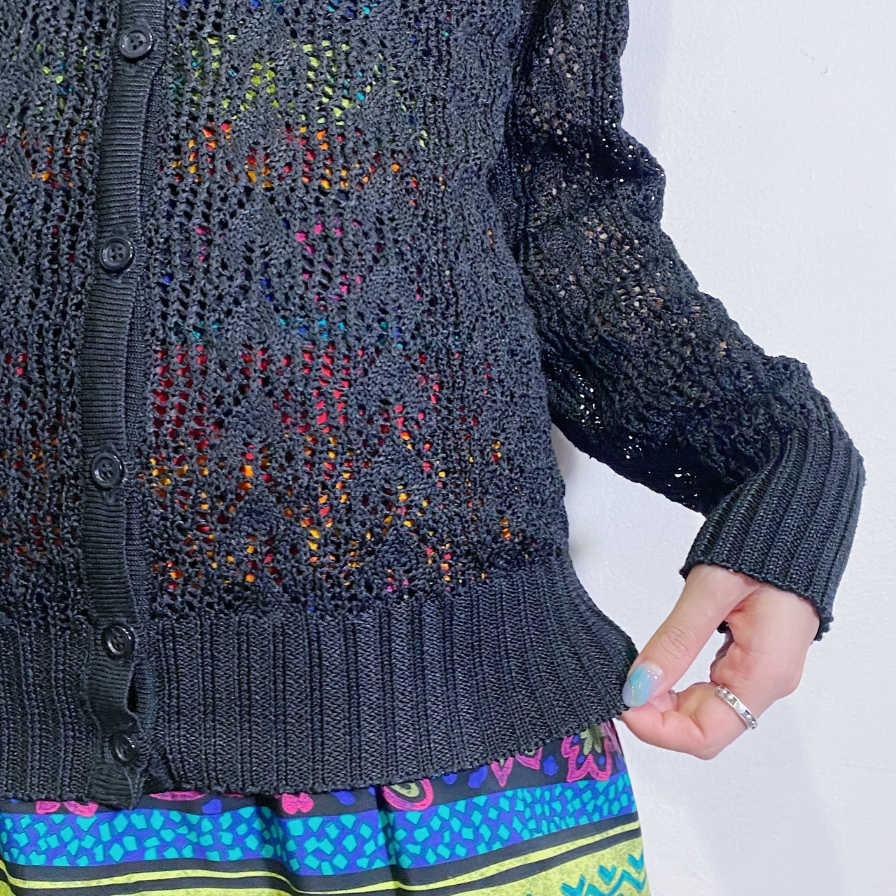 ブラックベースで大変使い勝手の良さそうなクロシェニットカーディガンです。