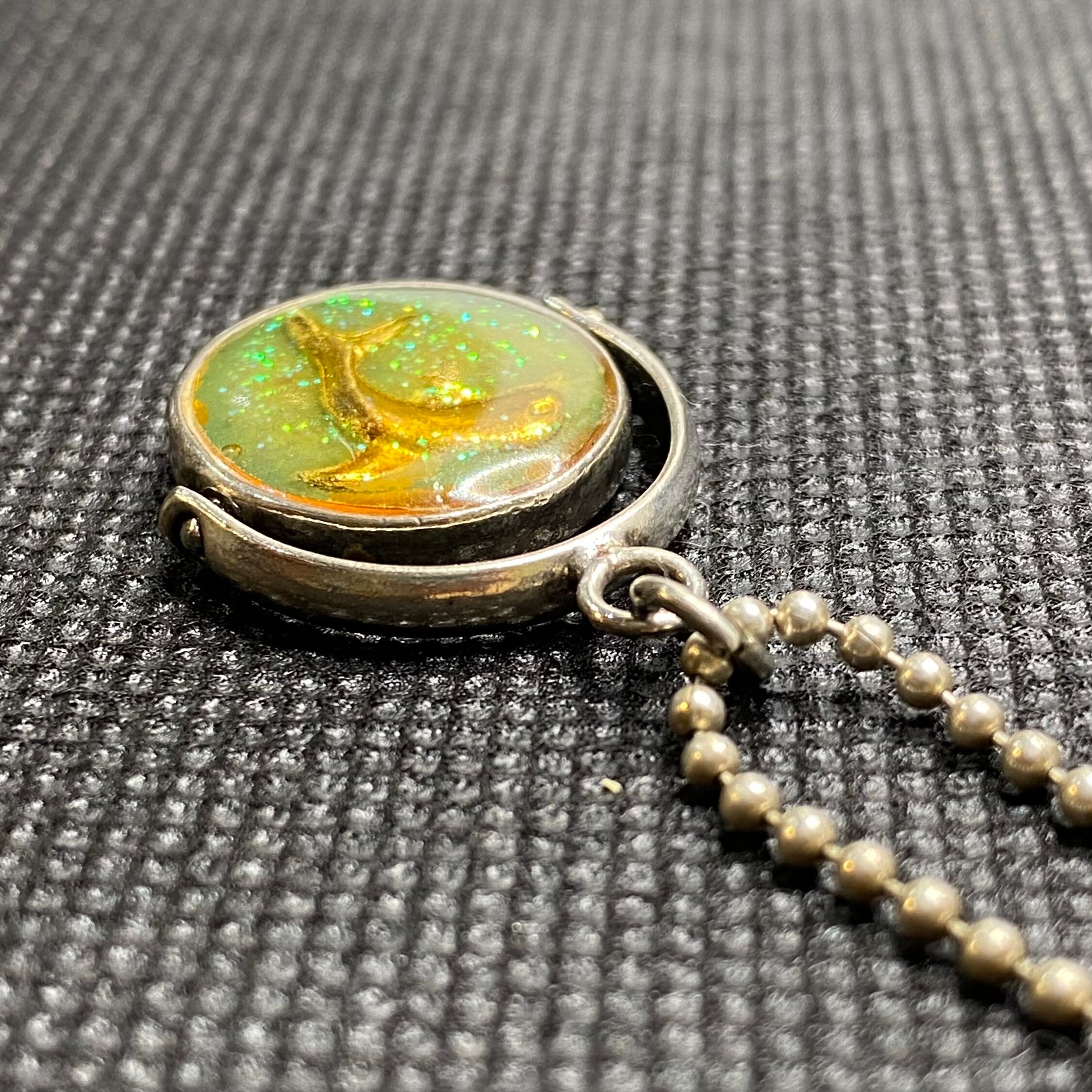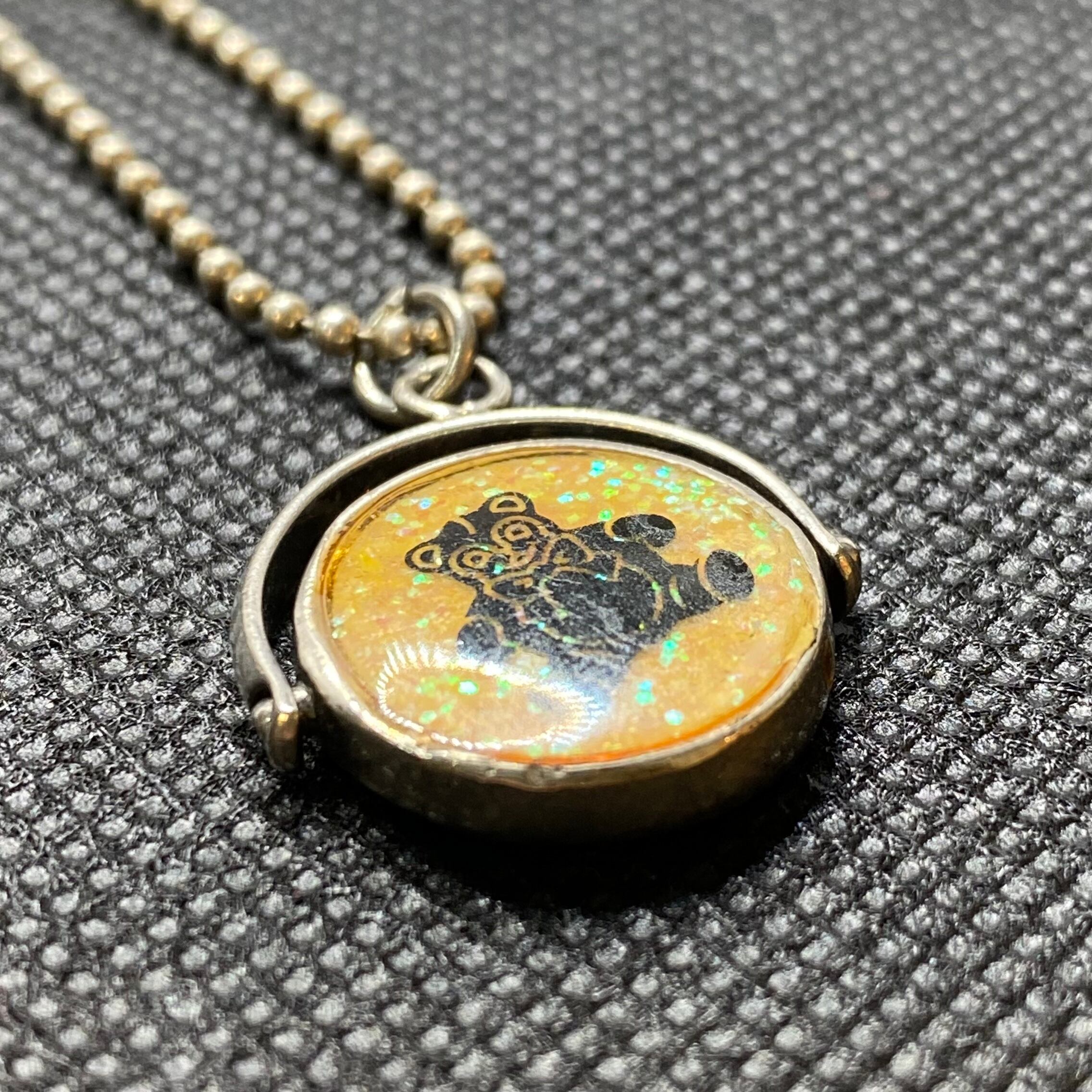 テディベアとイルカのどちらの面でもお楽しみいただける、リバーシブルのネックレスです。